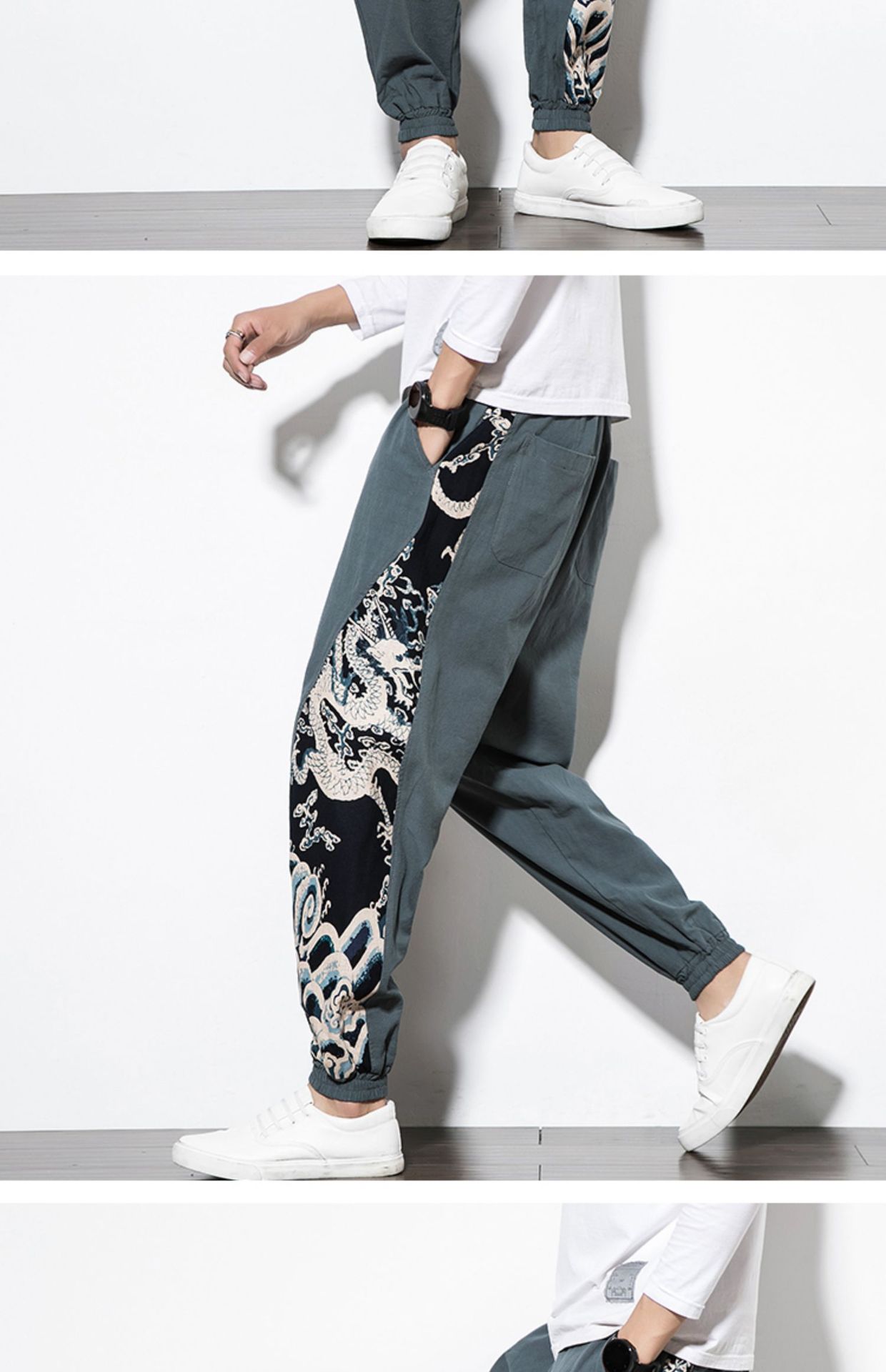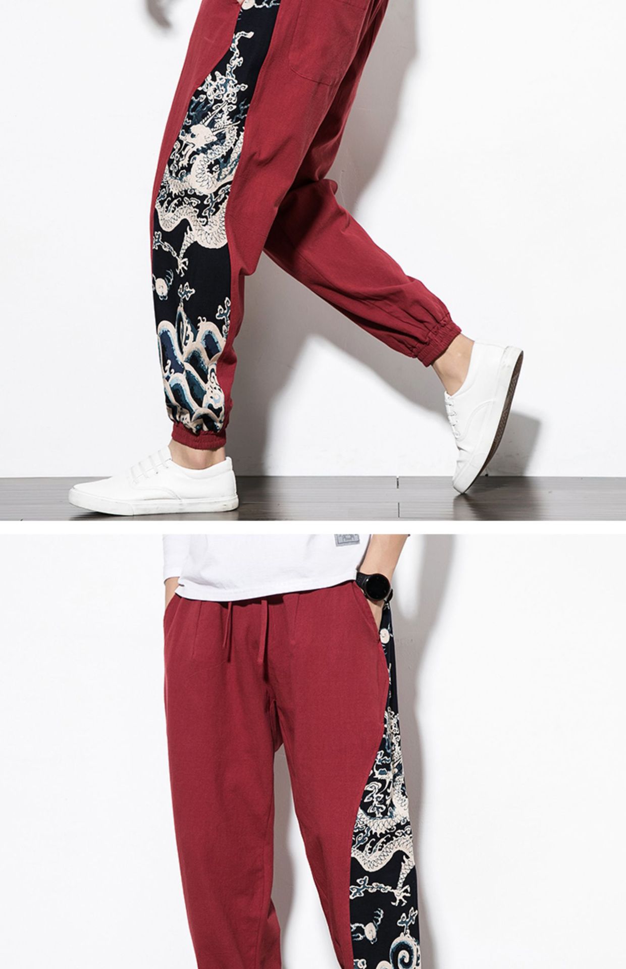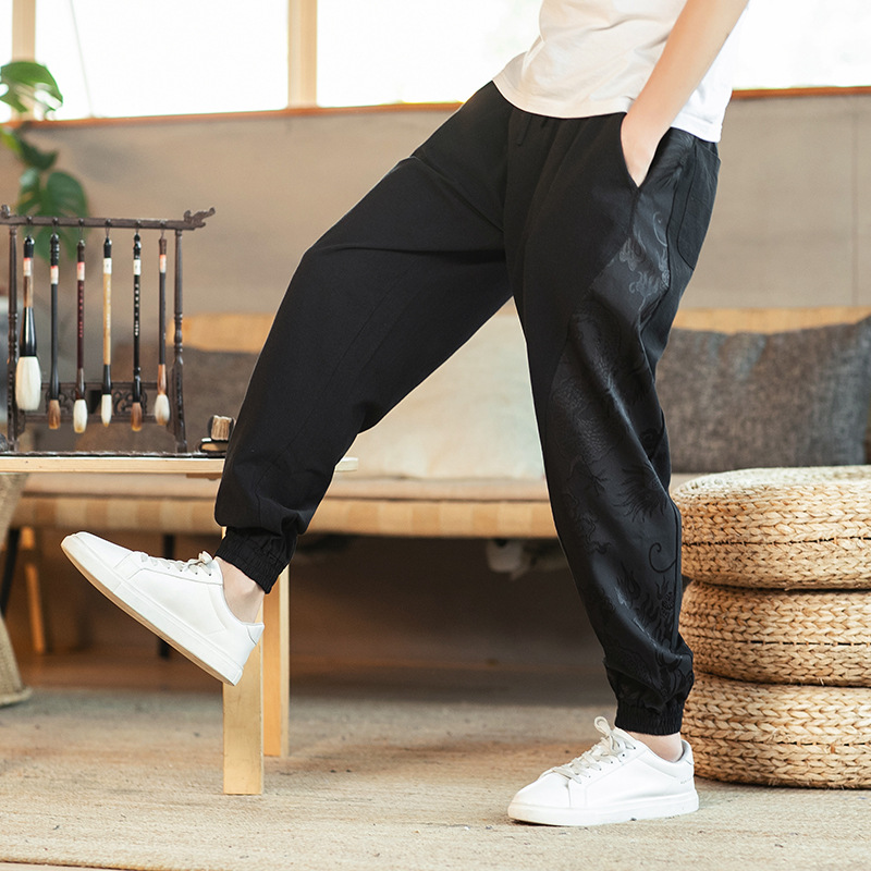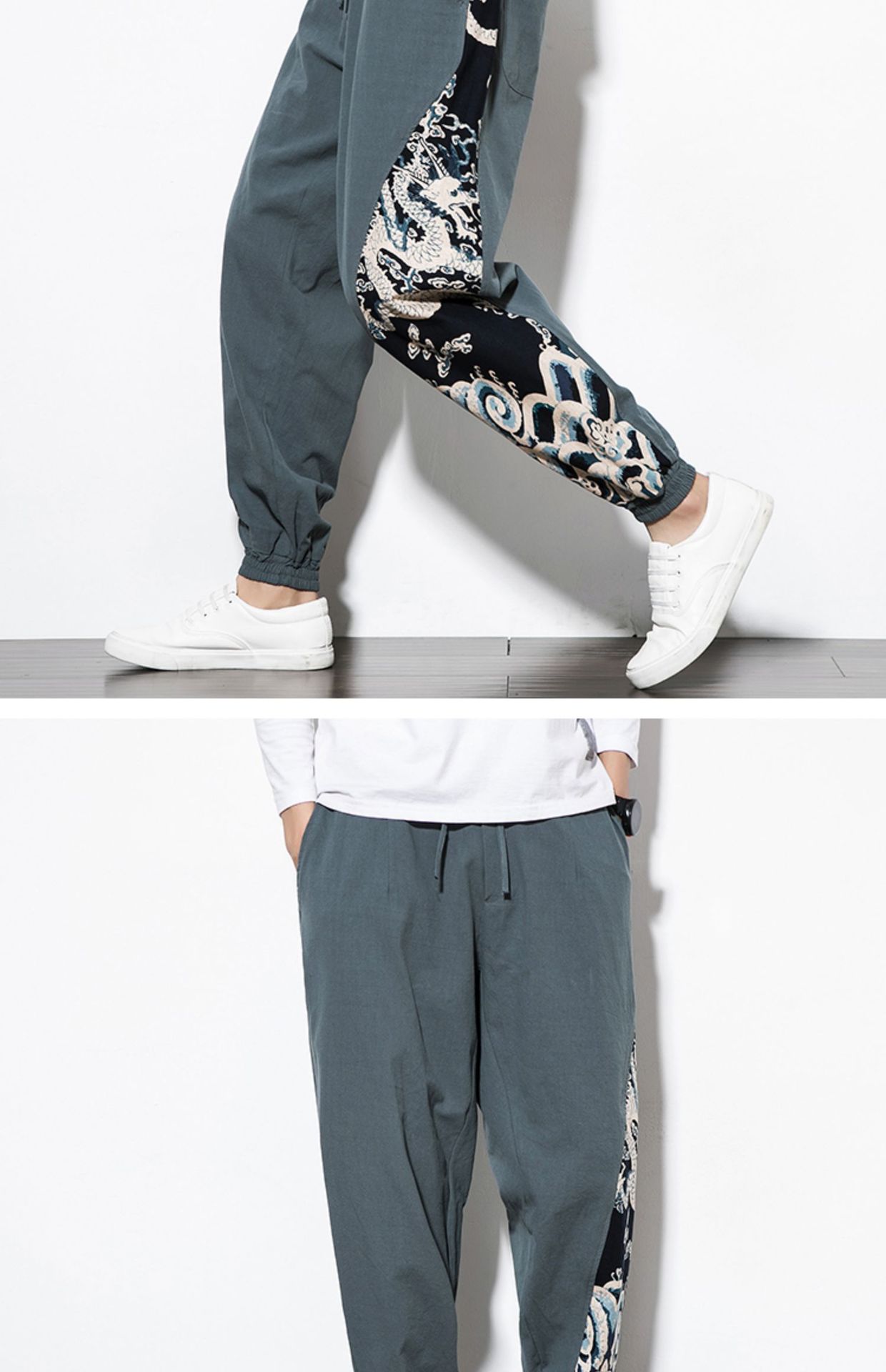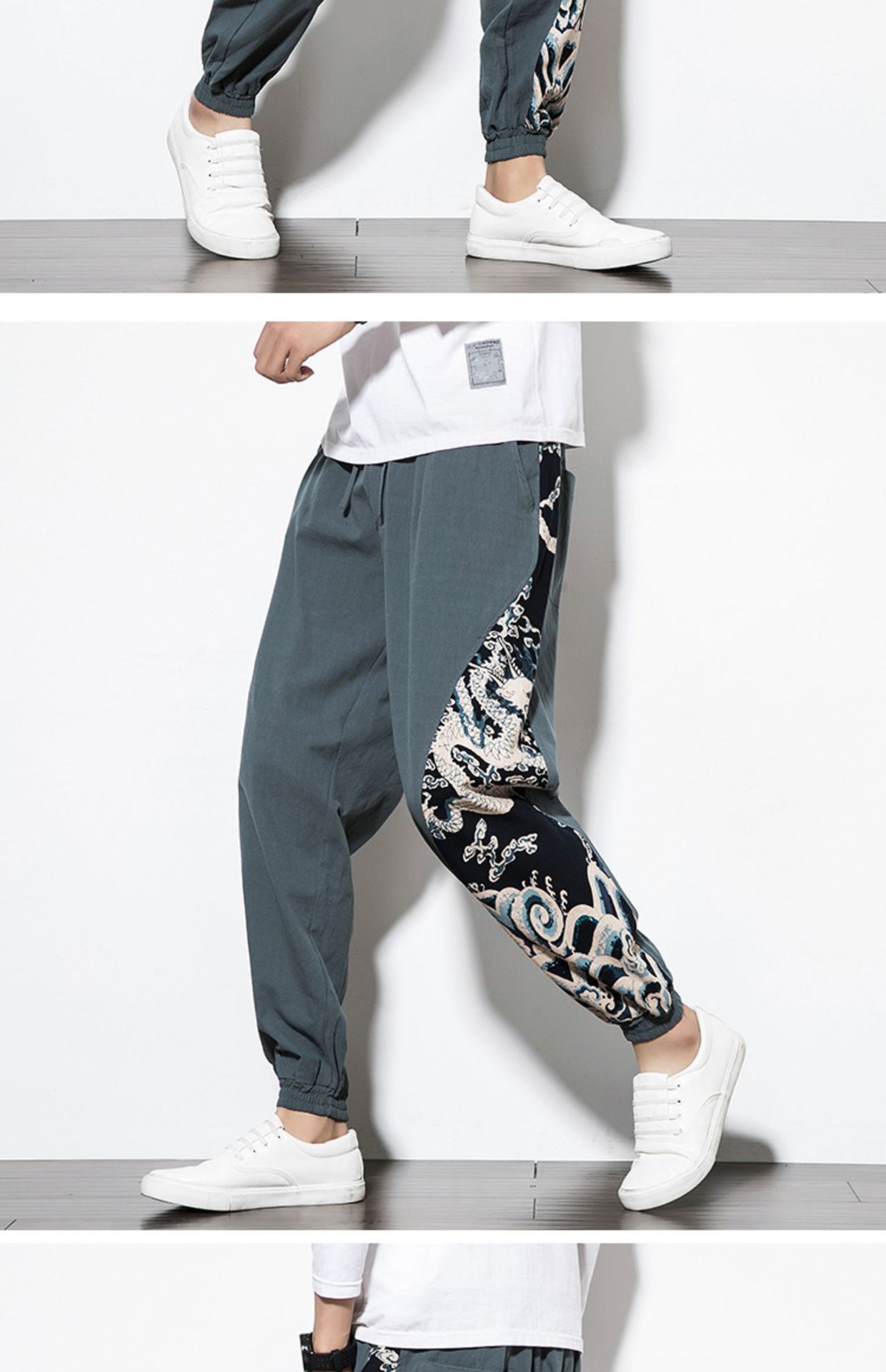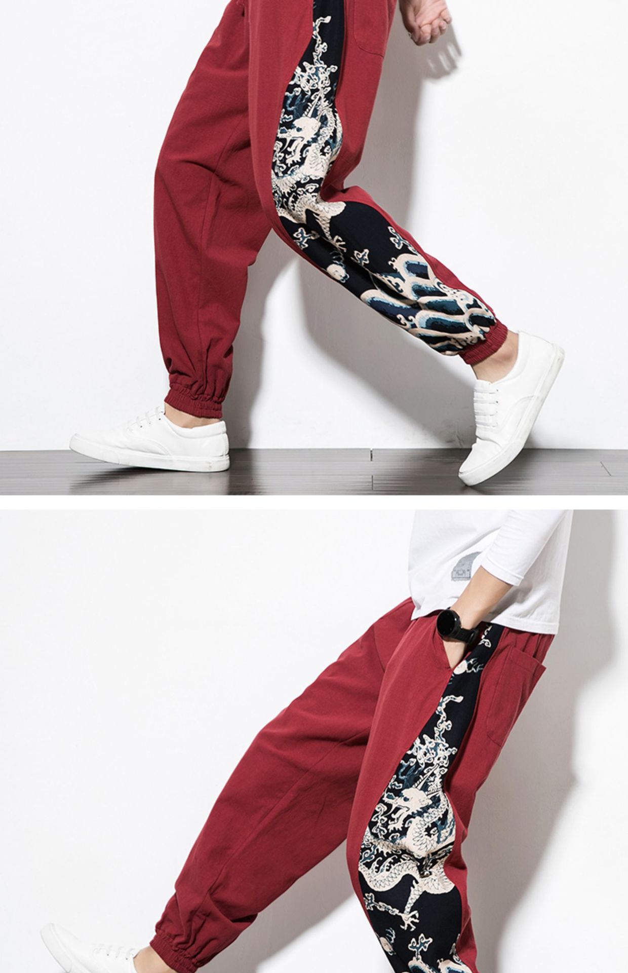 Новинка 2025 года, весенне-осенние хлопковые льняные брюки в китайском стиле с драконом, мужские шаровары, цельный дропшиппинг