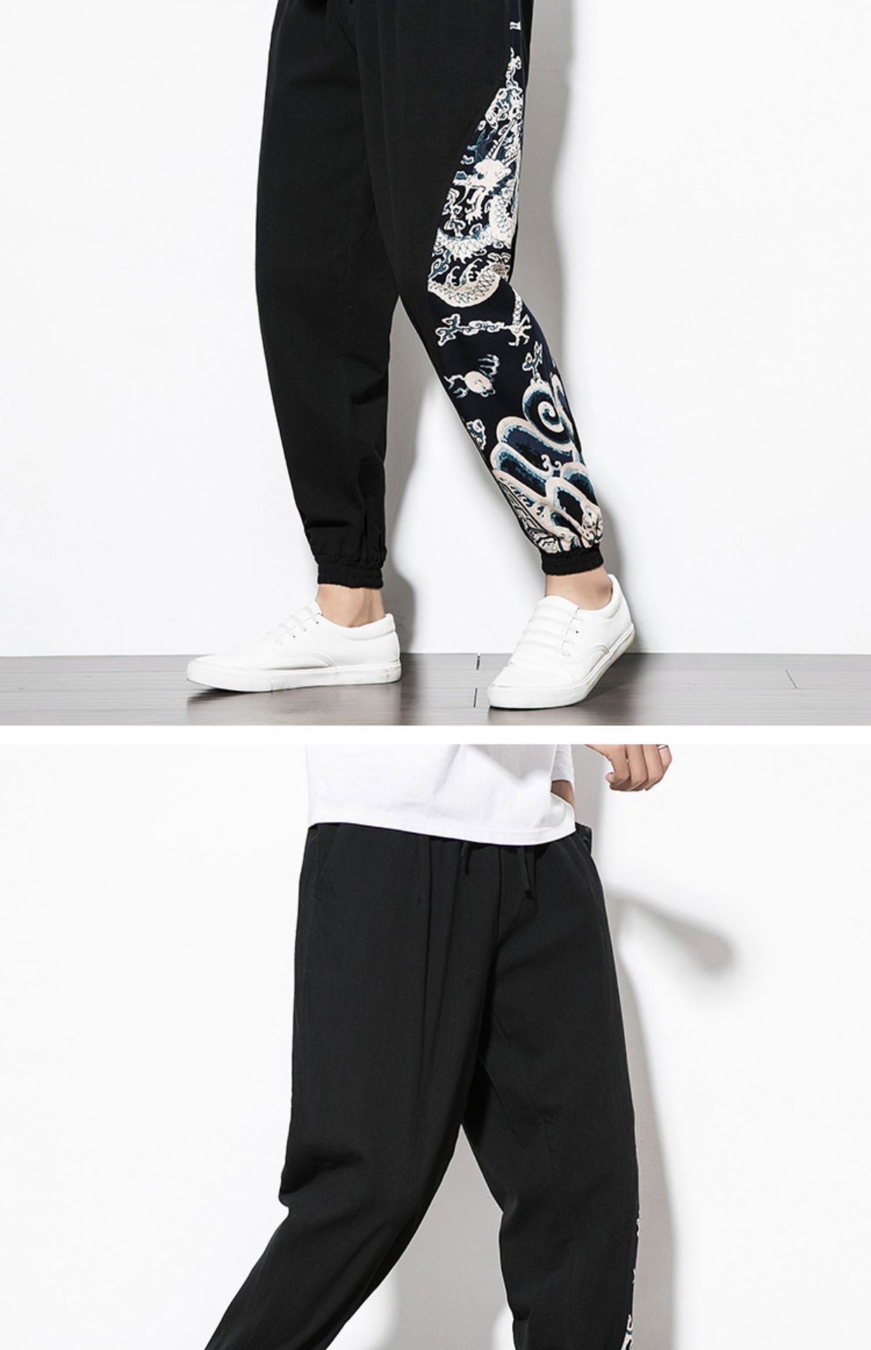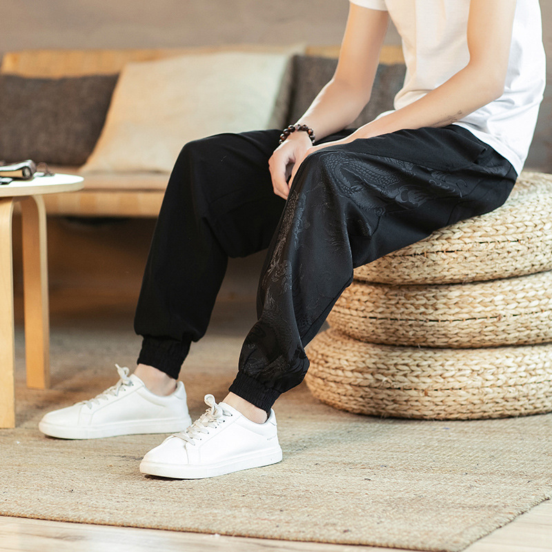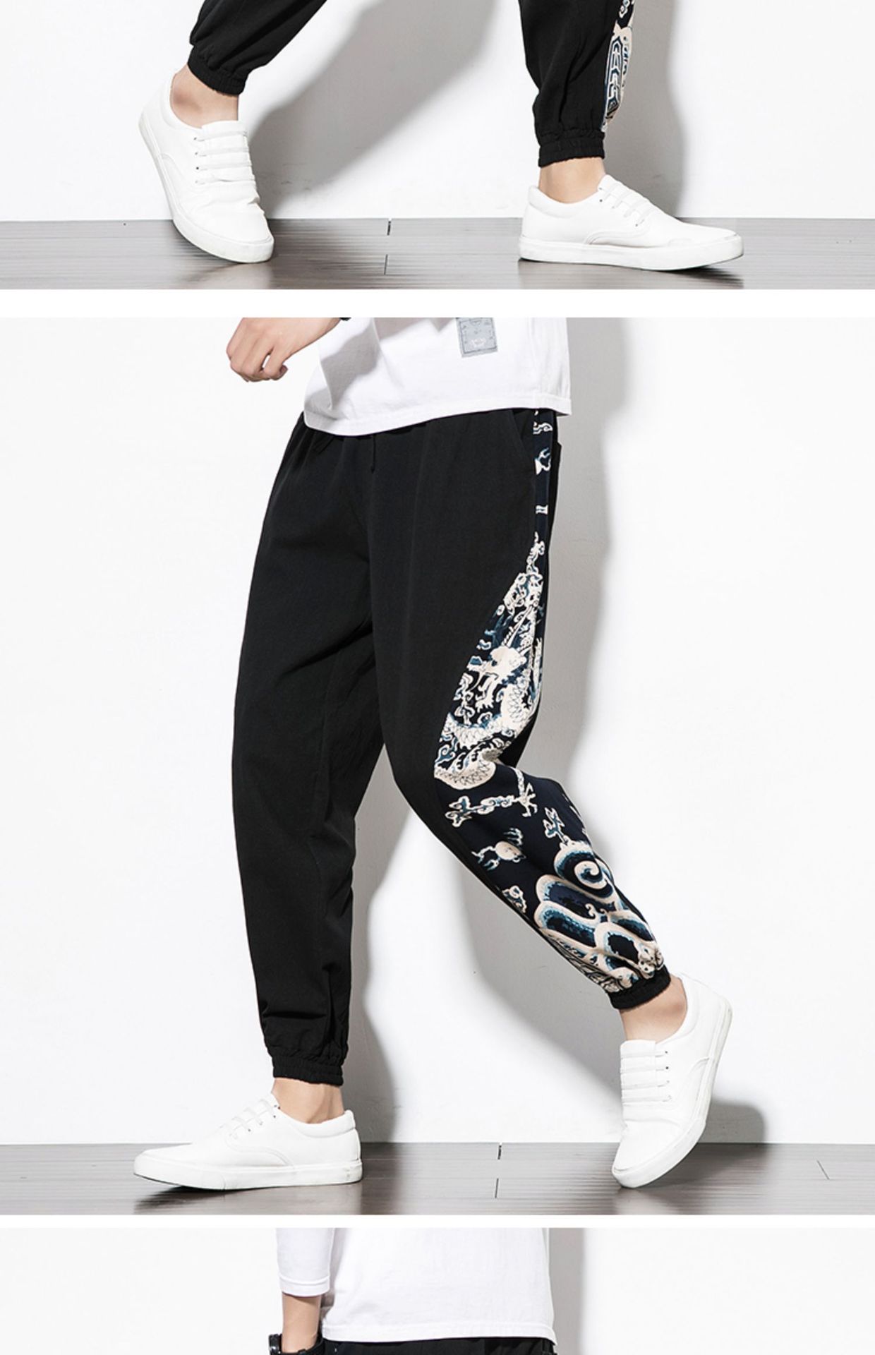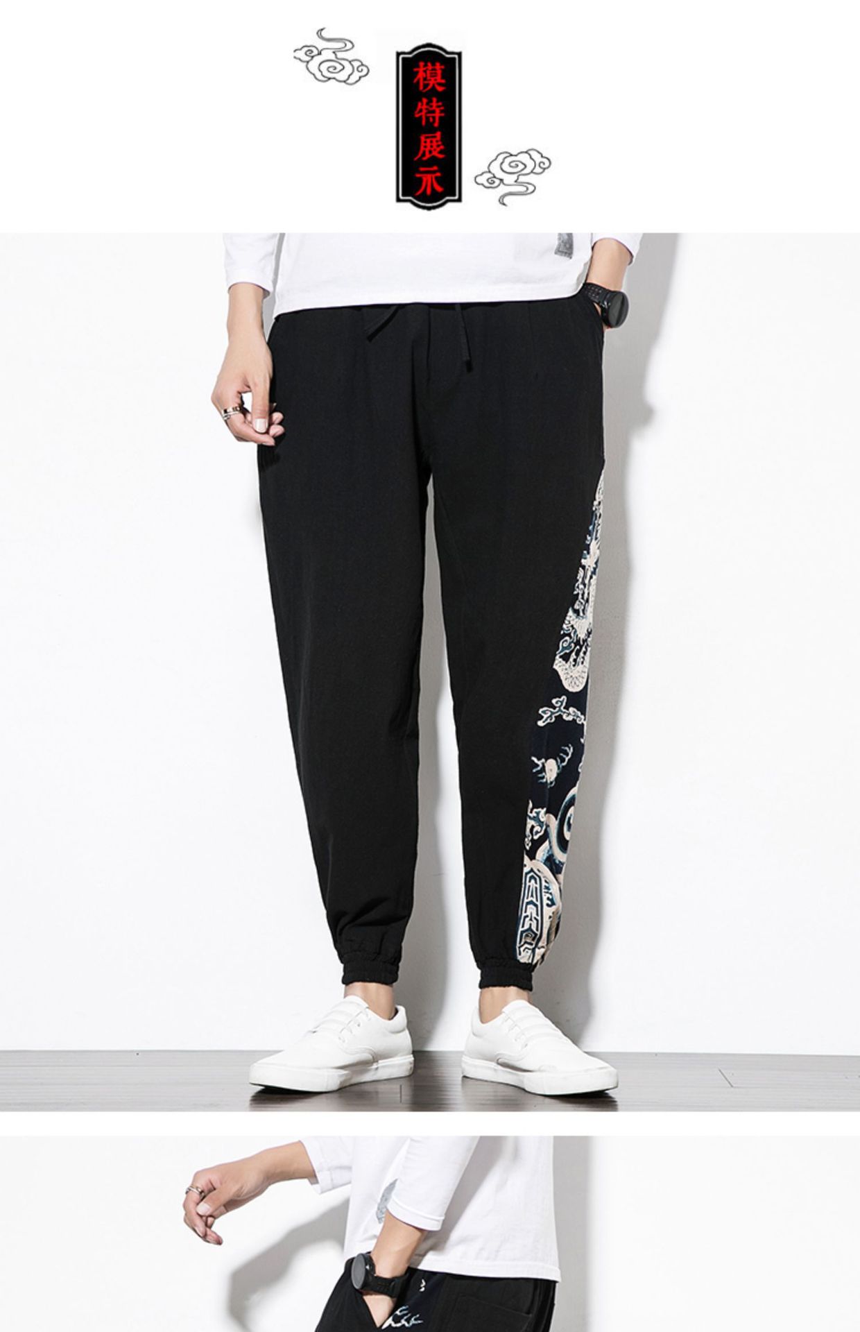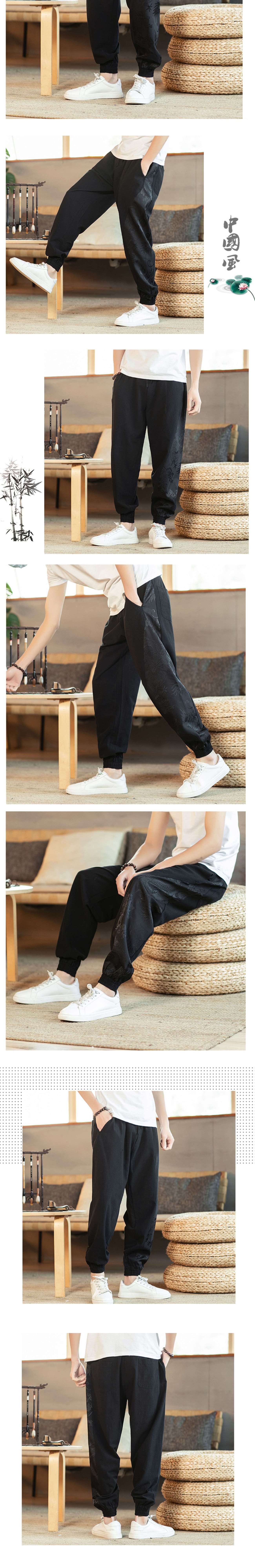 Новинка 2025 года, весенне-осенние хлопковые льняные брюки в китайском стиле с драконом, мужские шаровары, цельный дропшиппинг
