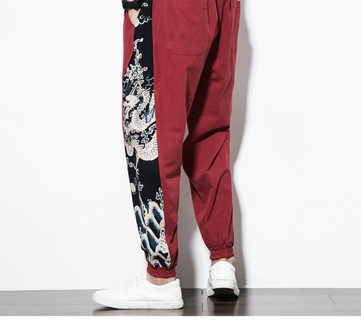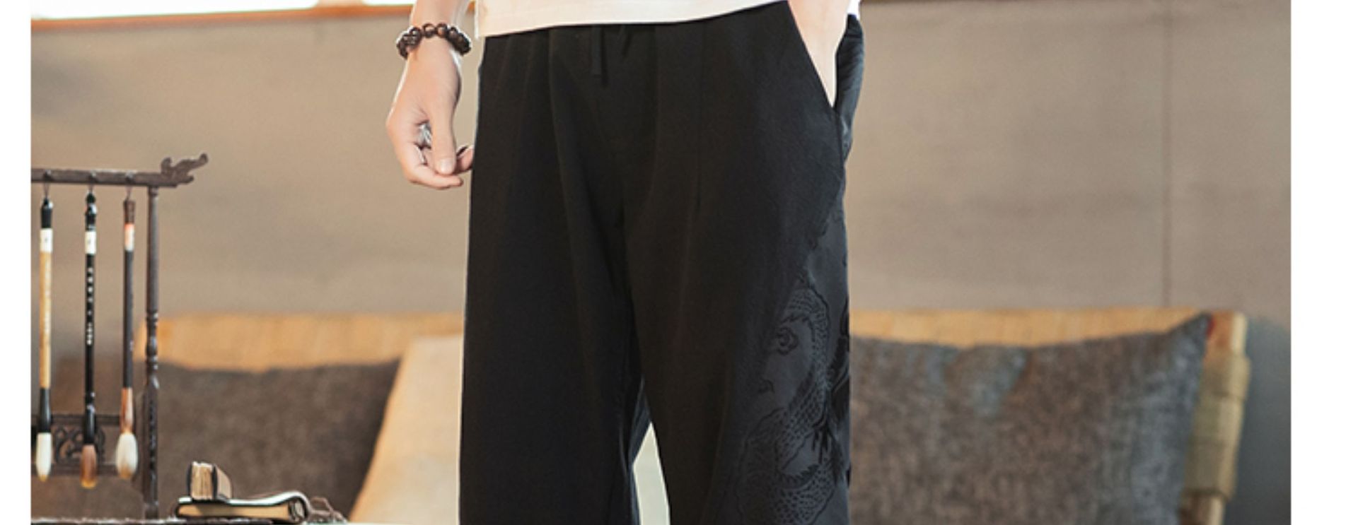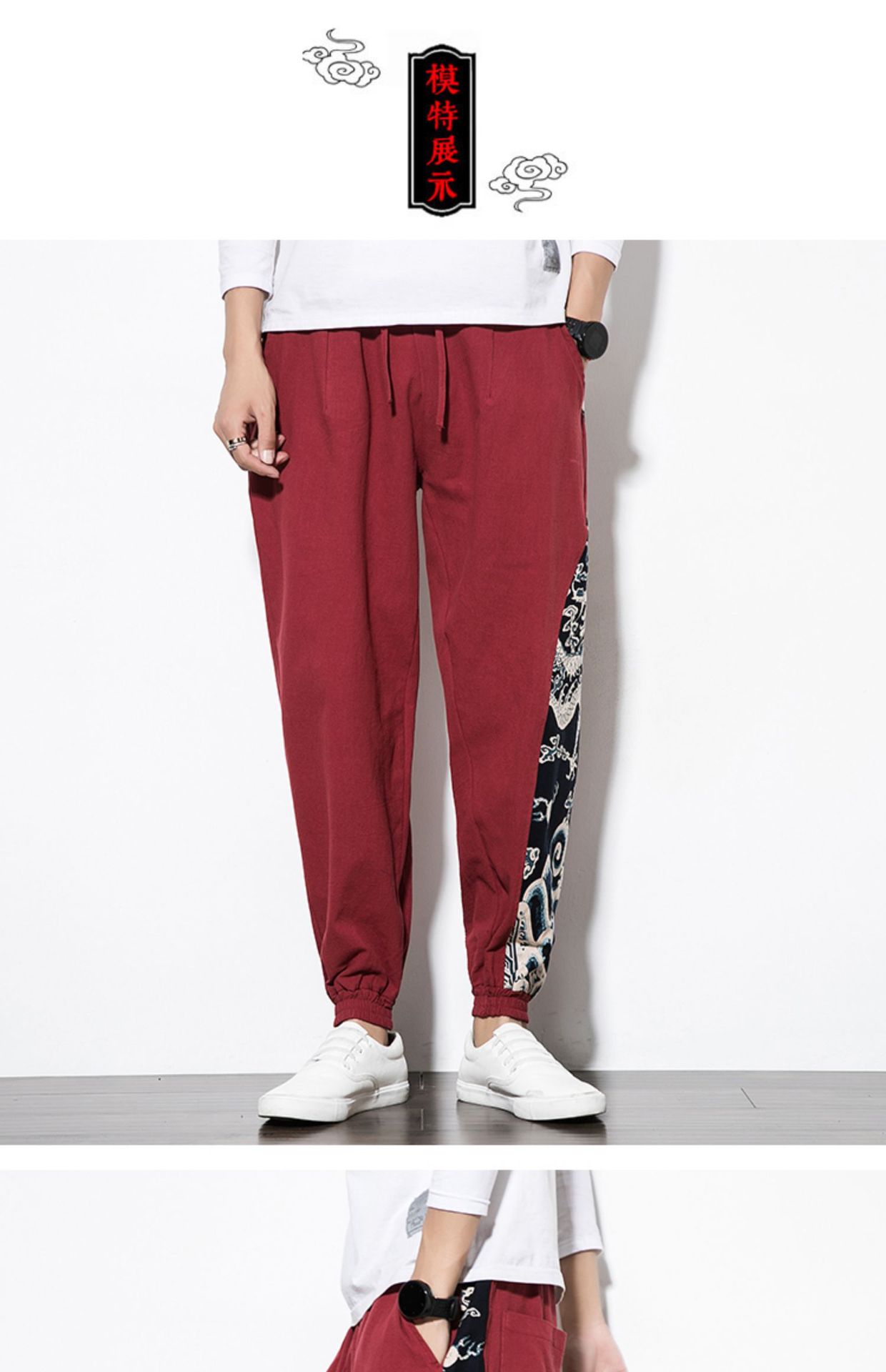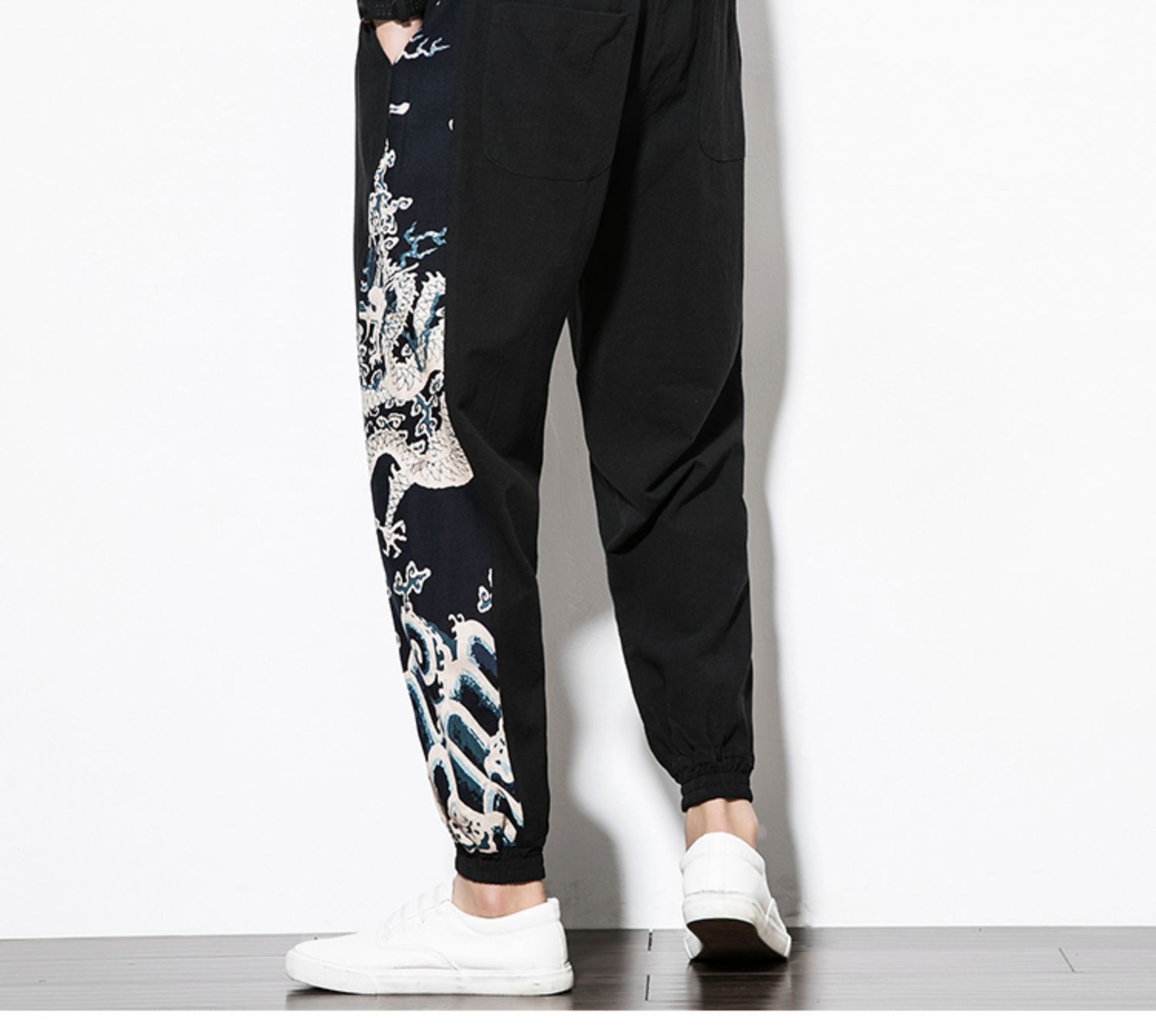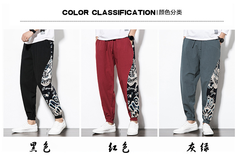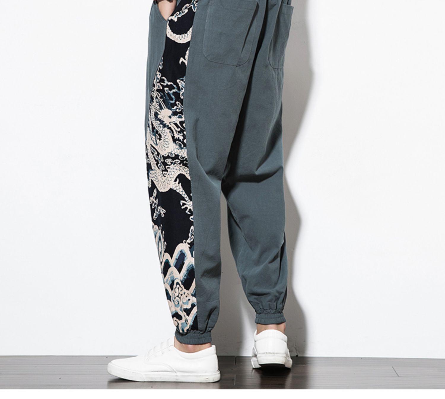 Новинка 2025 года, весенне-осенние хлопковые льняные брюки в китайском стиле с драконом, мужские шаровары, цельный дропшиппинг