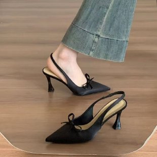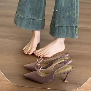 Женские летние босоножки-стилето с открытой спинкой в французском стиле, новинка 2025 года, с заострённым носком и бантовым ремешком на высоком каблуке
