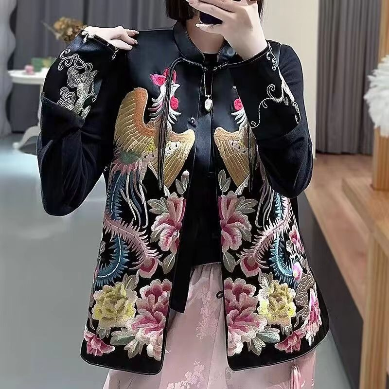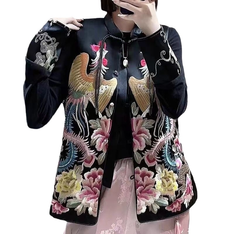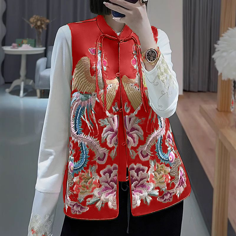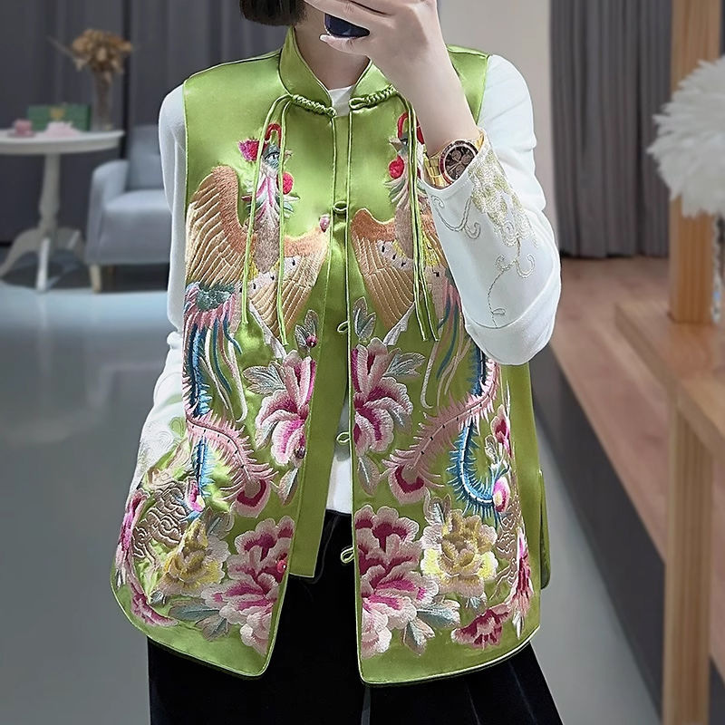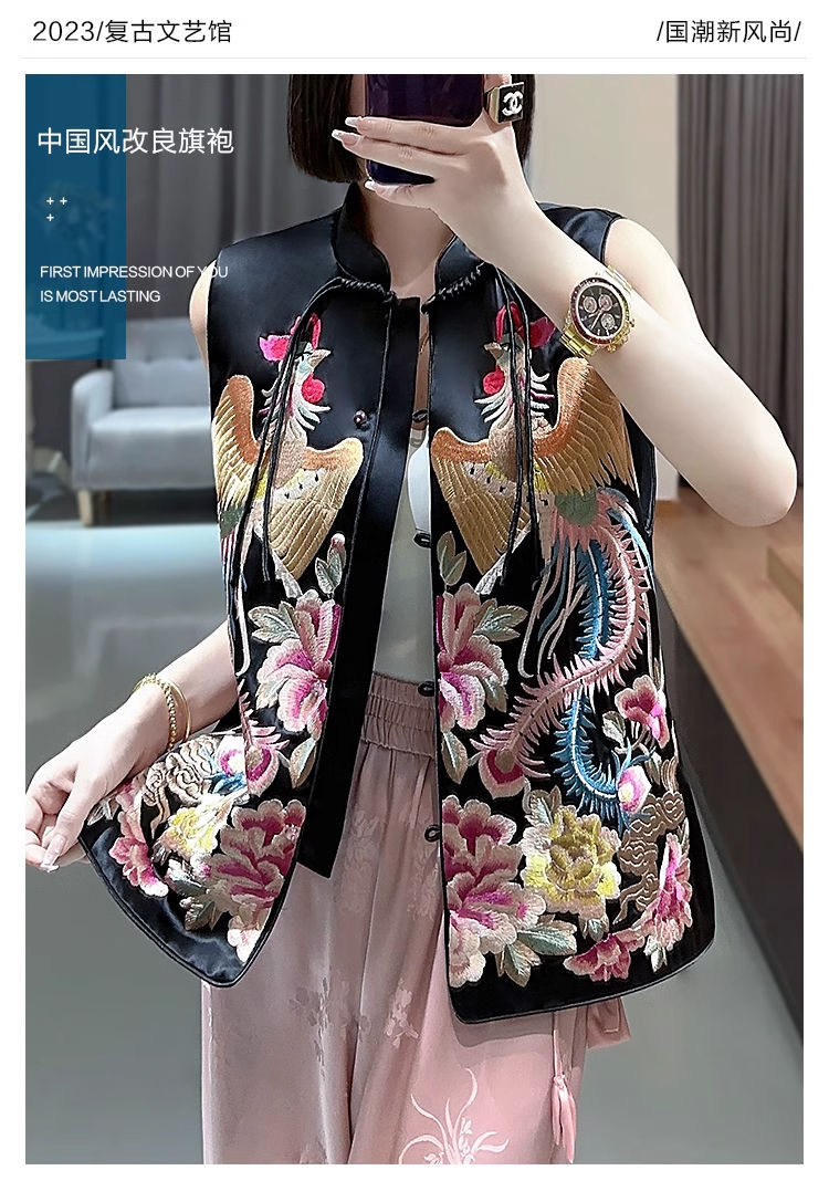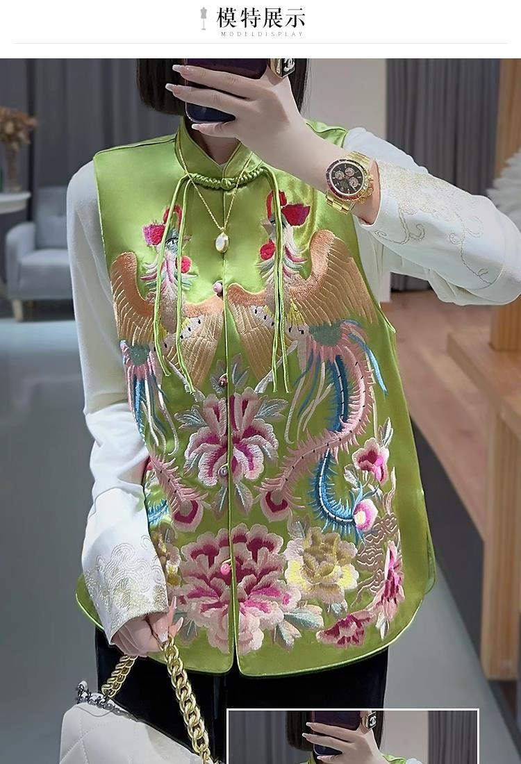 Новинка 2024 года, китайский стиль, тяжелая вышивка Феникса, жилет на все тело для женщин, весна-лето, элегантный костюм на пуговицах, жилет для женщин