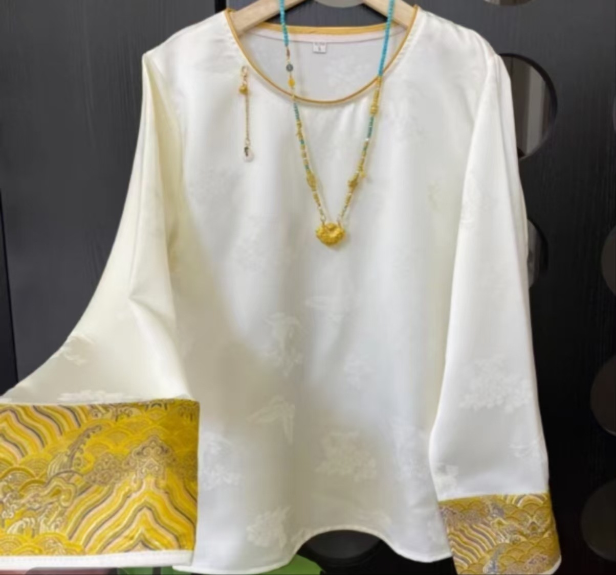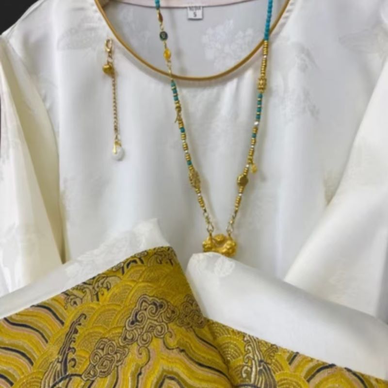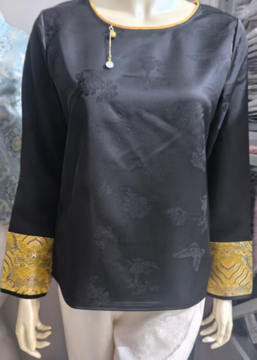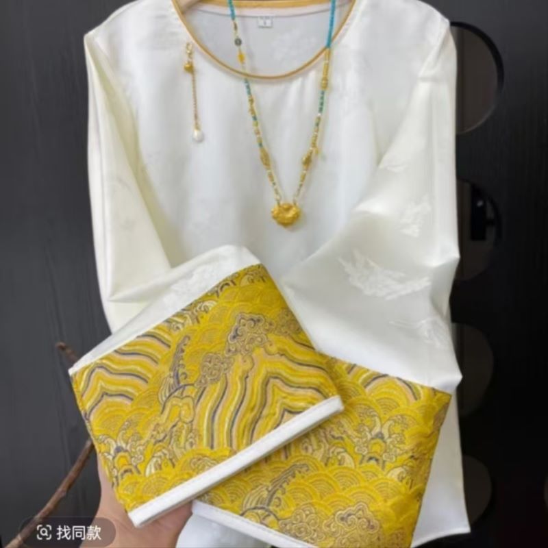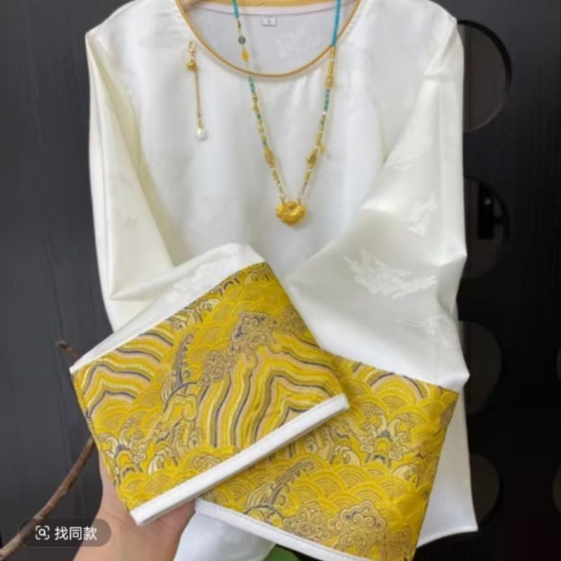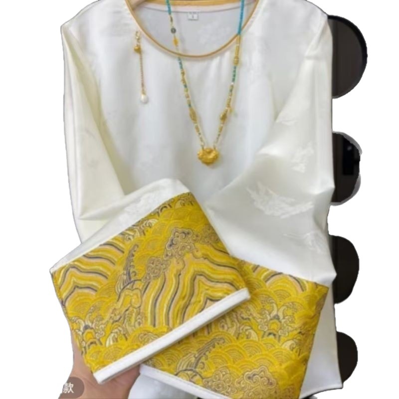 2025 новый китайский стиль свободный топ ретро элегантный круглый вырез жаккардовая рубашка с длинным рукавом женская тренд