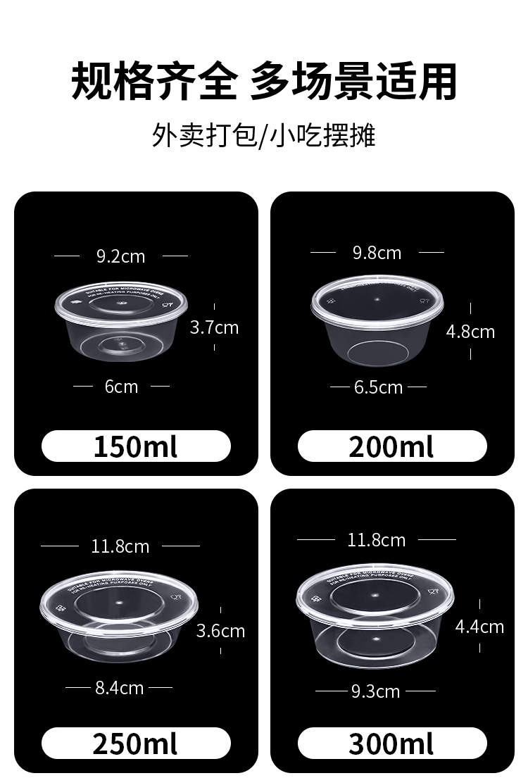 200мл круглый прозрачный (300 комплектов); Прозрачный круглый 150мл (1000 комплектов); 160мл матовый прозрачный (600 комплектов); 180мл круглый прозрачный (300 комплектов); 280мл круглый прозрачный (300 комплектов); Прозрачный пакет для супа объемом 220 мл (450 комплектов); 260мл круглый прозрачный (300 комплектов); 250мл круглый прозрачный (450 комплектов); 300мл круглый узор прозрачный (450 комплектов); 300мл круглый прозрачный (450 комплектов); 320мл круглый прозрачный (600 комплектов); 360мл круглый прозрачный (450 комплектов); Прозрачное ведро для супа объемом 360 мл (300 комплектов); 360 мл, девять углов, прозрачный (300 комплектов); 400мл круглый прозрачный (300 комплектов); 450мл прозрачный с круглым рисунком (450 комплектов); 450мл круглый прозрачный (450 комплектов); 500мл круглый узор прозрачный (450 комплектов); 500мл круглый прозрачный (450 комплектов); [Специальное предложение] Прозрачный 300 мл с круглым дном (450 комплектов); Черный круглый 150мл (1000 комплектов); 200мл круглый черный (300 комплектов); 280мл круглый черный (300 комплектов); 250мл круглый черный (450 комплектов); 300мл круглый черный (450 комплектов); 320мл круглый черный (600 комплектов); 400мл круглый черный (300 комплектов); 450мл круглый черный (450 комплектов); 500мл круглый черный (450 комплектов); 300мл круглый молочно-белый (450 комплектов); 260 круглых мисок (300 комплектов); 260 круглая миска с красной крышкой (набор 300 шт.); Прозрачная крышка молочно-белого цвета, 300 мл (240 комплектов); 495 круглая миска (набор из 300 шт.); 495 круглая миска с красной крышкой (набор 300 шт.); Судиан Американский 350 молочно-белый (300 комплектов); Американская маленькая миска 350 мл молочно-белого цвета (300 комплектов); 360 мл молочно-белого цвета с девятью углами (300 комплектов); [Утолщенная и герметичная] круглая прозрачная крышка 450 (150 комплектов); Прозрачная суповая миска на 20 унций (набор из 300 шт.); Чашка для соуса на 1 унцию (набор из 2000 шт.); Чашки для соуса по 1,5 унции (набор из 2000 шт.); Чашки для соуса по 2 унции (набор из 1000 штук); Чашки для соуса по 2 унции (набор из 1000 штук); Чашки для соуса на 4 унции (набор из 1000 шт.); Зеленая полная коробка 5 унций (500 комплектов)