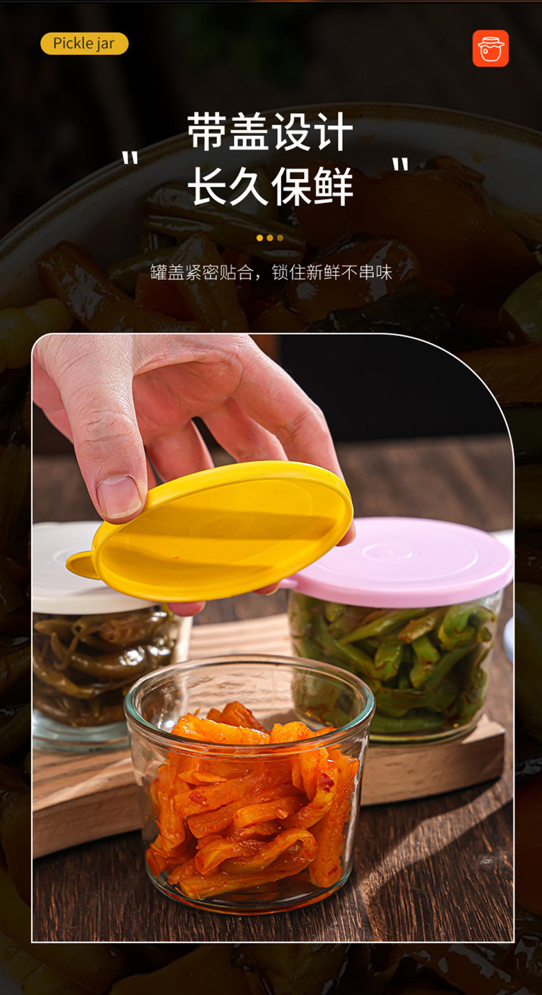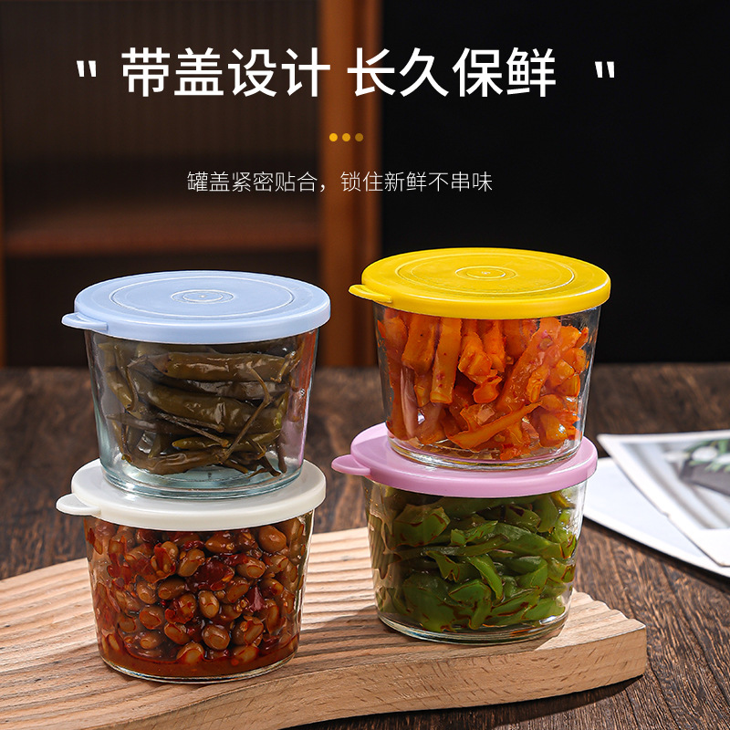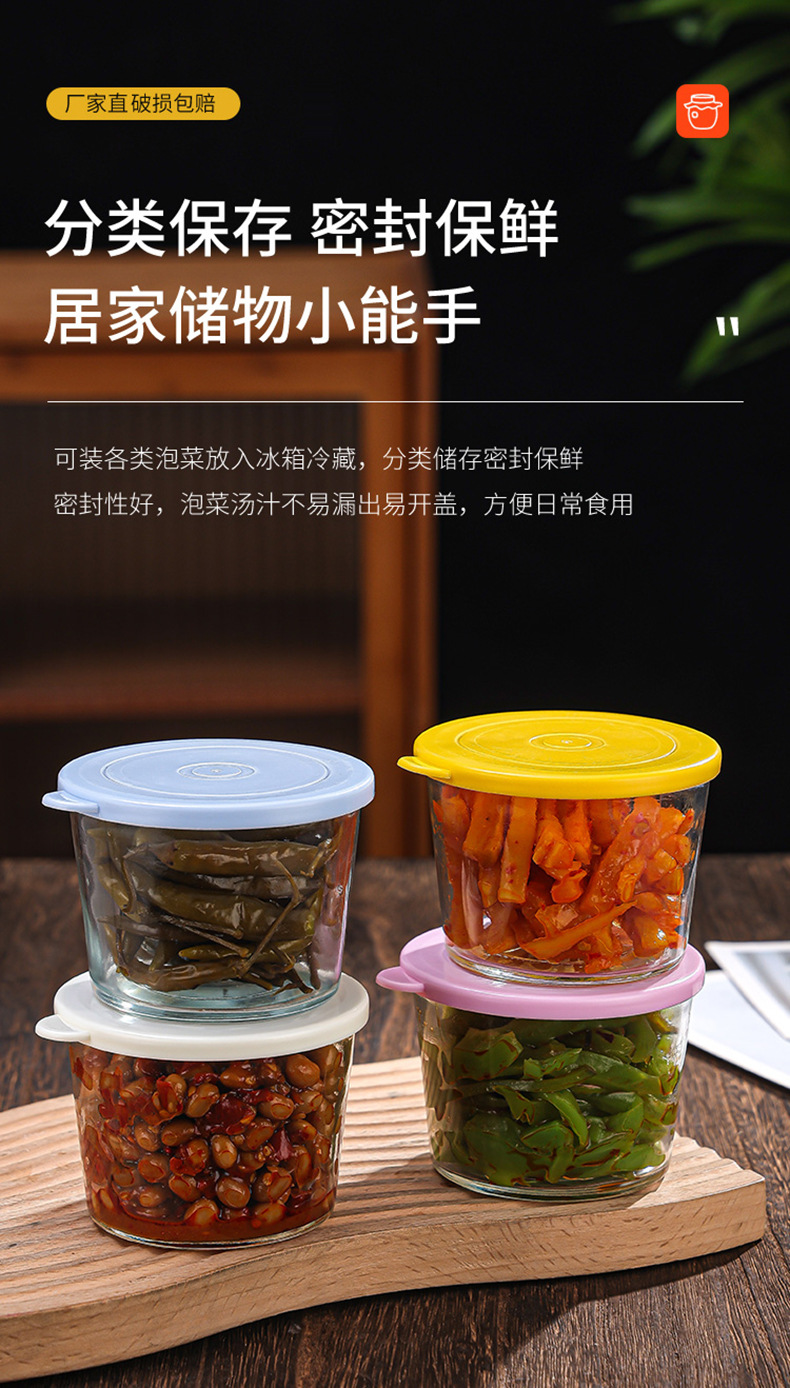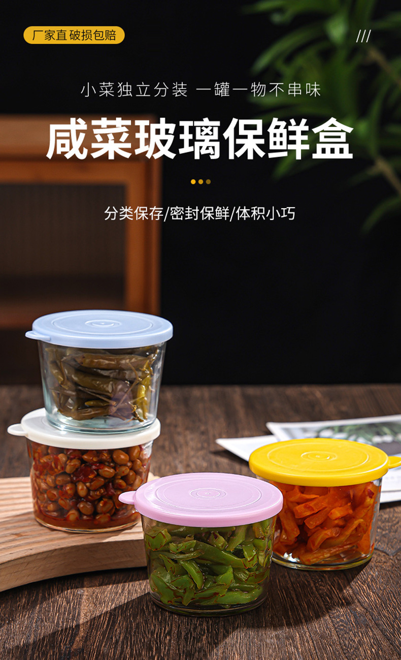 Стеклянная банка для солений с крышкой, стеклянная коробка для консервирования, стеклянная банка для хранения, пригодная для использования в микроволновой печи, миска для солений на 270 мл, ланч-бокс