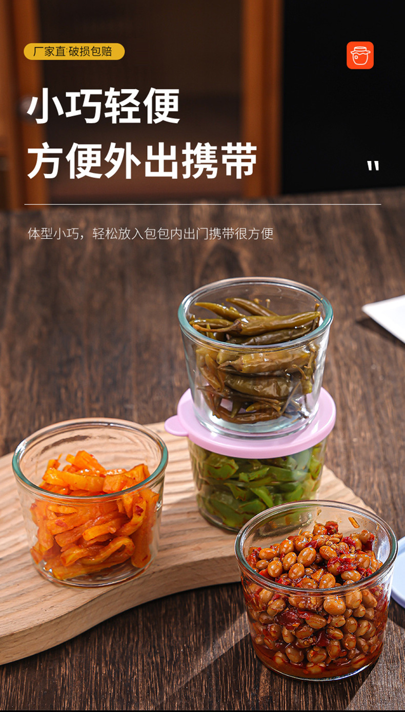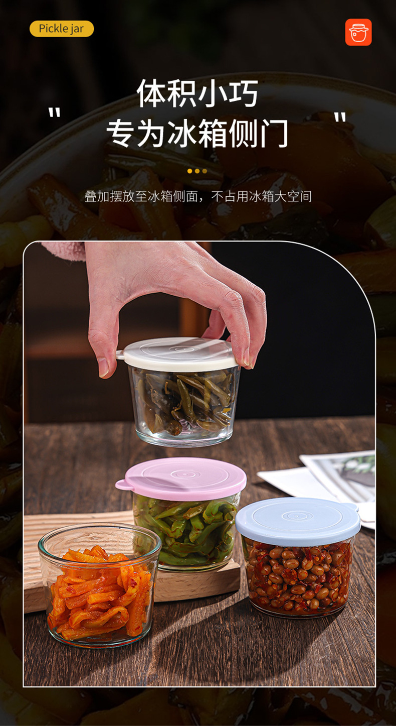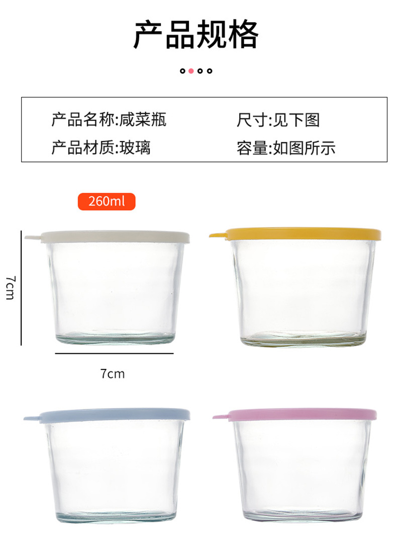 Стеклянная банка для солений с крышкой, стеклянная коробка для консервирования, стеклянная банка для хранения, пригодная для использования в микроволновой печи, миска для солений на 270 мл, ланч-бокс