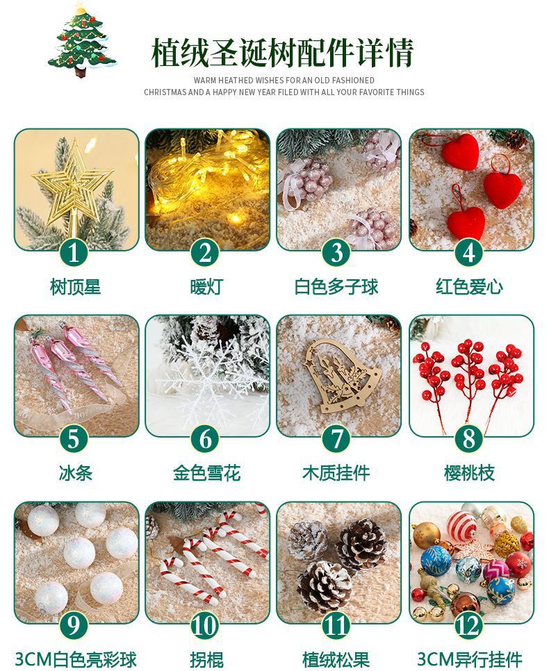 Новогодний набор для елки 1.5 флокирование 1.8 шифрование домашний эффект падающего снега большие украшения для отеля и декора