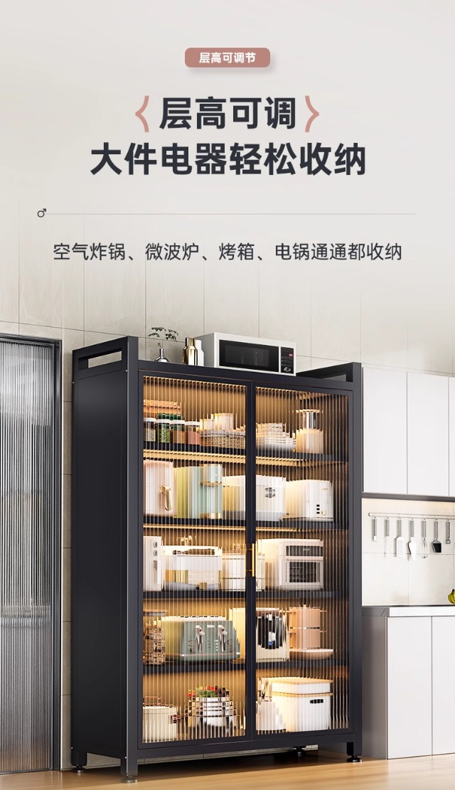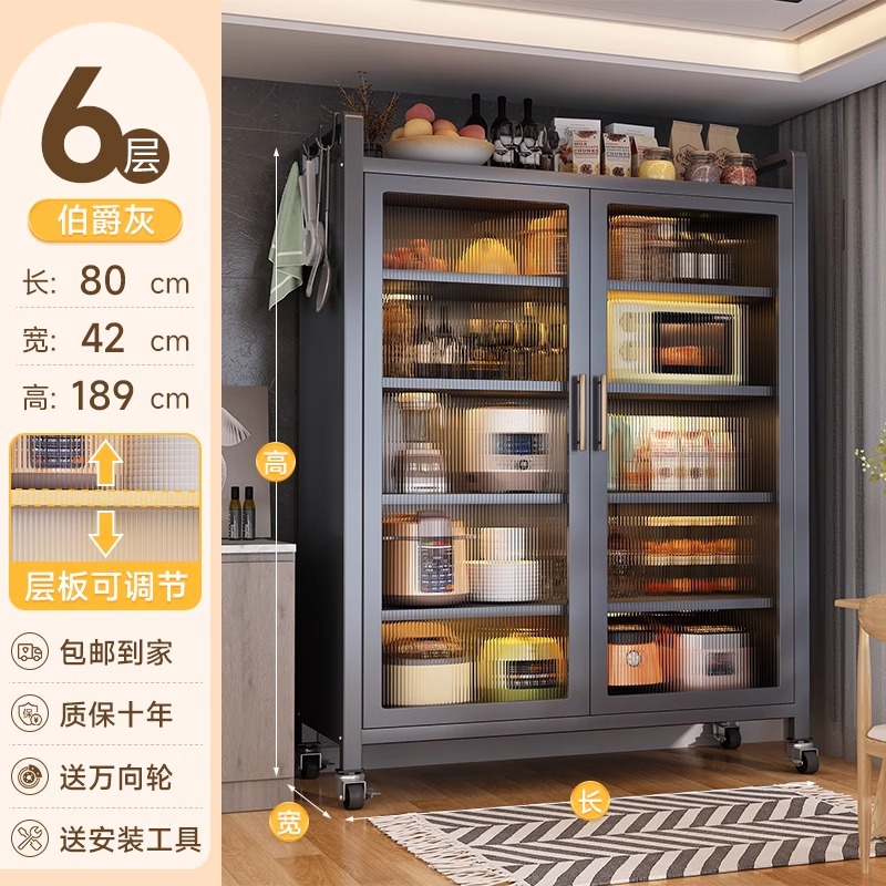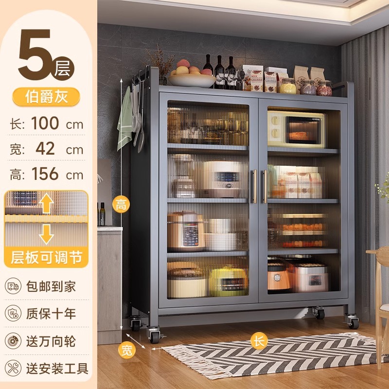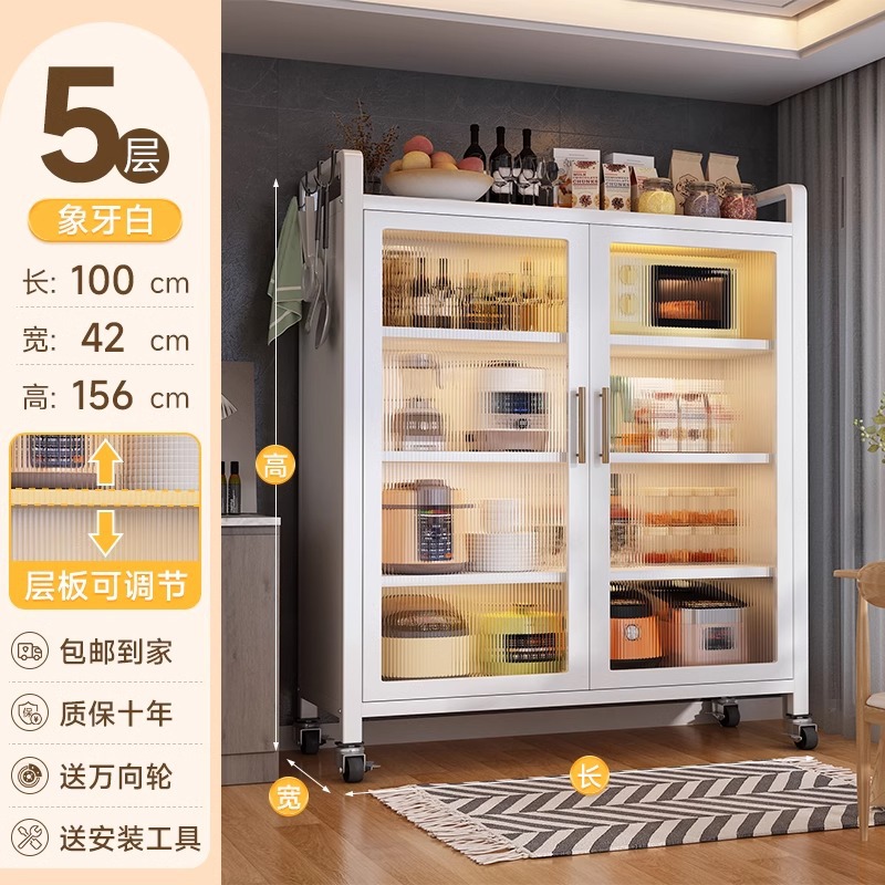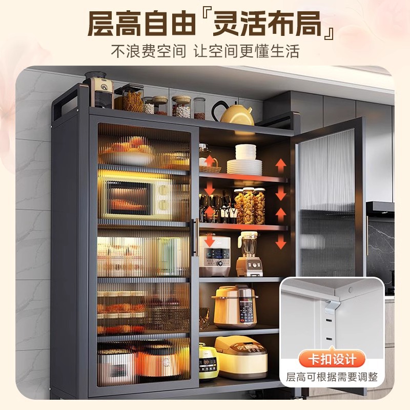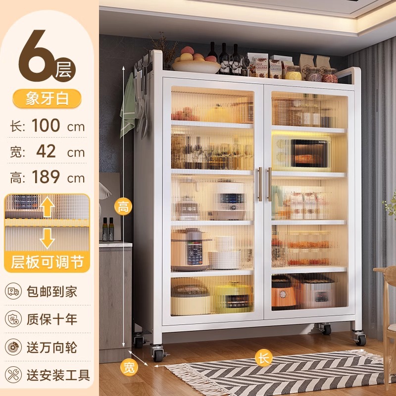 Кухонная полка для дома от пола до потолка Многоуровневый шкаф для хранения с дверью для защиты от пыли