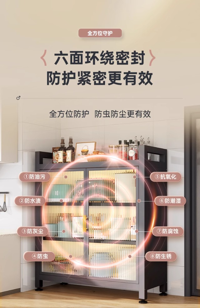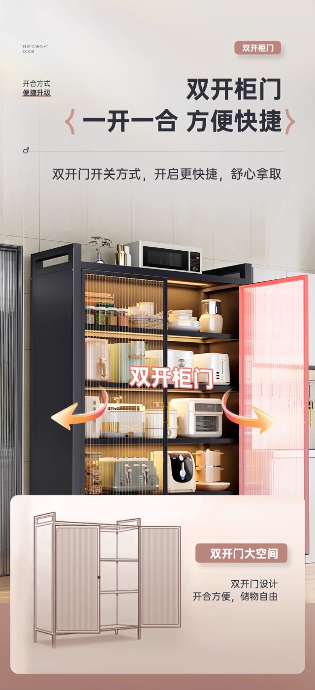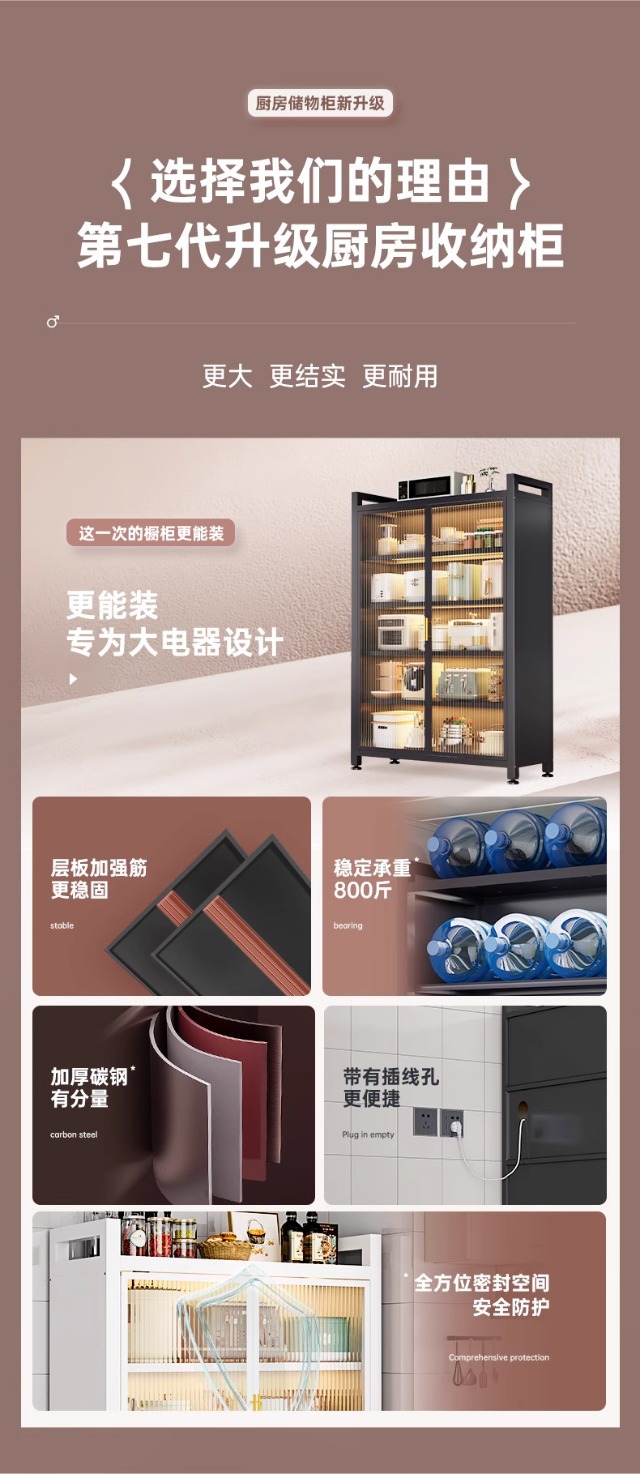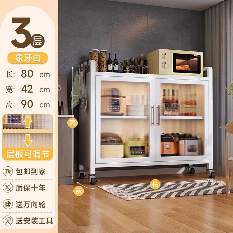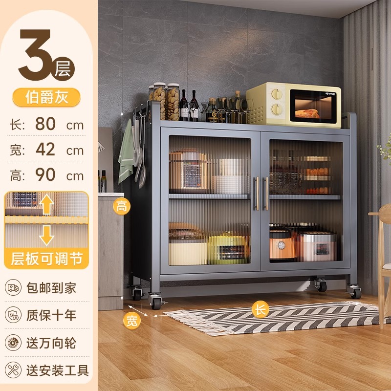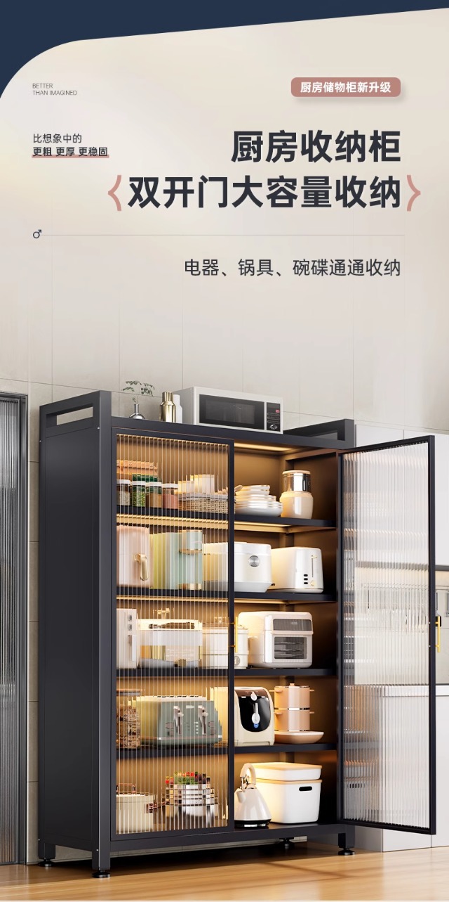 Кухонная полка для дома от пола до потолка Многоуровневый шкаф для хранения с дверью для защиты от пыли
