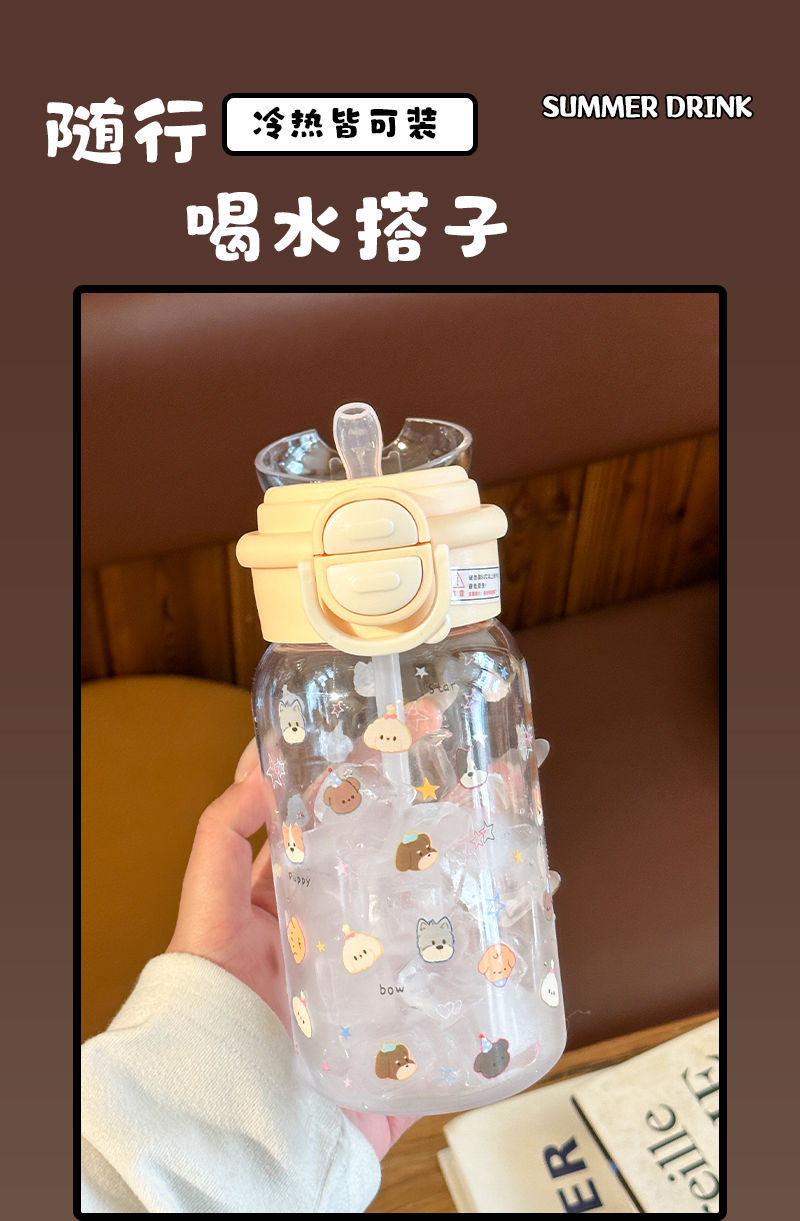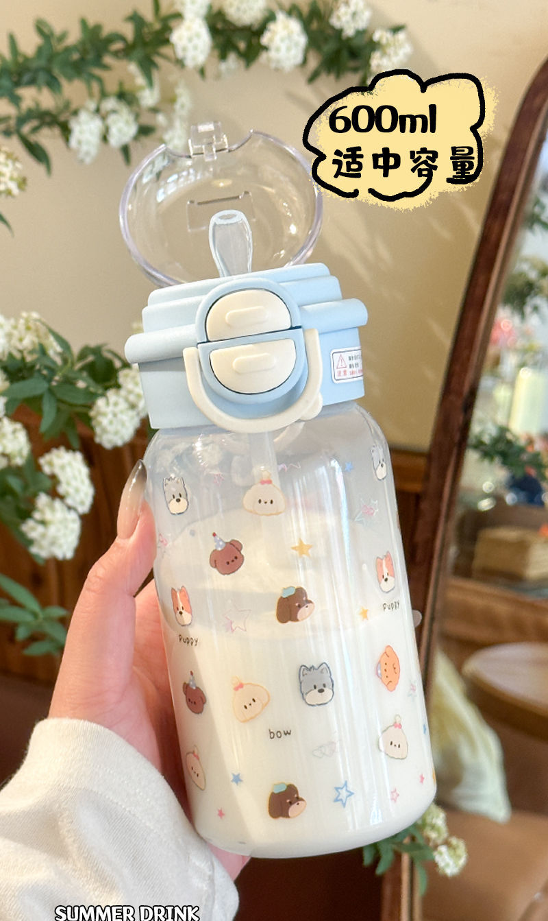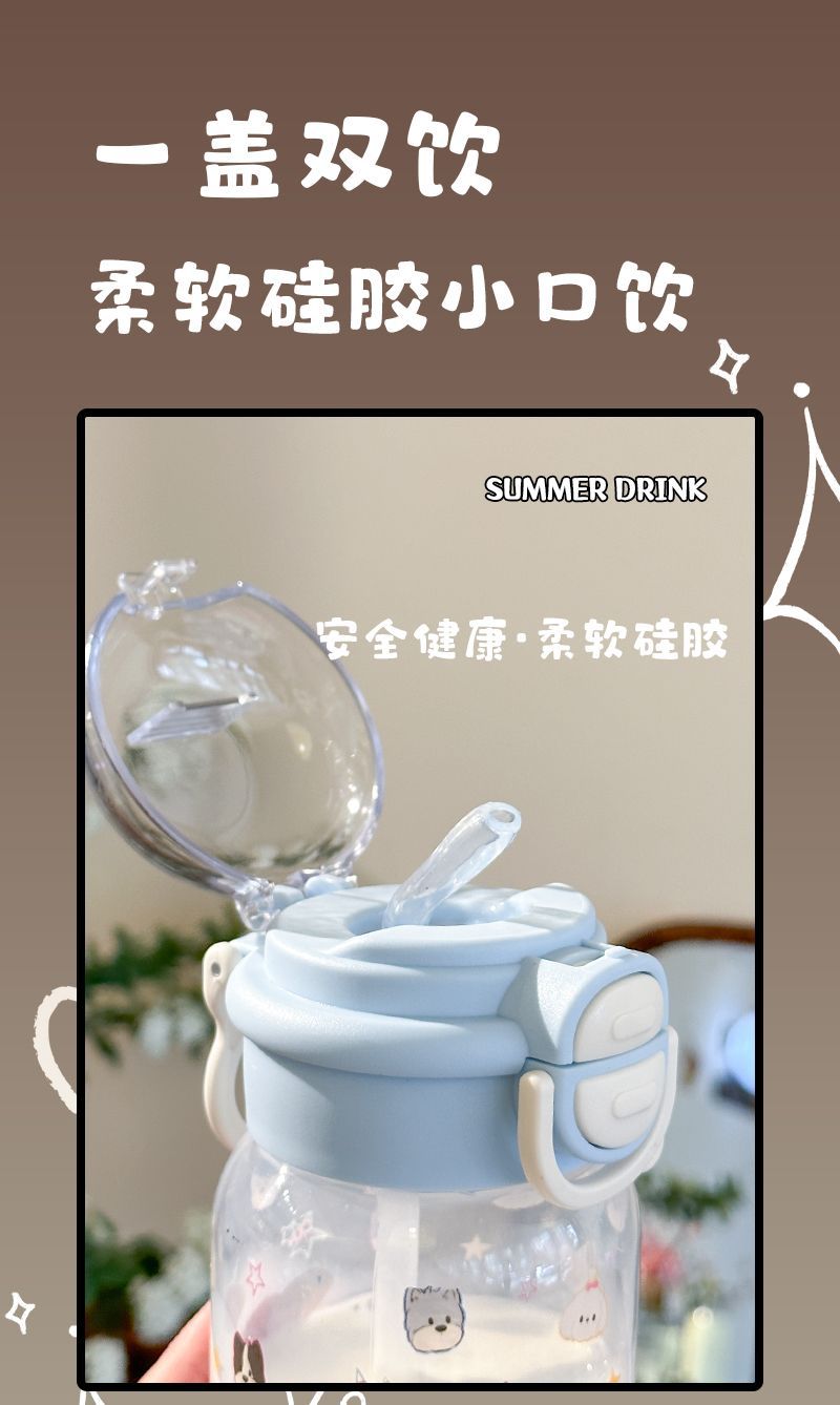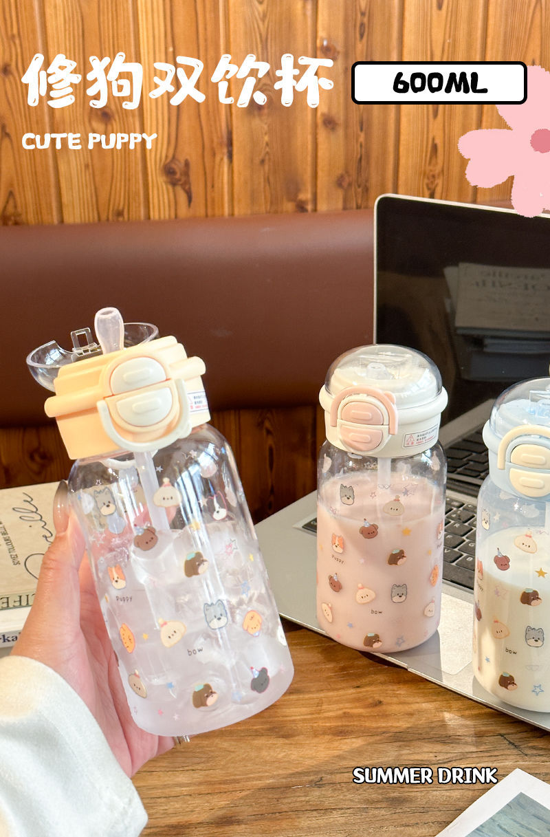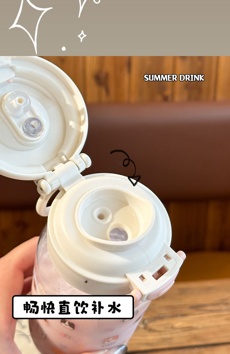 Стильный пластиковый стакан для девочек 2025 года, летний стакан для воды с двойной крышкой, портативный студенческий милый удобный стакан с трубочкой