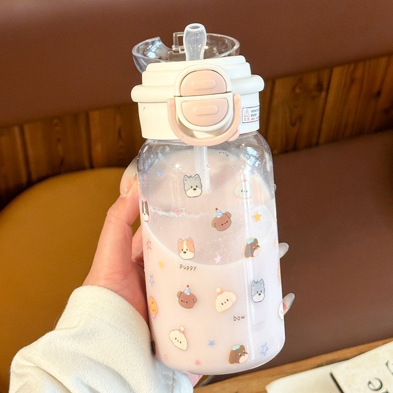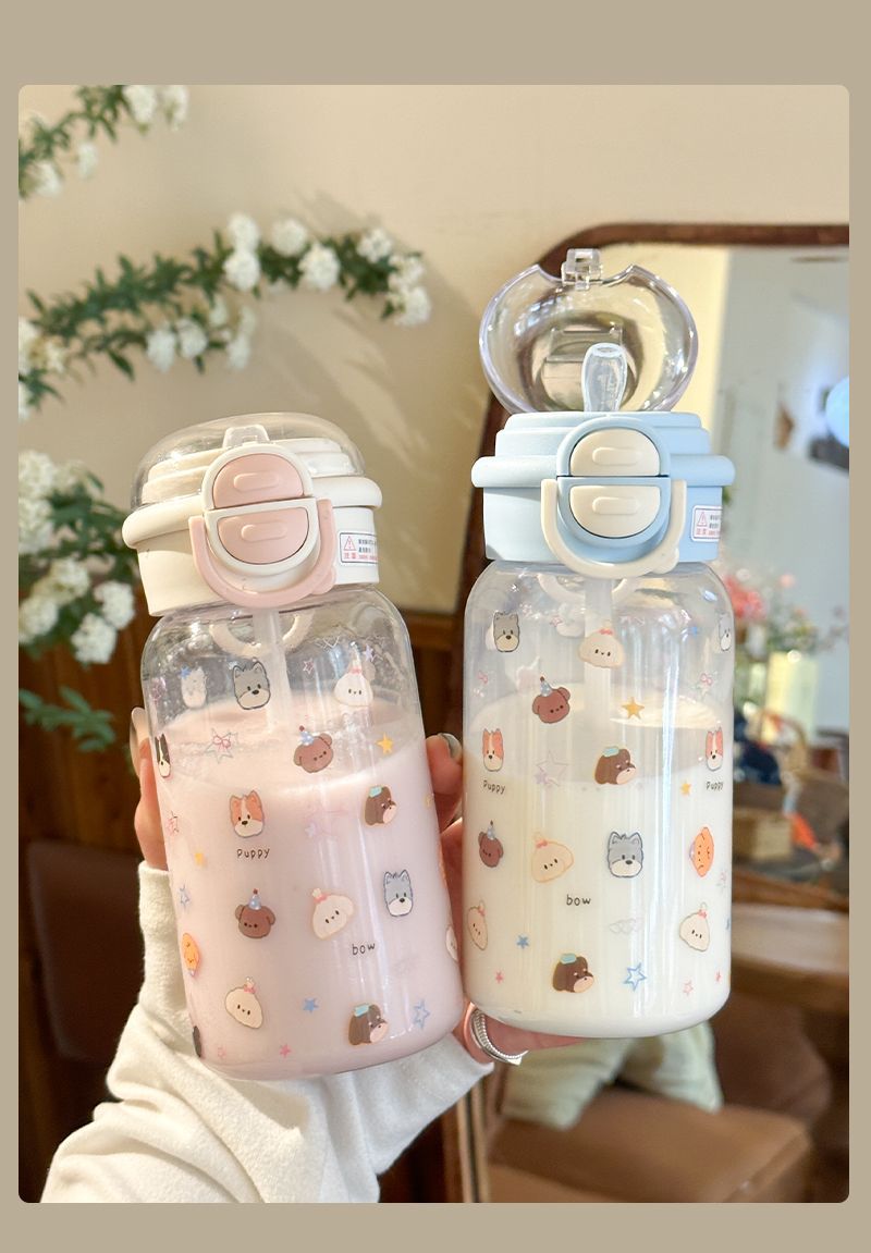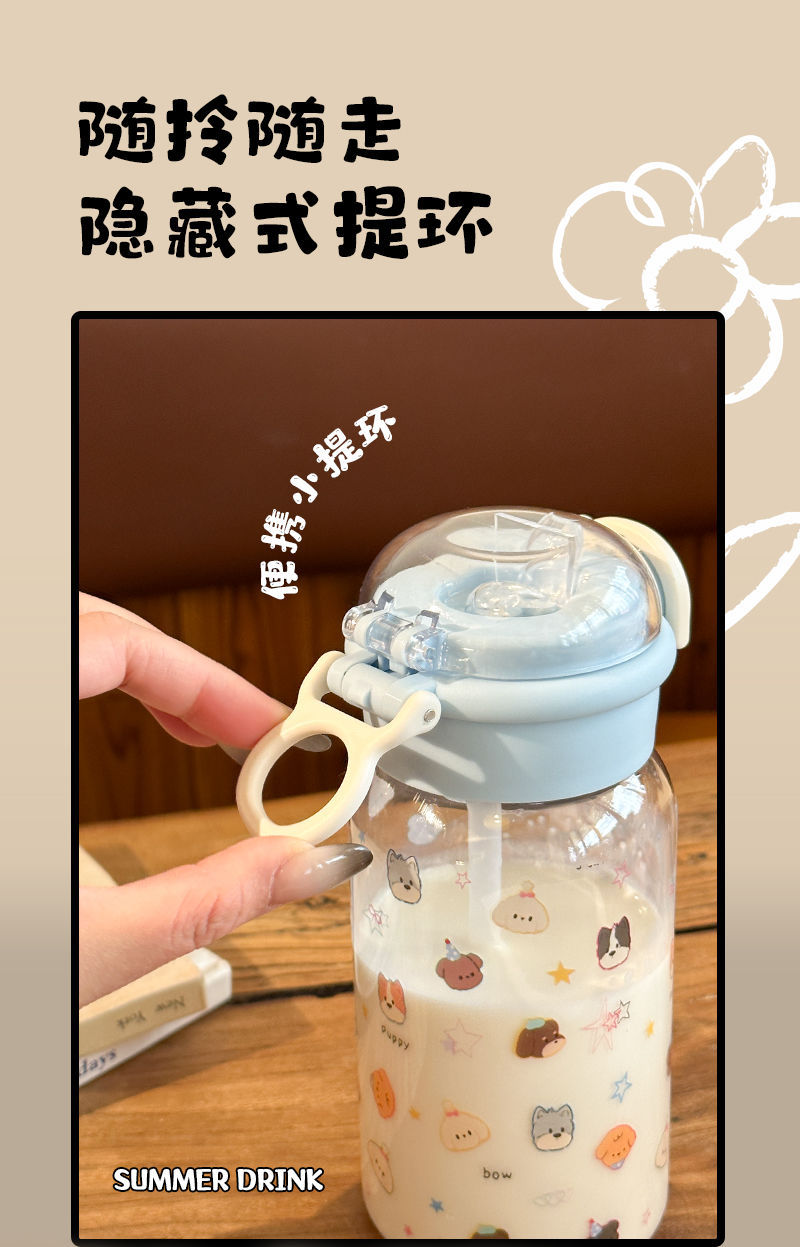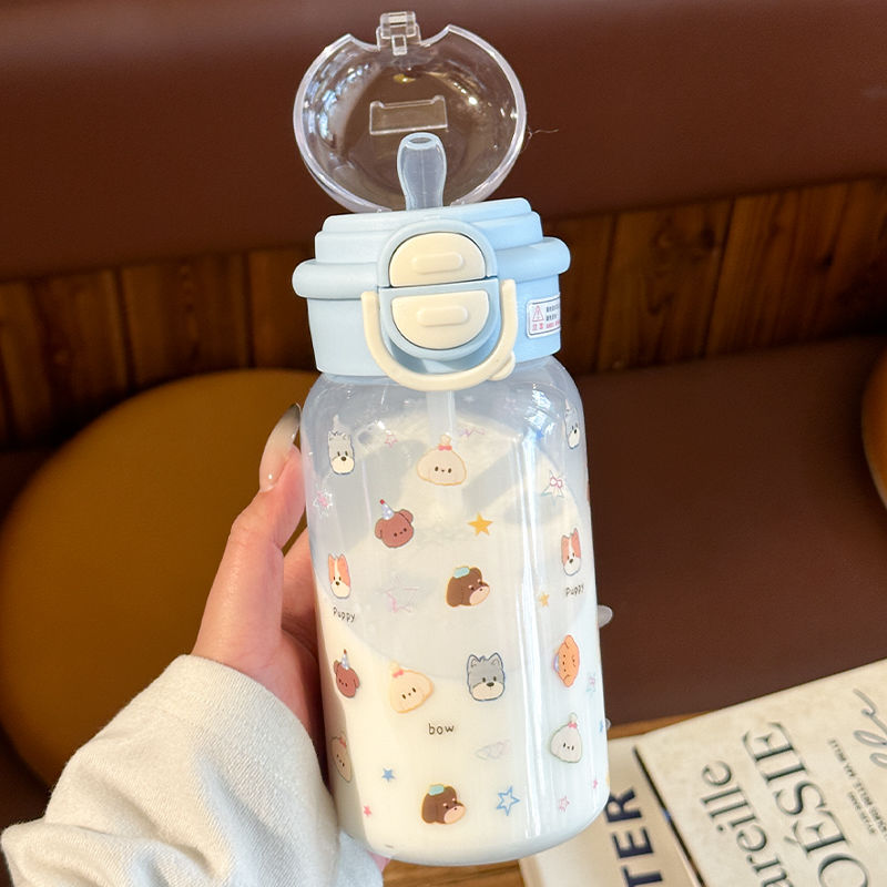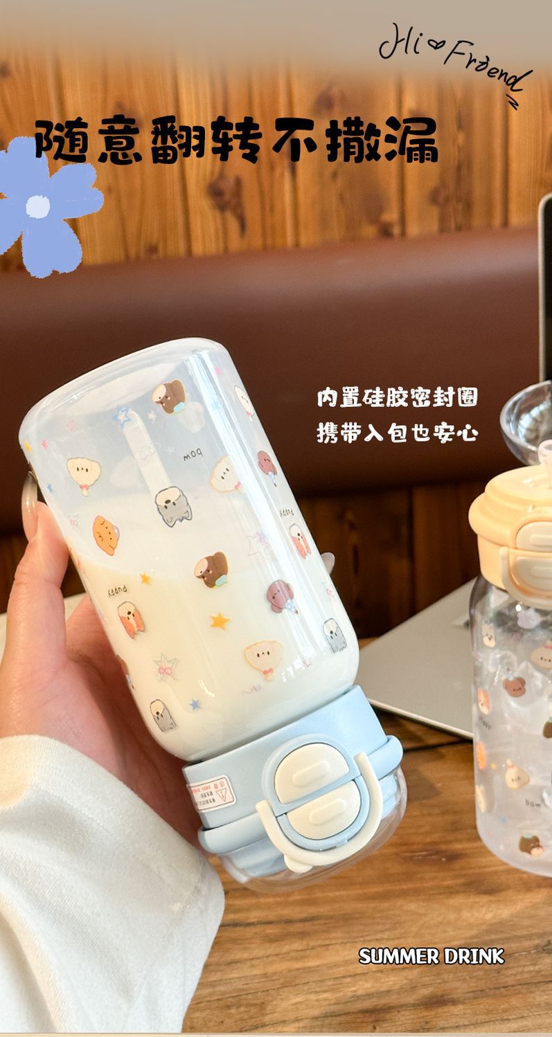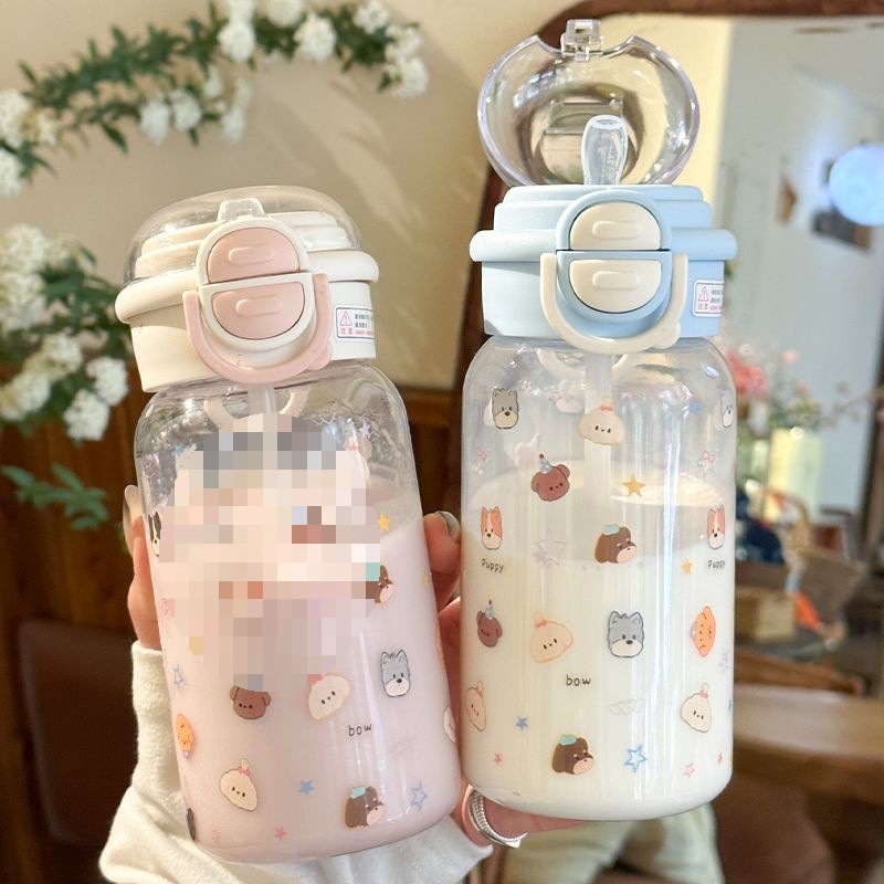Стильный пластиковый стакан для девочек 2025 года, летний стакан для воды с двойной крышкой, портативный студенческий милый удобный стакан с трубочкой