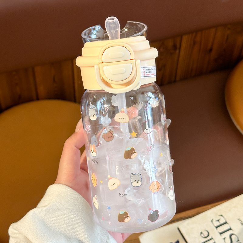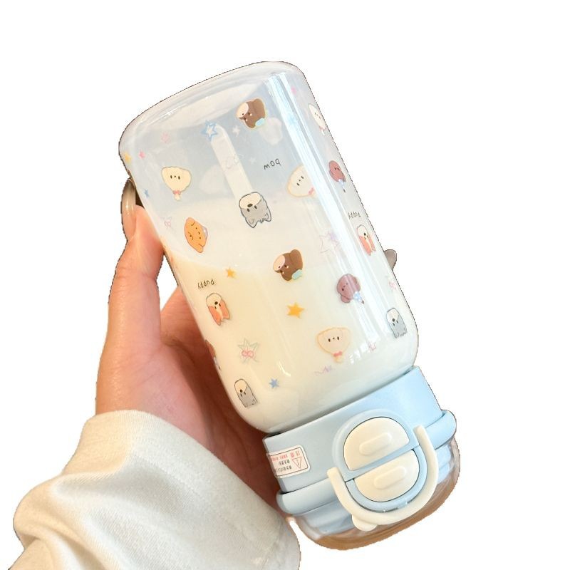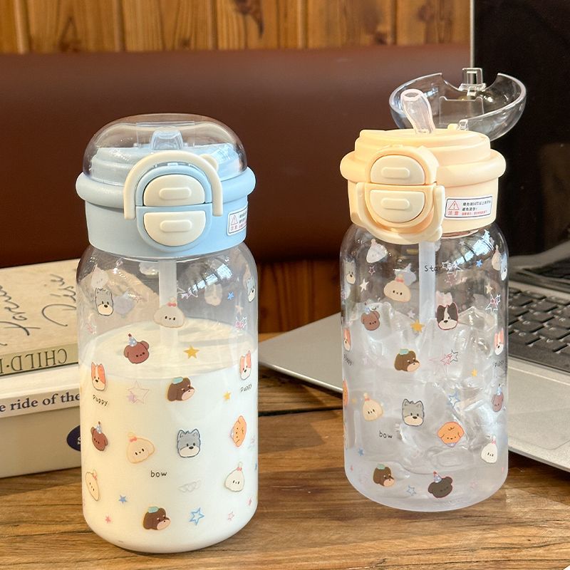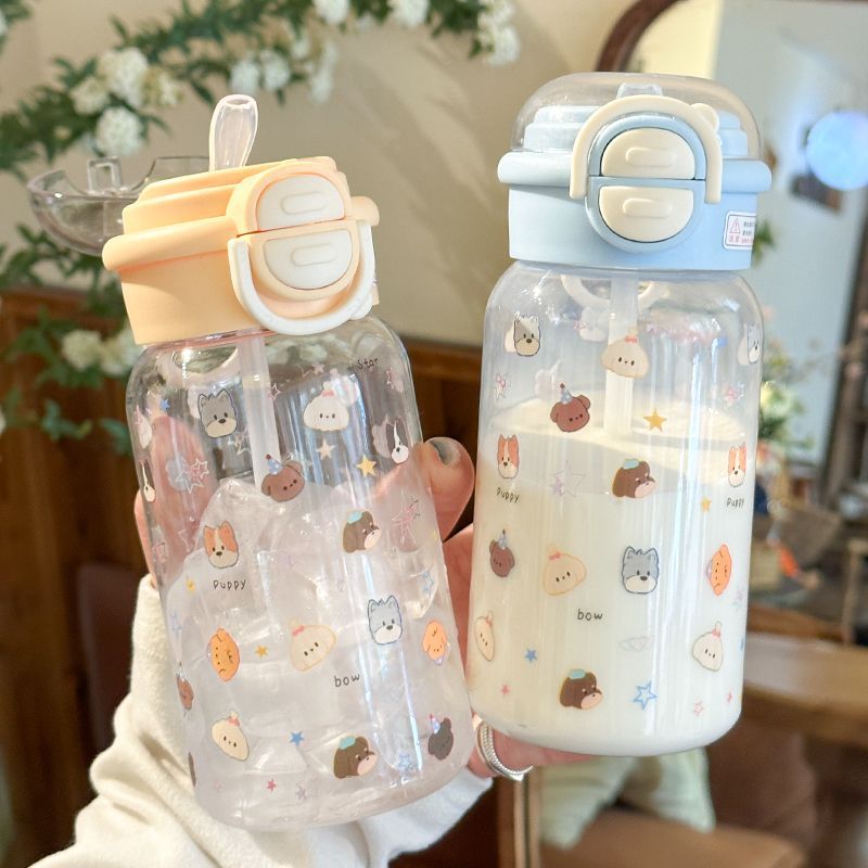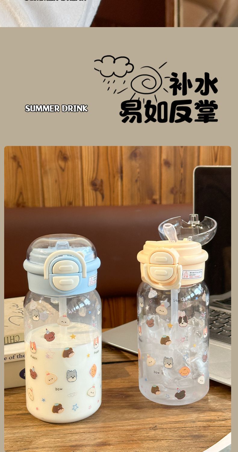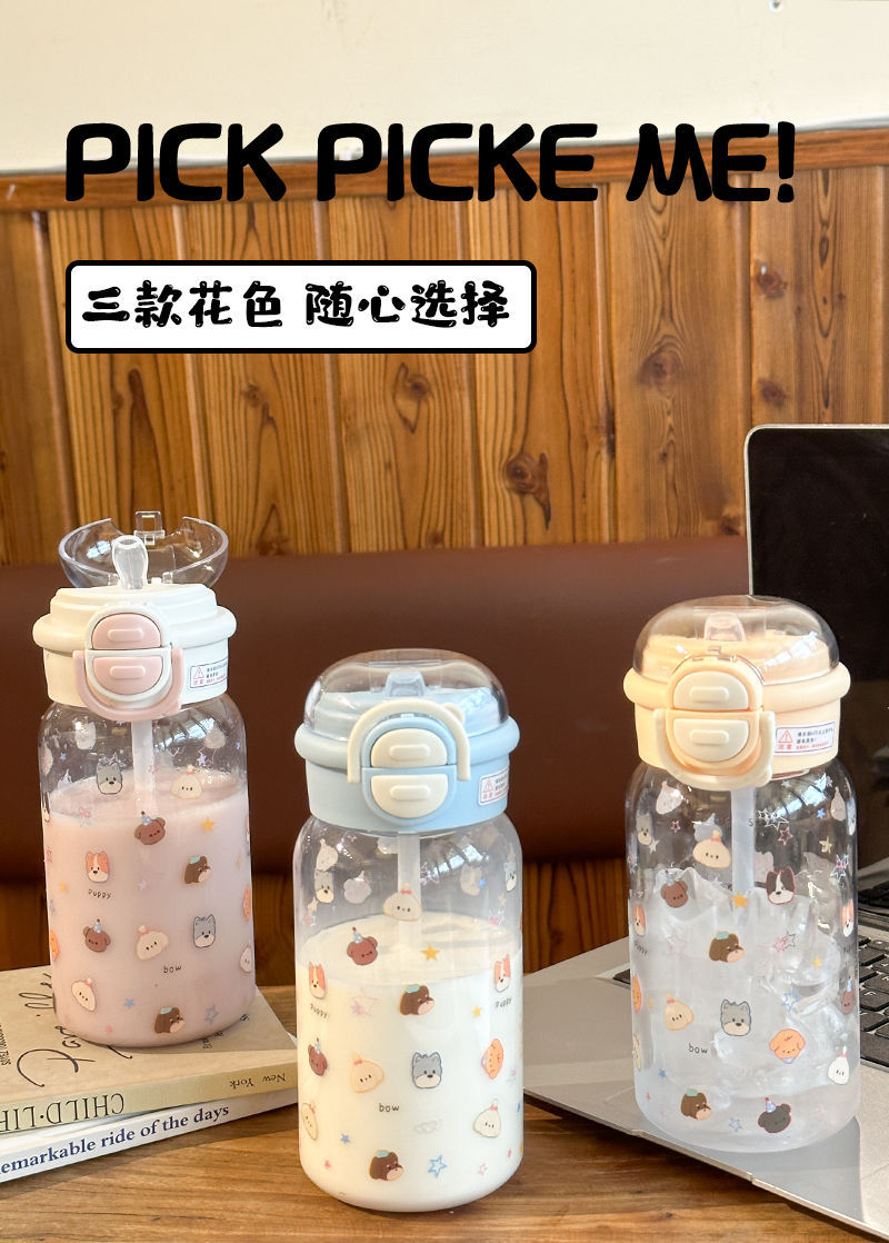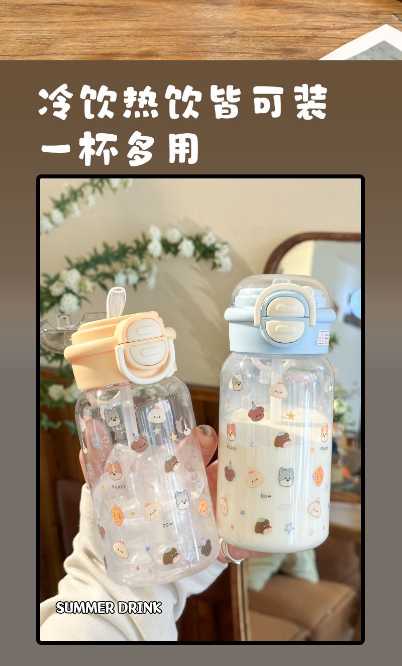 Стильный пластиковый стакан для девочек 2025 года, летний стакан для воды с двойной крышкой, портативный студенческий милый удобный стакан с трубочкой