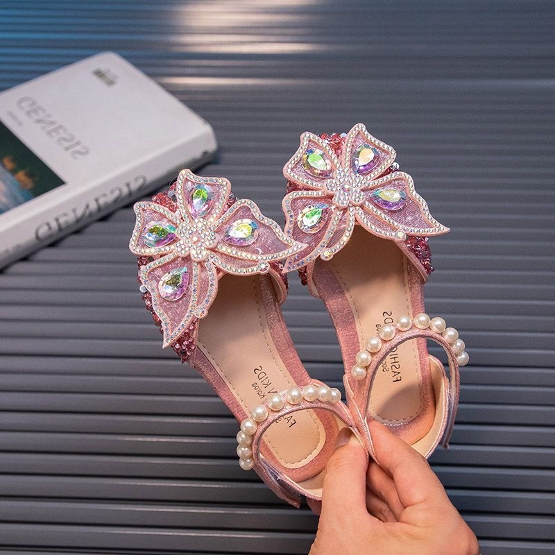 Сандалии для девочек Baotou, новые летние детские туфли принцессы на мягкой подошве со стразами, модная танцевальная обувь для маленьких девочек