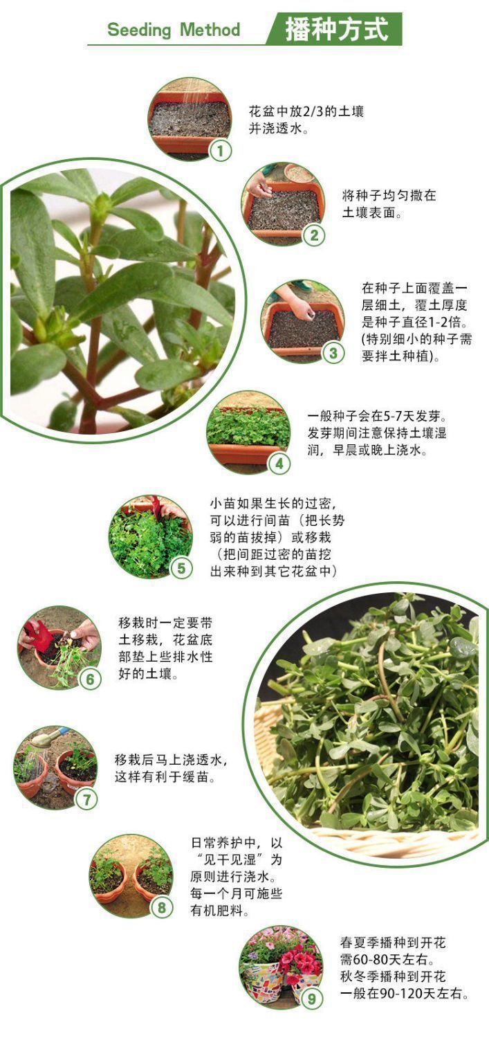 Семена диких овощей для съедобного балконного посадки портулака, овощей долголетия и огорода здоровья.
