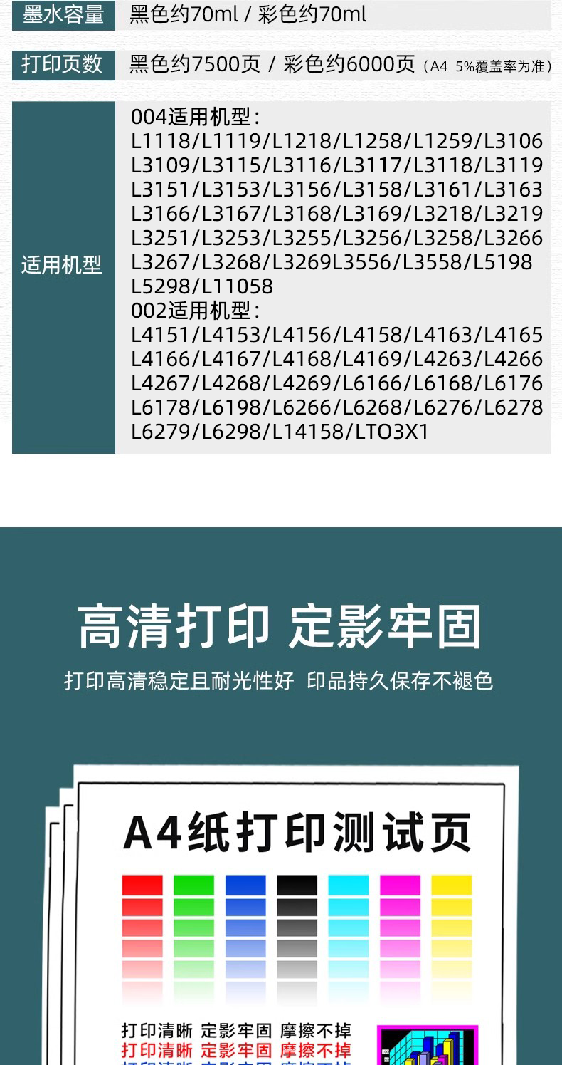 Подходит для чернил Epson 004 002 L3251 L3256 L3258 L3118 L1258 L3255 L4
