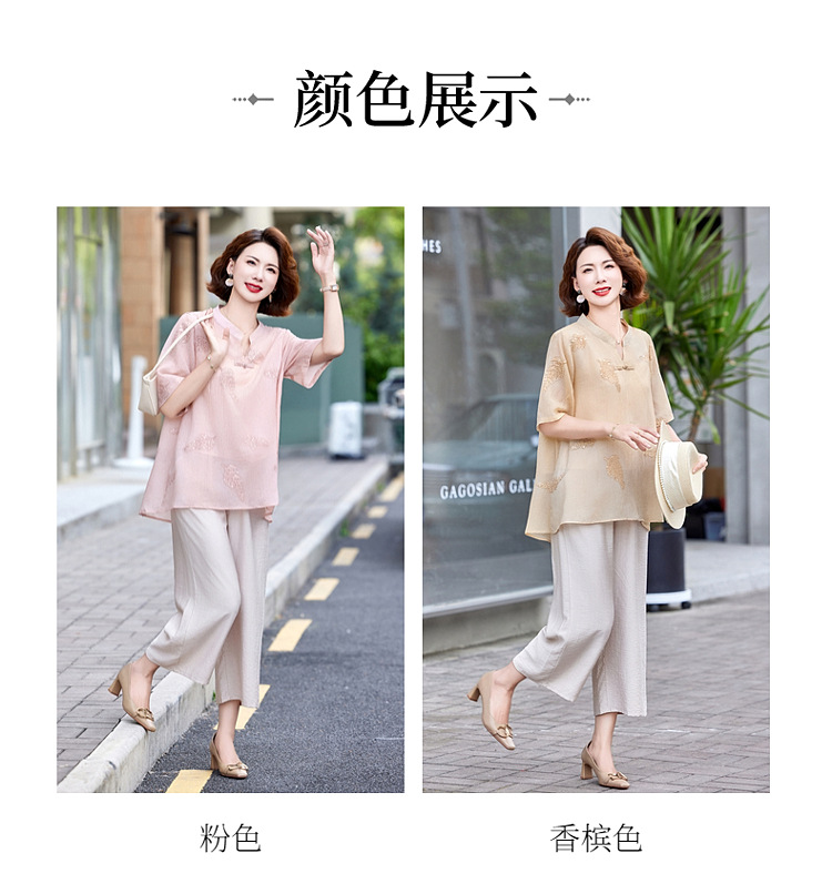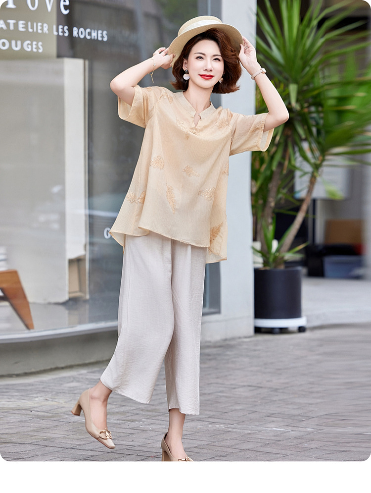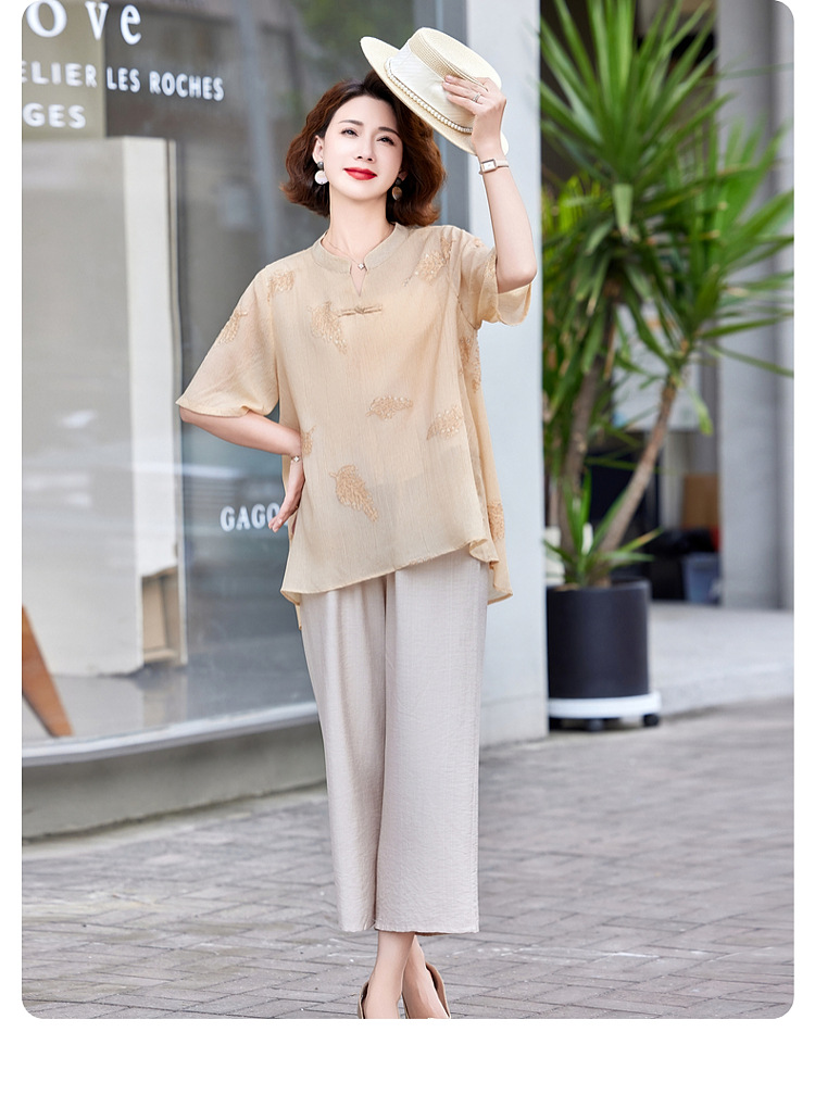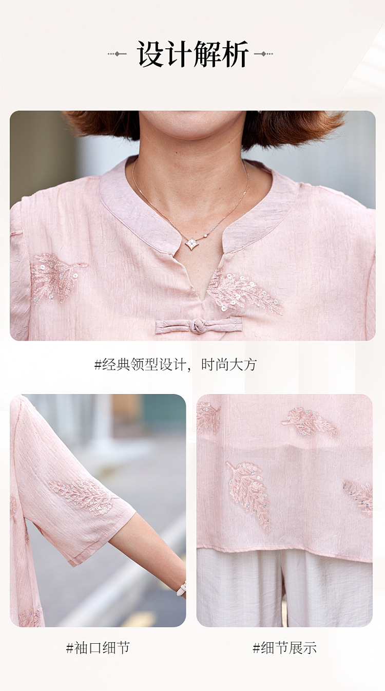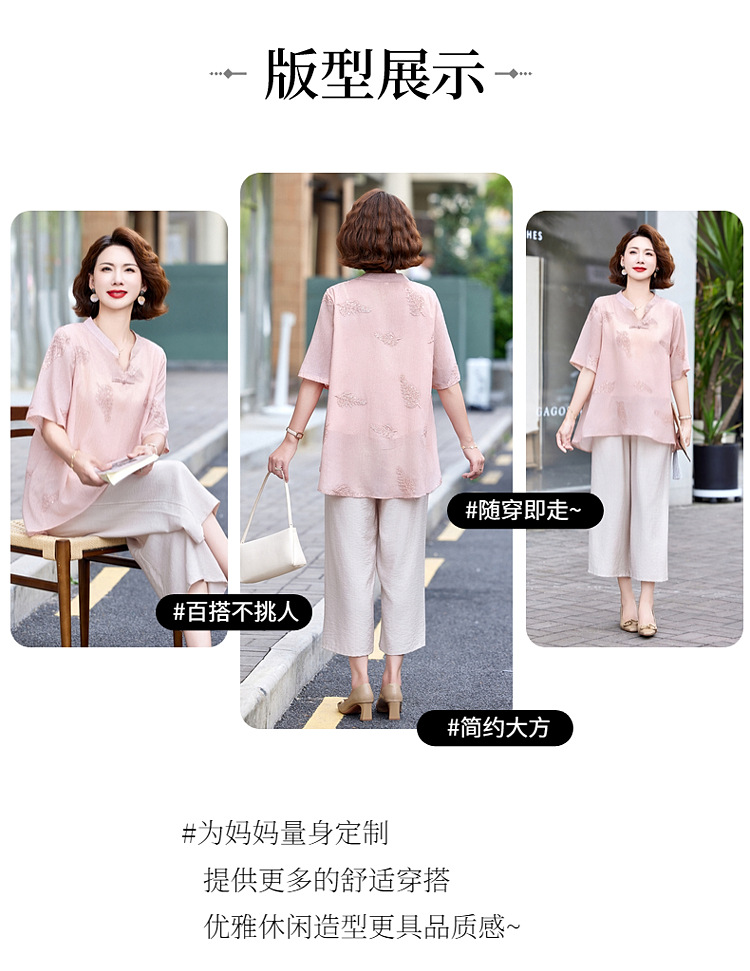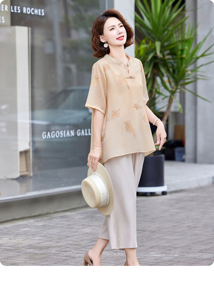 Мама одеваются 2025 летний новый национальный стиль топ футболка рубашка среднего и пожилого возраста женская свободная пуловера маленькая рубашка