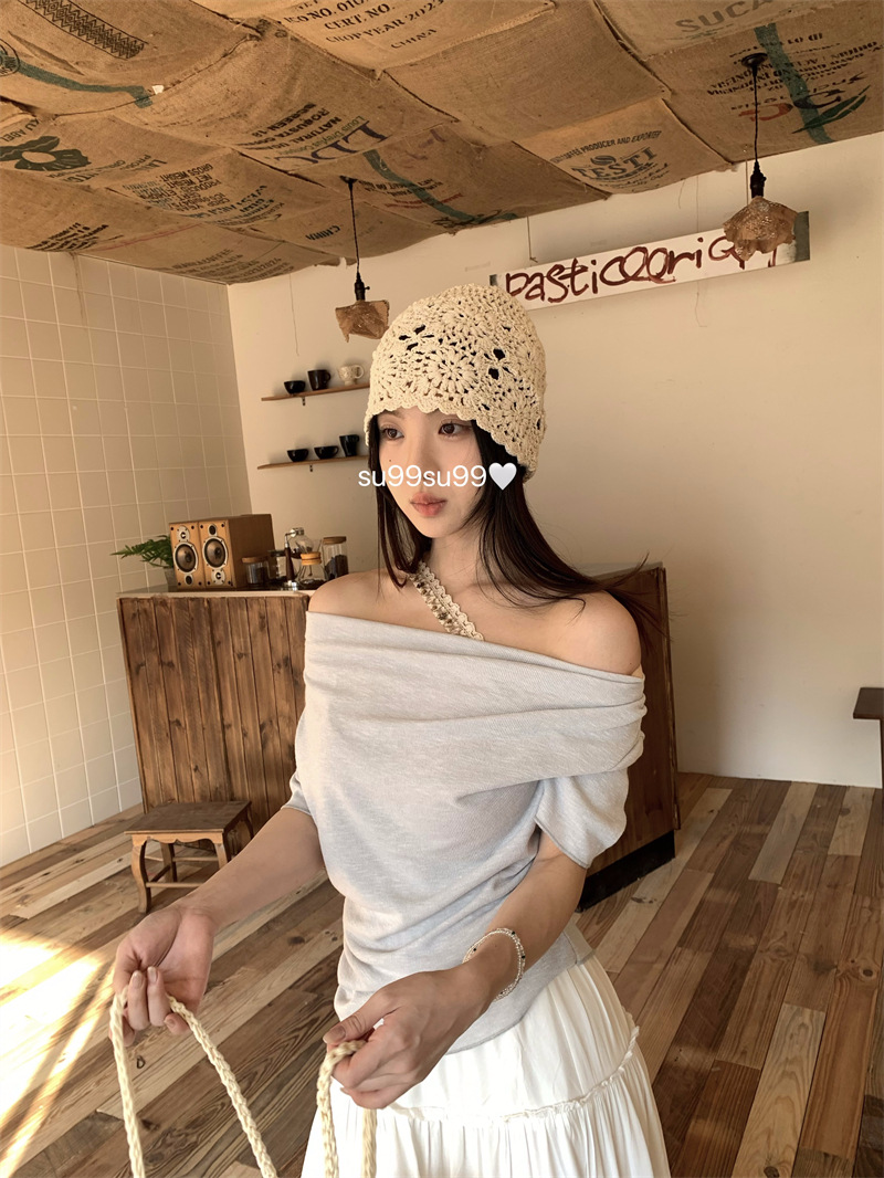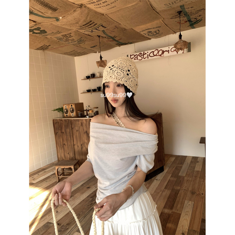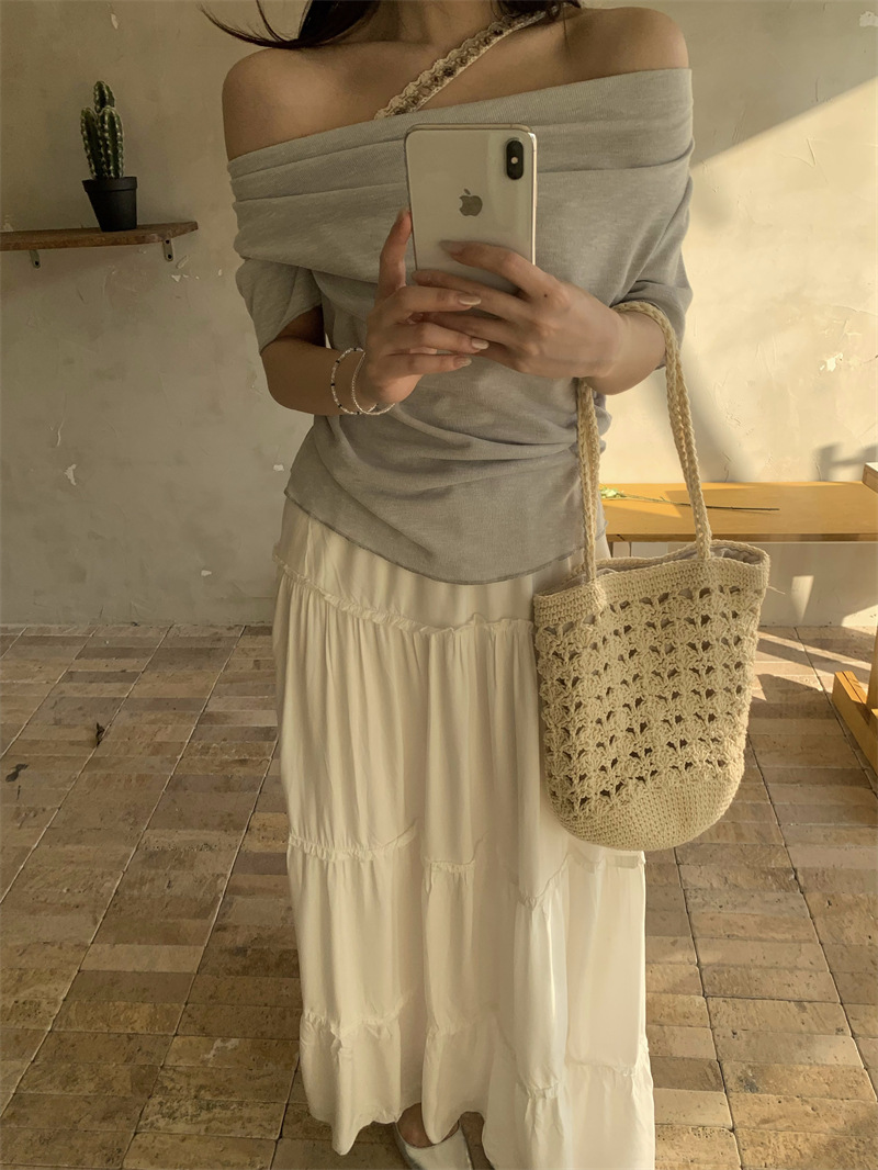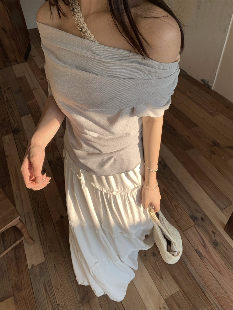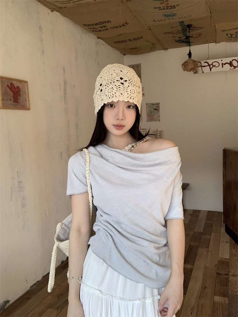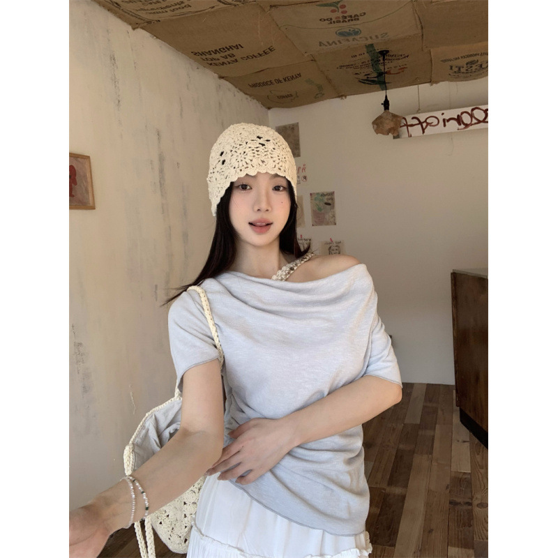 Реальный снимок, реальная цена, поддельная футболка из двух частей с короткими рукавами и кружевом для женщин, летняя футболка для похудения, сексуальный топ на одно плечо