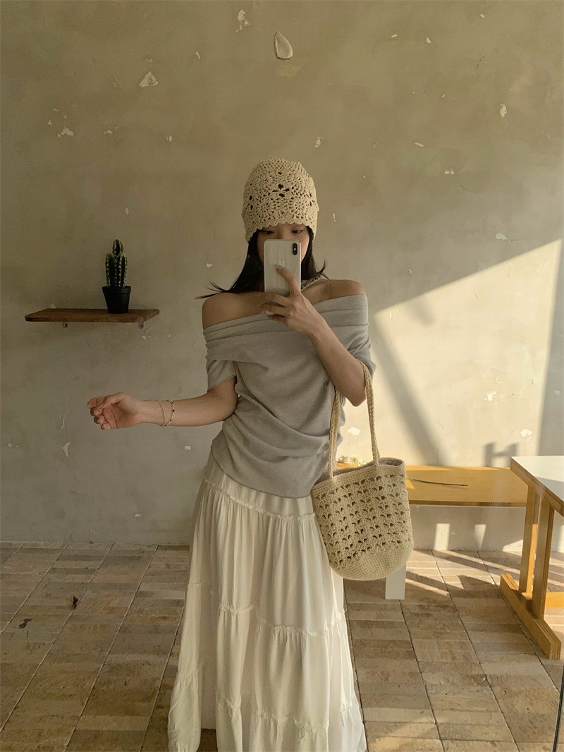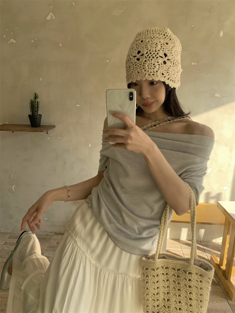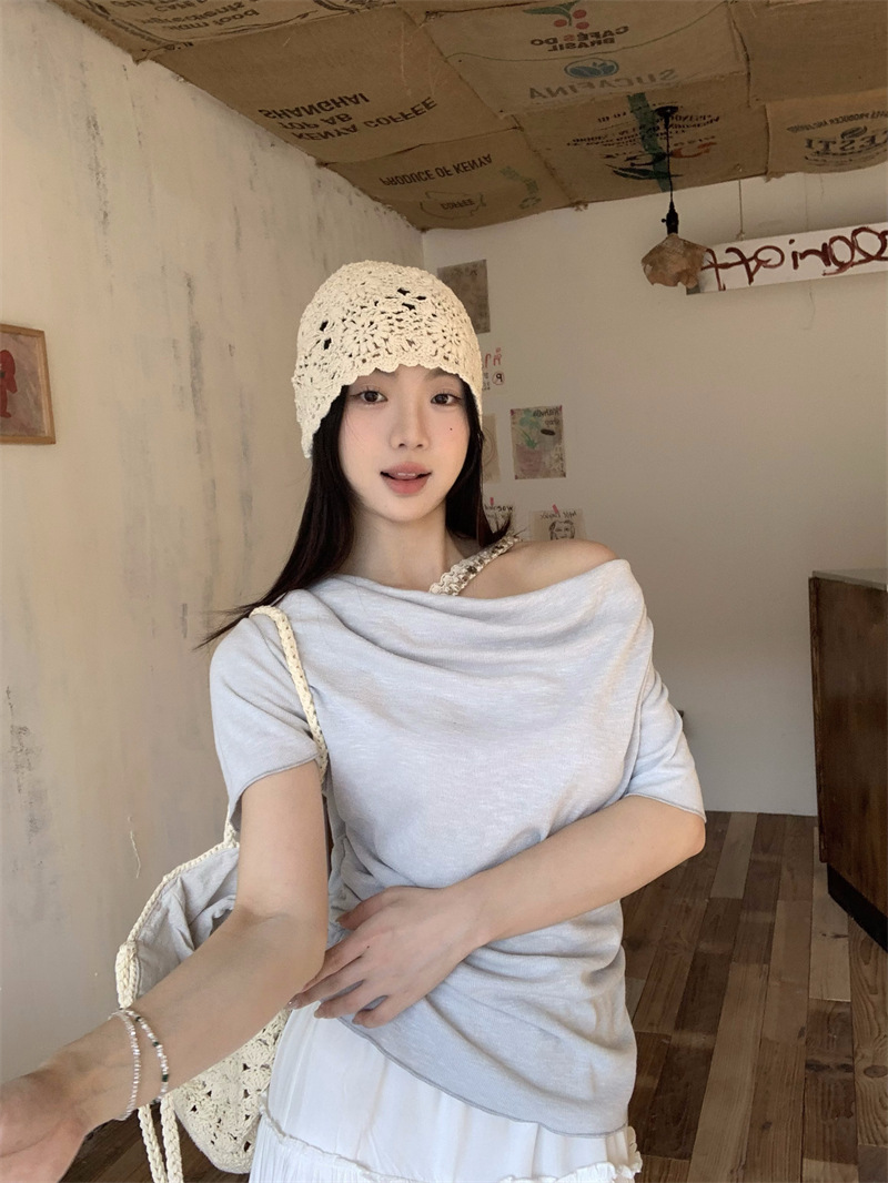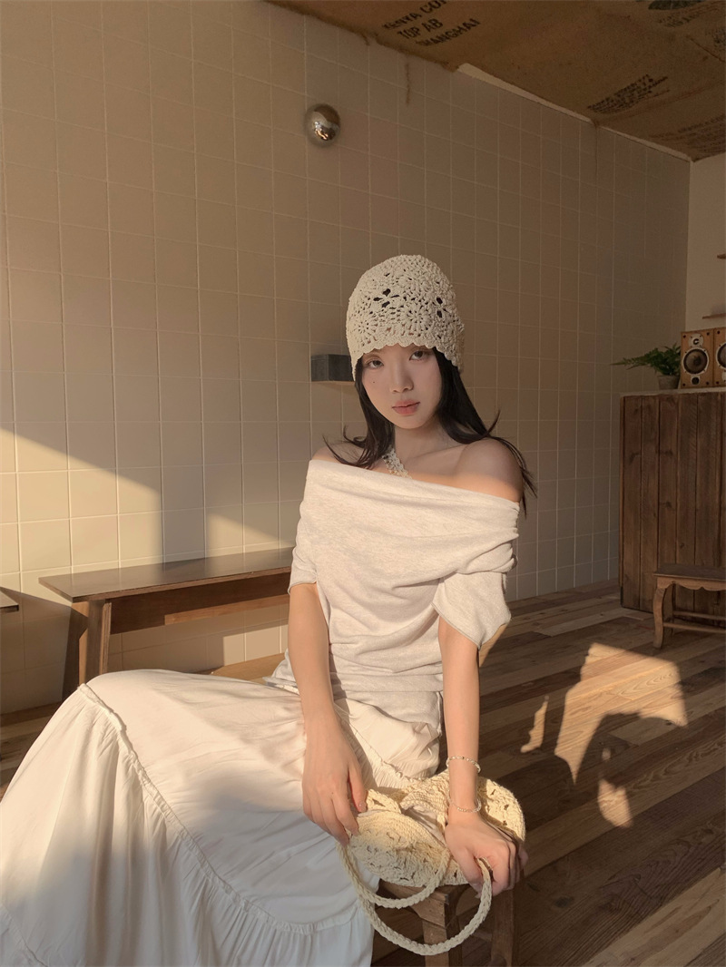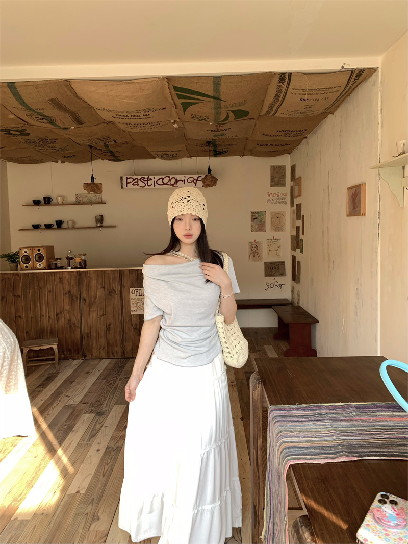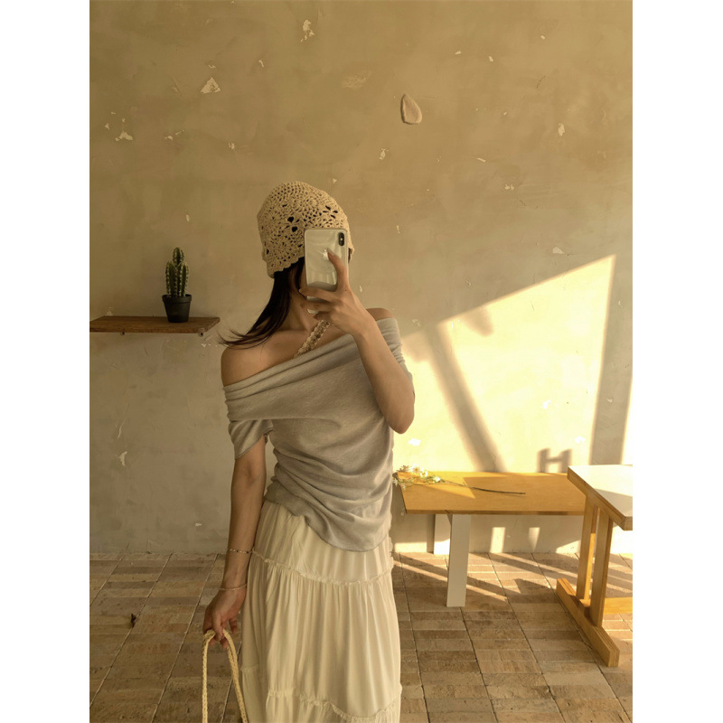 Реальный снимок, реальная цена, поддельная футболка из двух частей с короткими рукавами и кружевом для женщин, летняя футболка для похудения, сексуальный топ на одно плечо