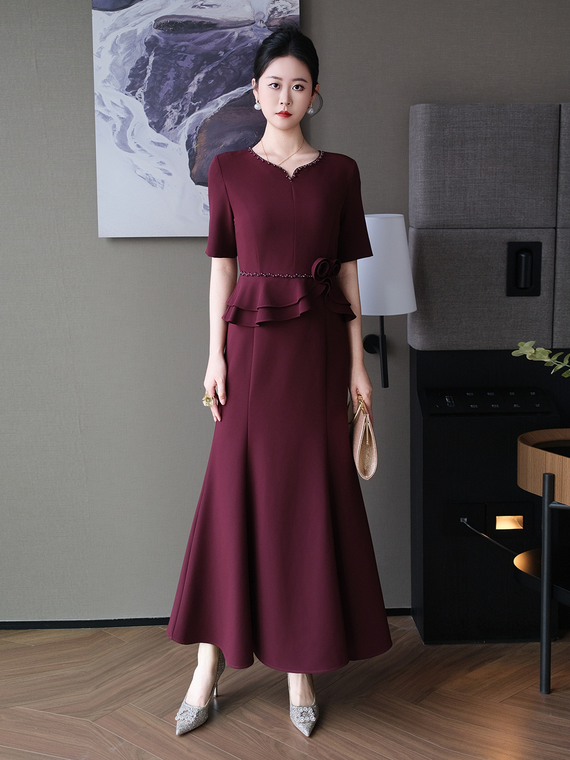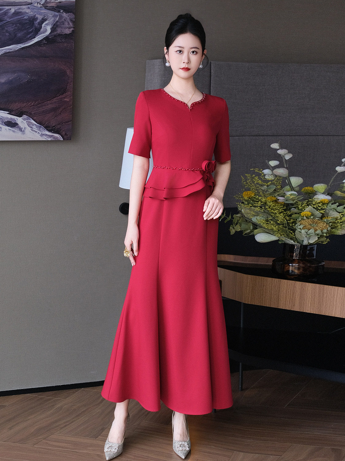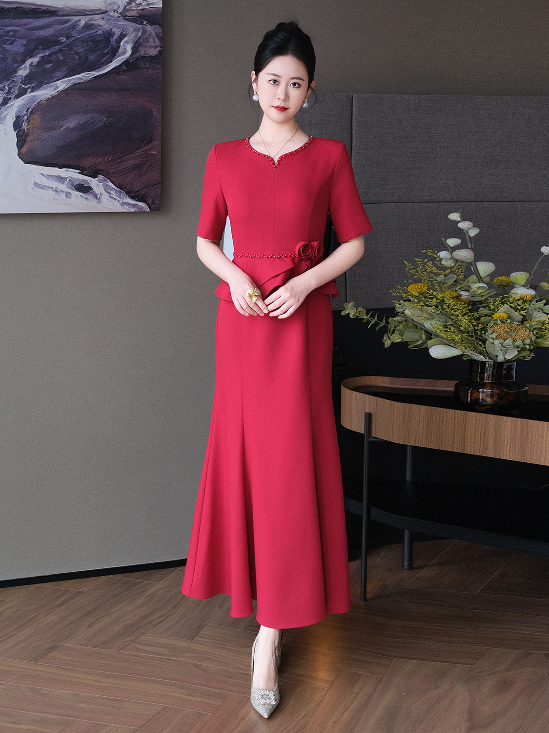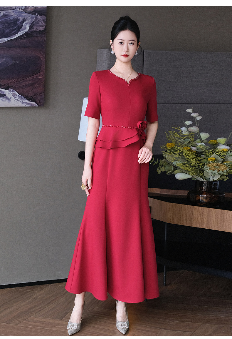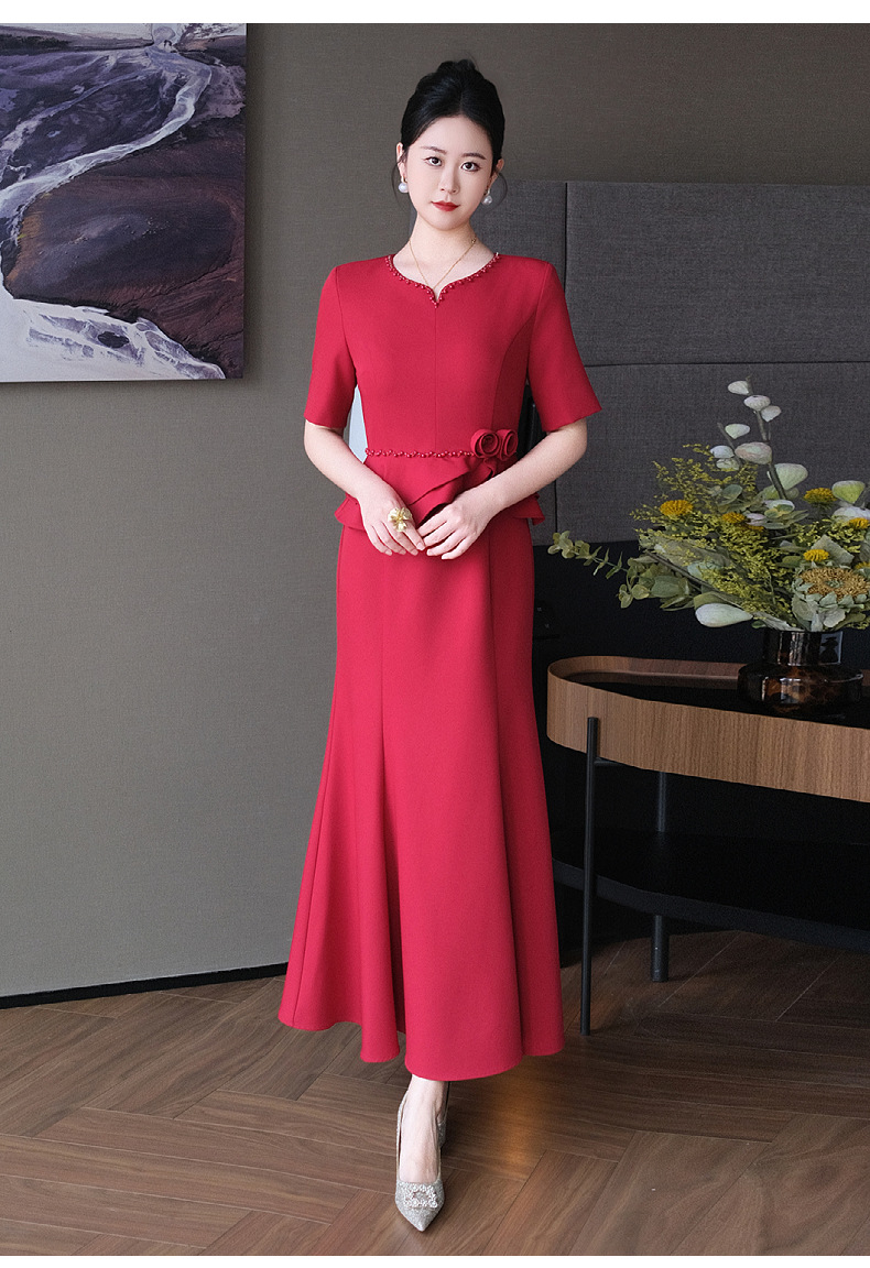 Новые розовые цветы высокого класса бисер светло-роскошное платье средней длины рыбий хвост свадебное атмосферное минималистское модное платье