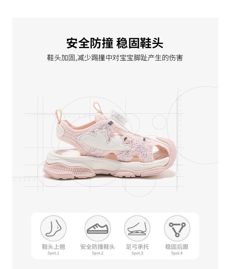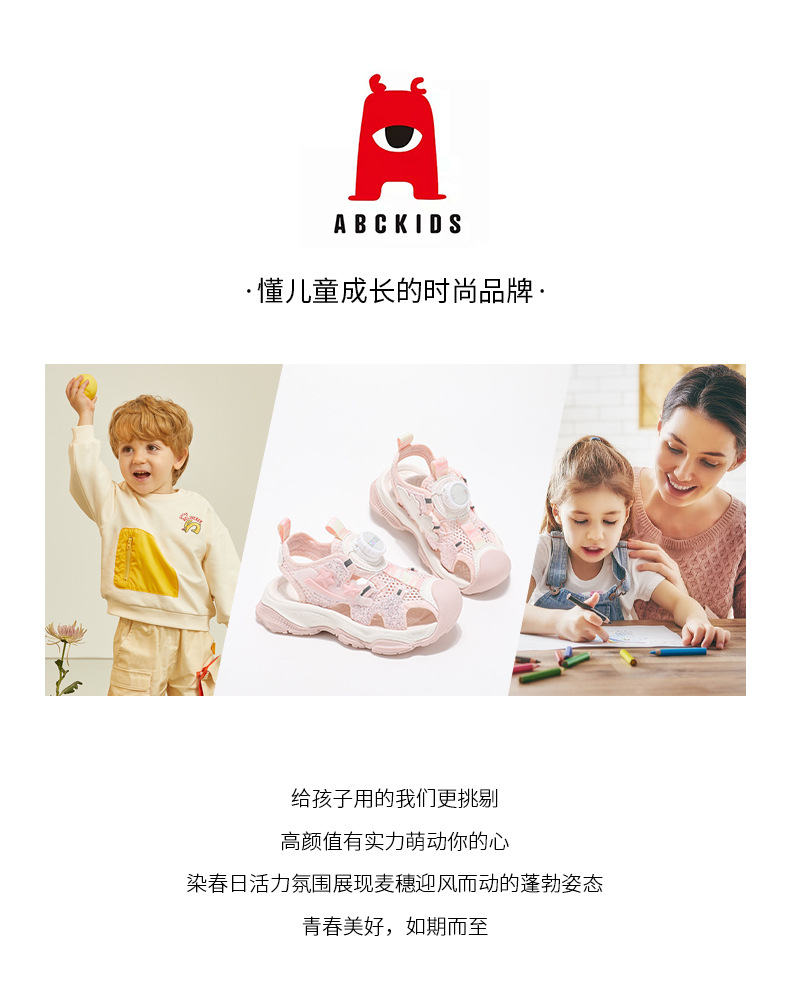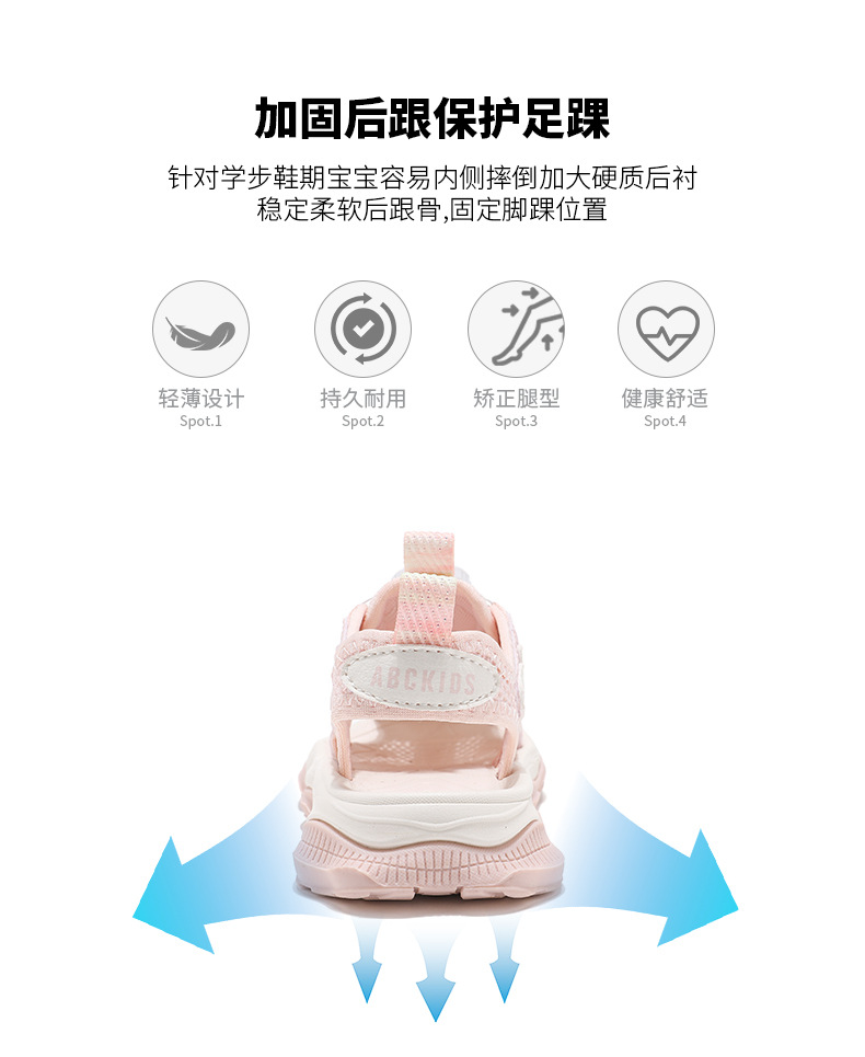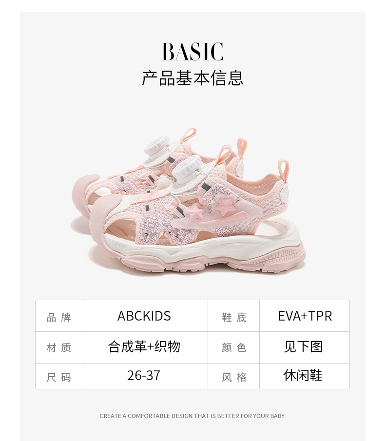 Детская обувь ABCkids 2025 летняя пряжка спортивная сандалия головка легкая противоскользящая девушка пляжная обувь прилив