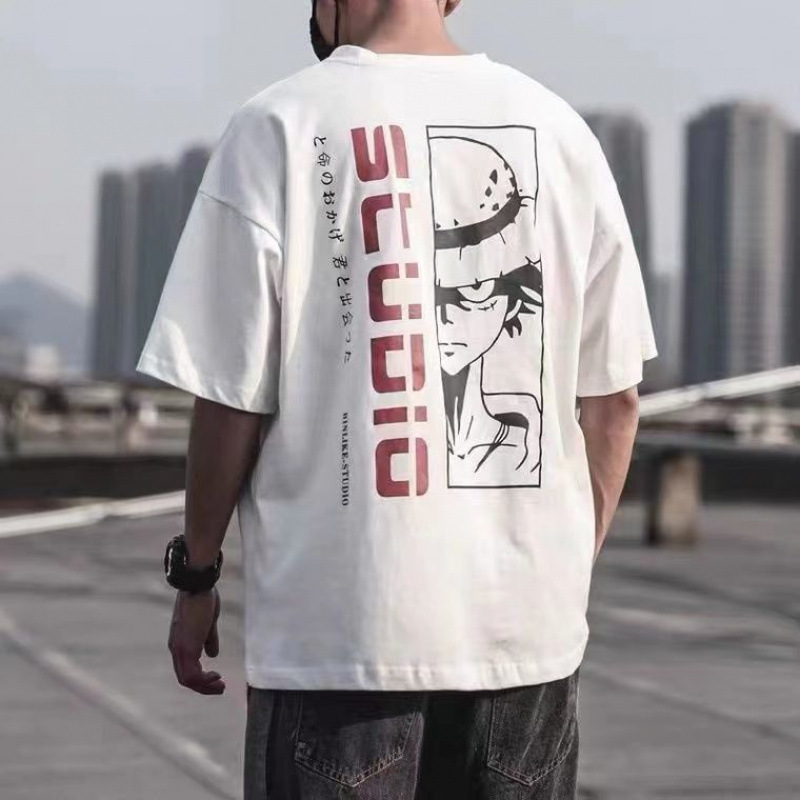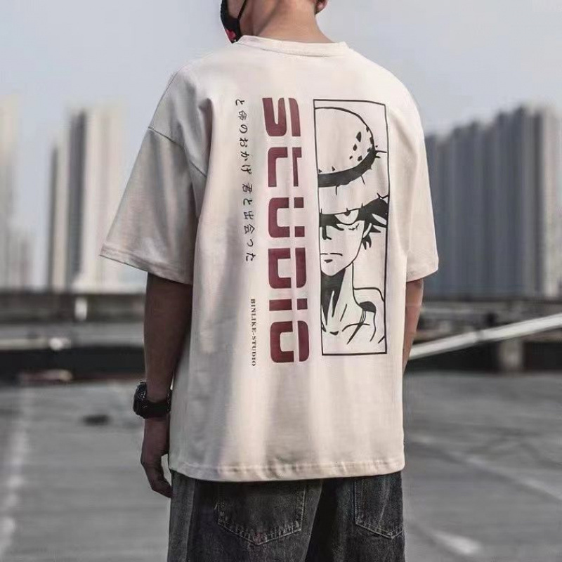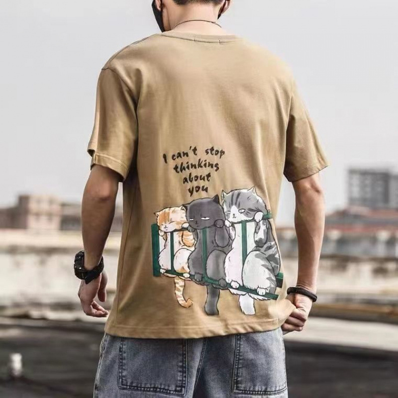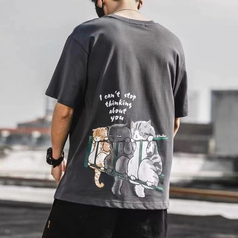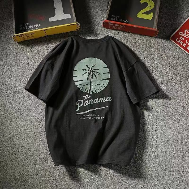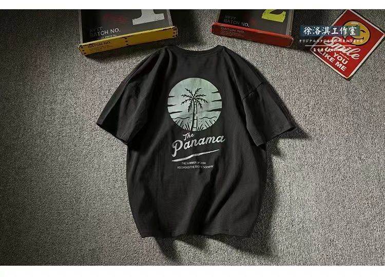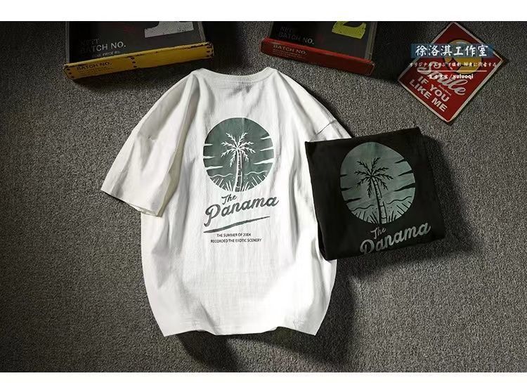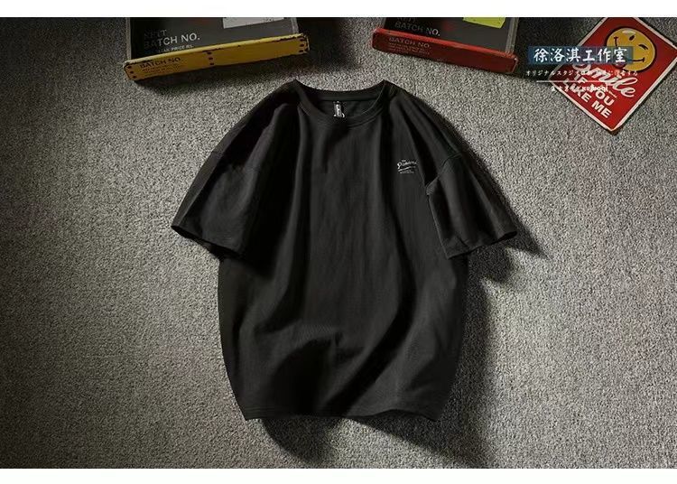 Новая хлопковая летняя повседневная мужская футболка с короткими рукавами в японском стиле, свободная универсальная модная рубашка с половиной рукавов в гонконгском стиле.