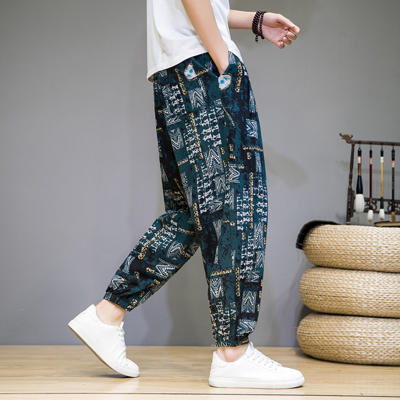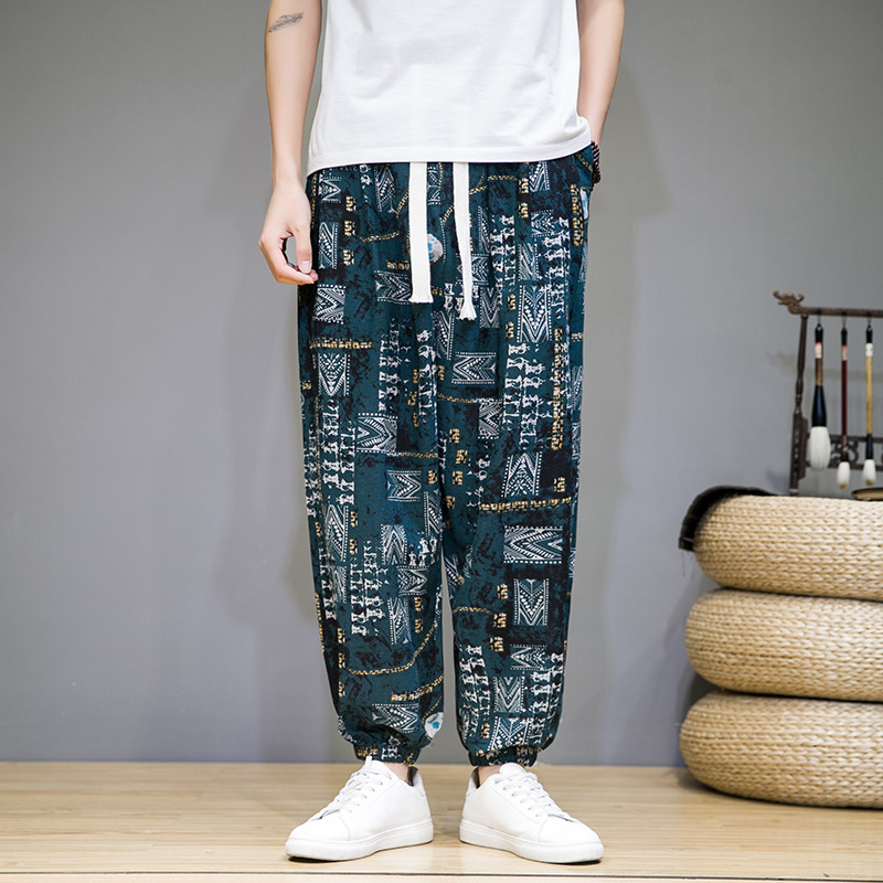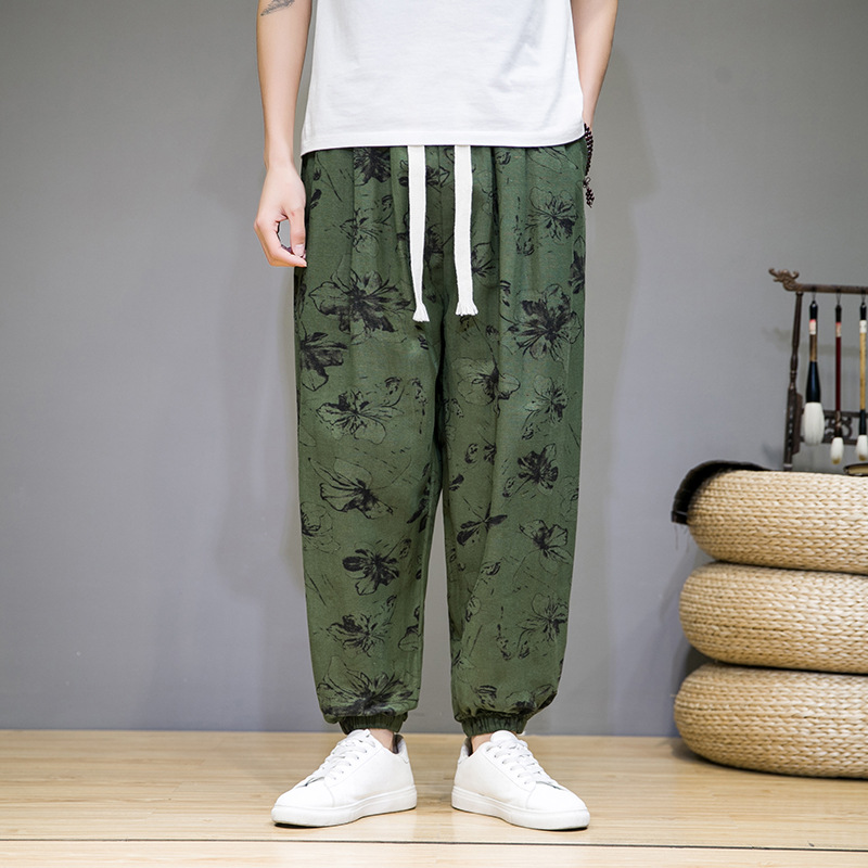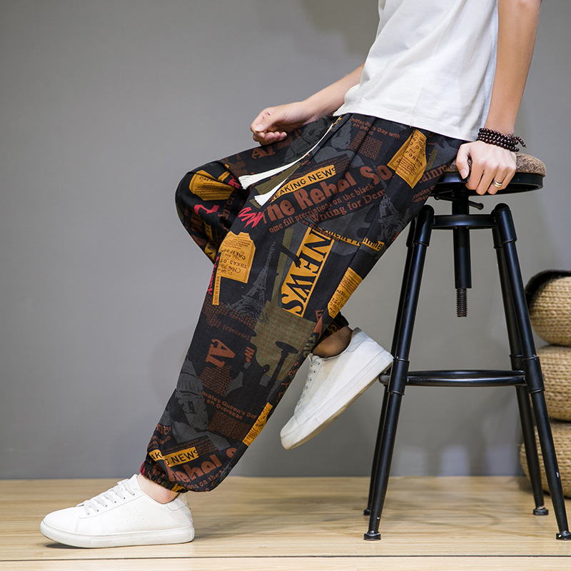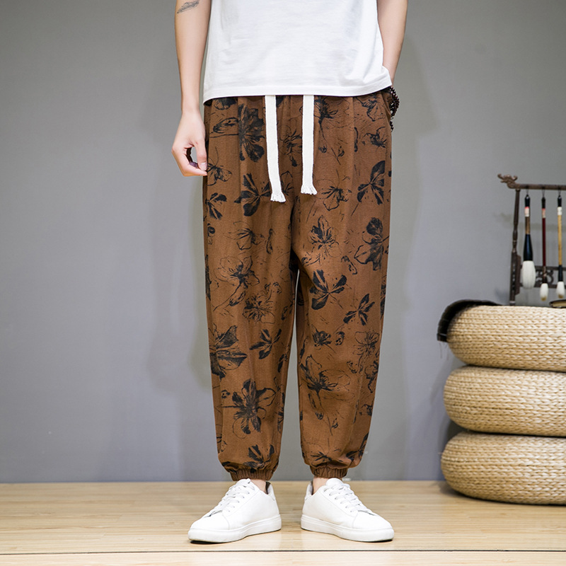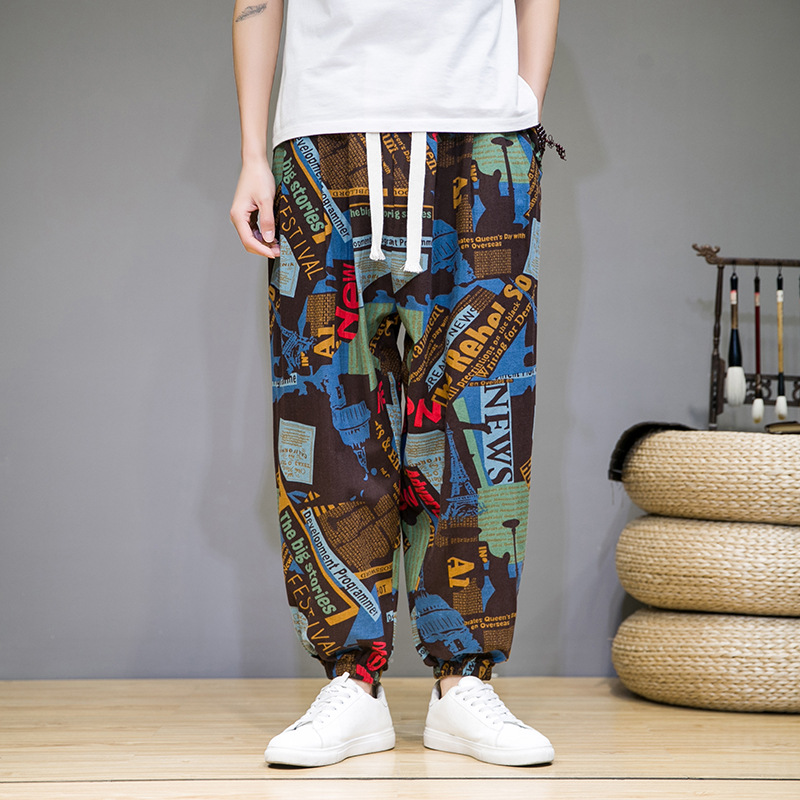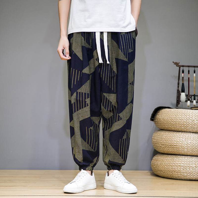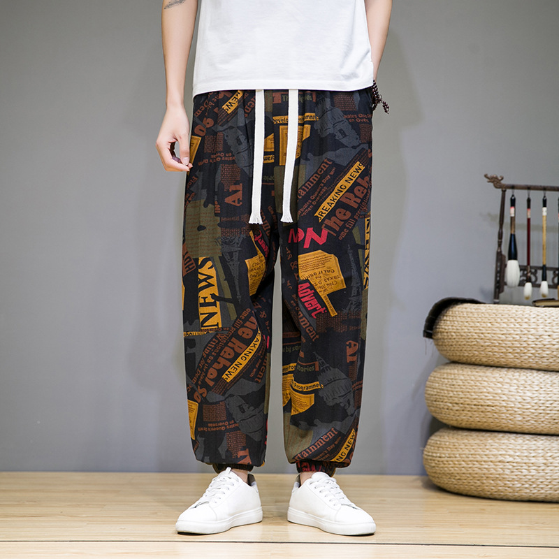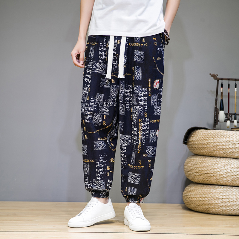 2025 модные китайские стильные новые тонкие дышащие брюки-шаровары из искусственного льна, повседневные, с широким шаговым швом, большие размеры, дропшиппинг