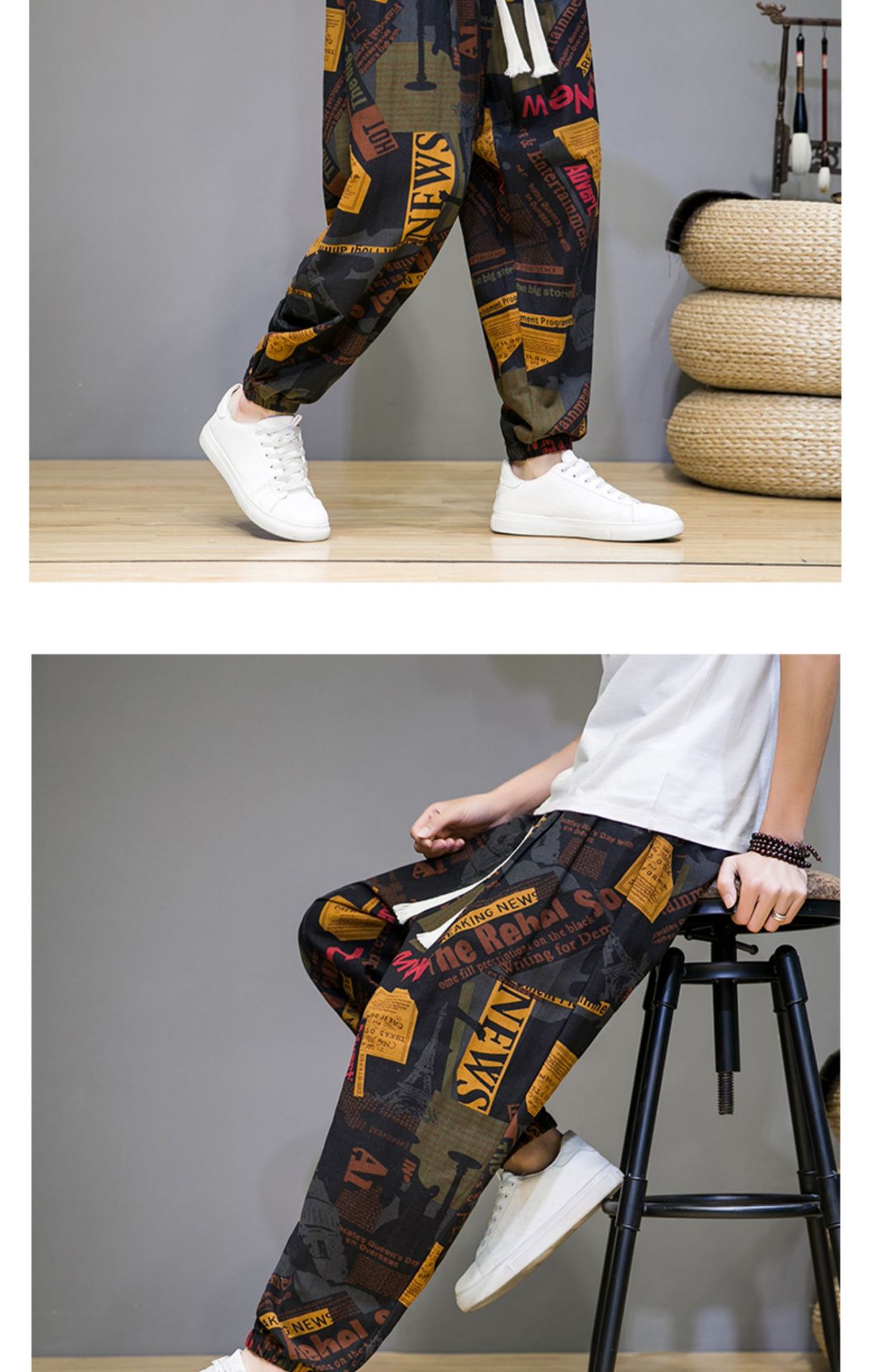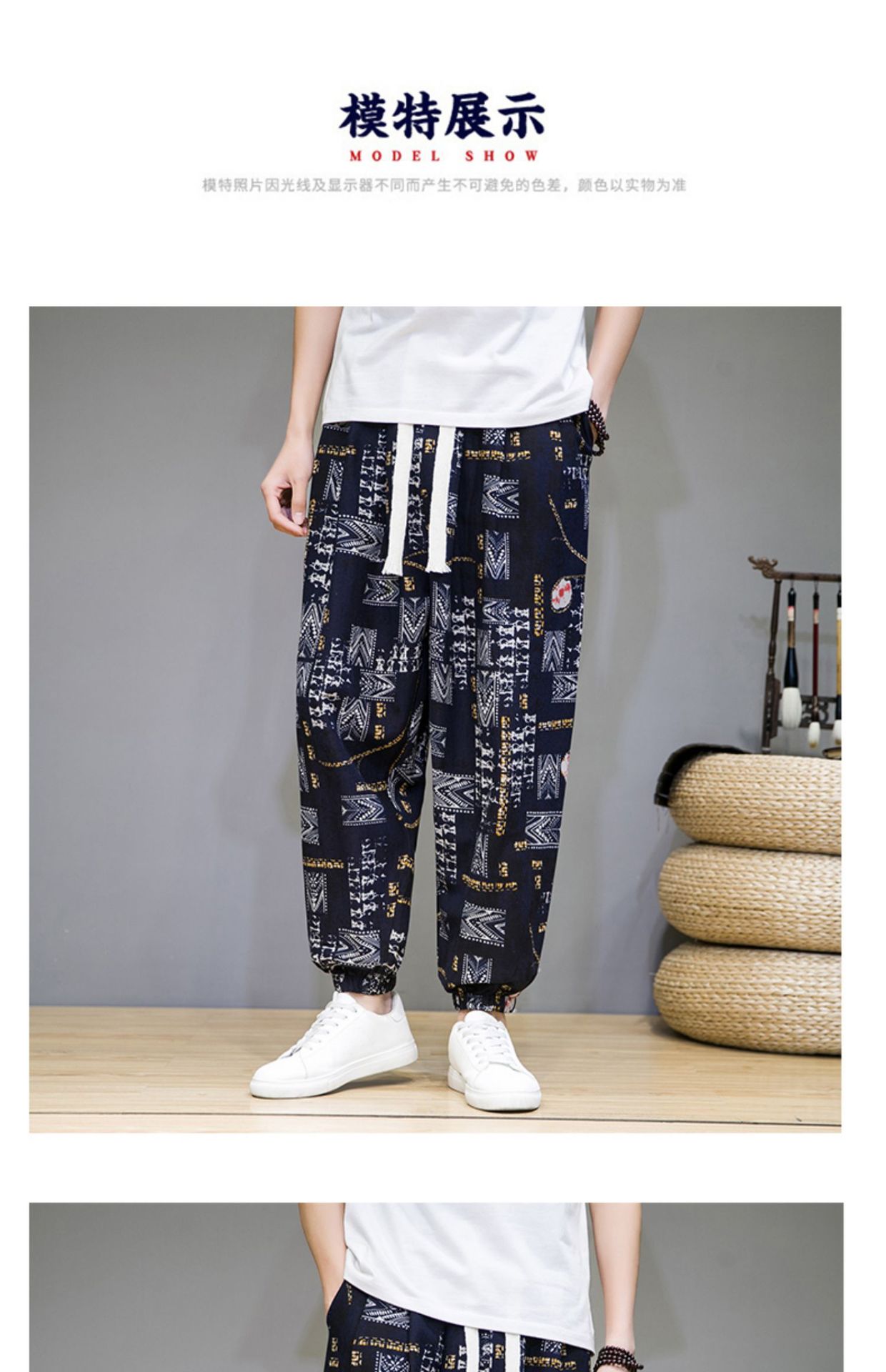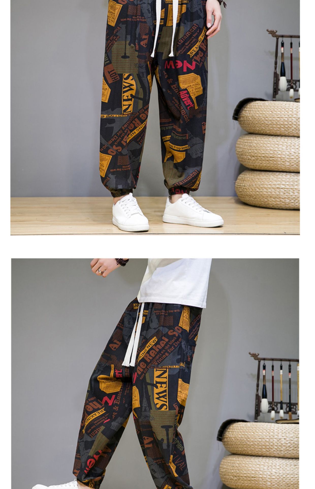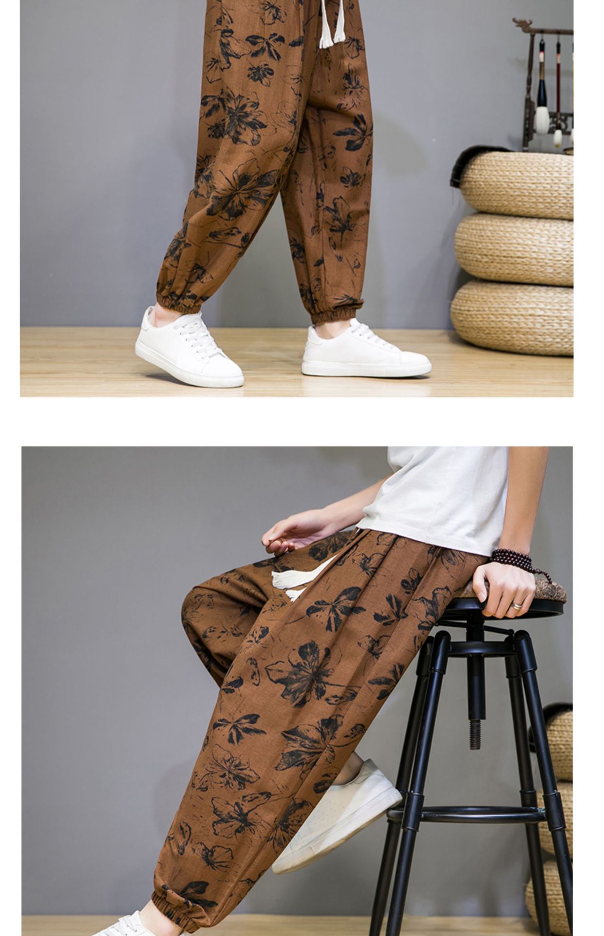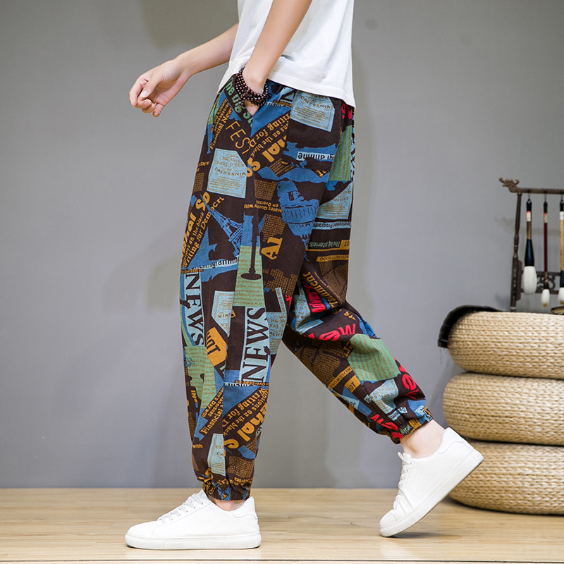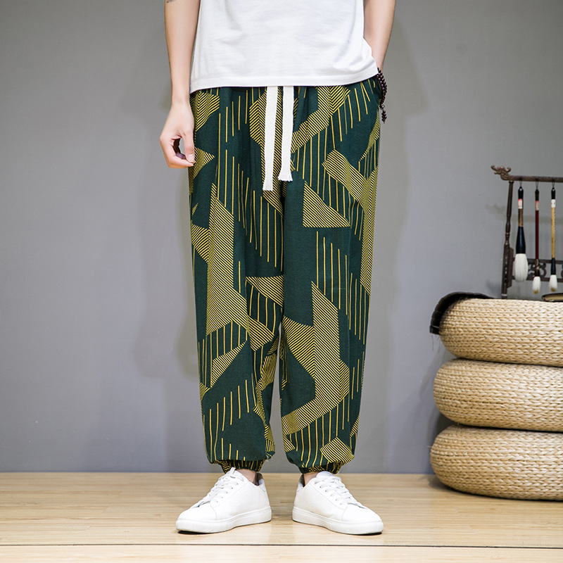 2025 модные китайские стильные новые тонкие дышащие брюки-шаровары из искусственного льна, повседневные, с широким шаговым швом, большие размеры, дропшиппинг