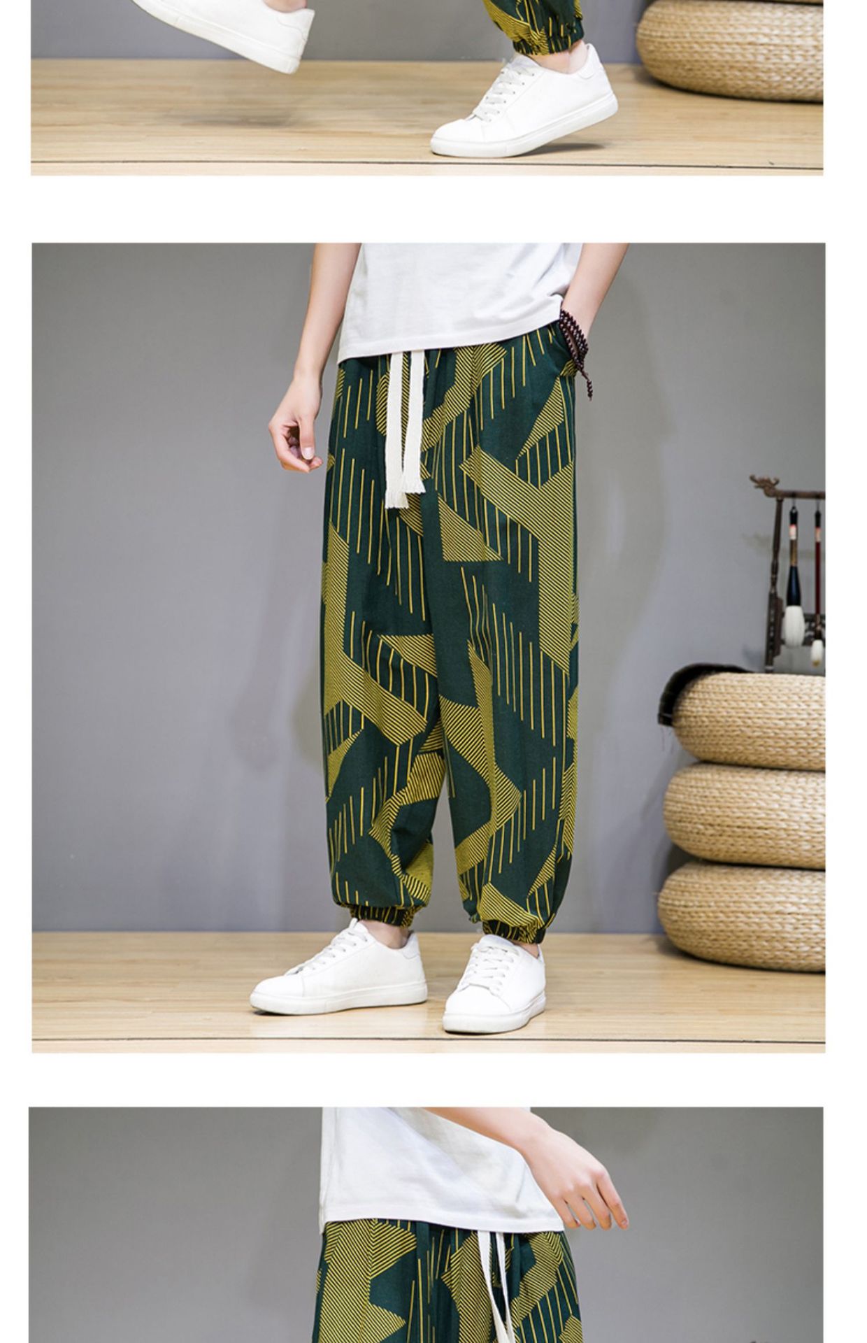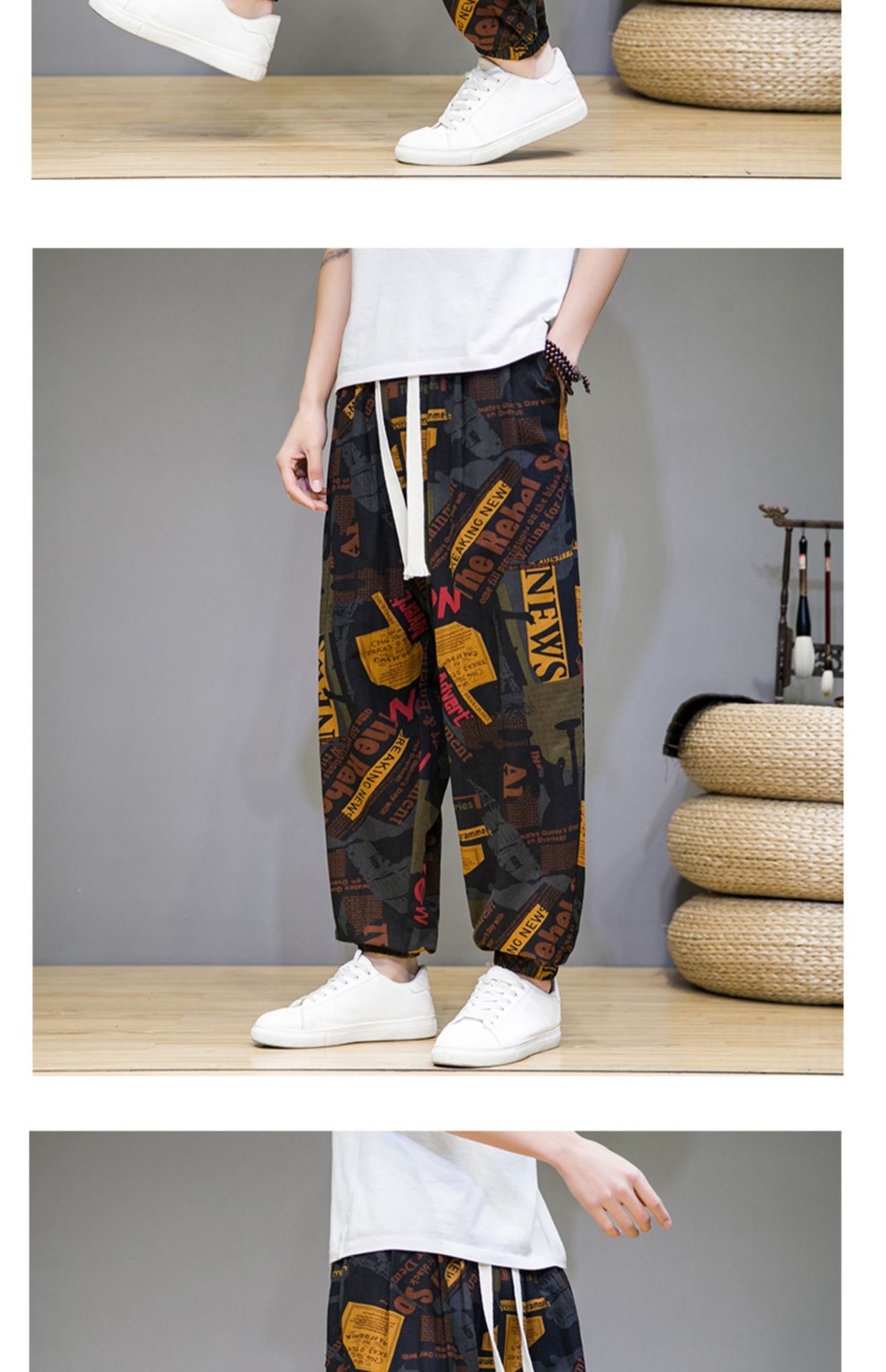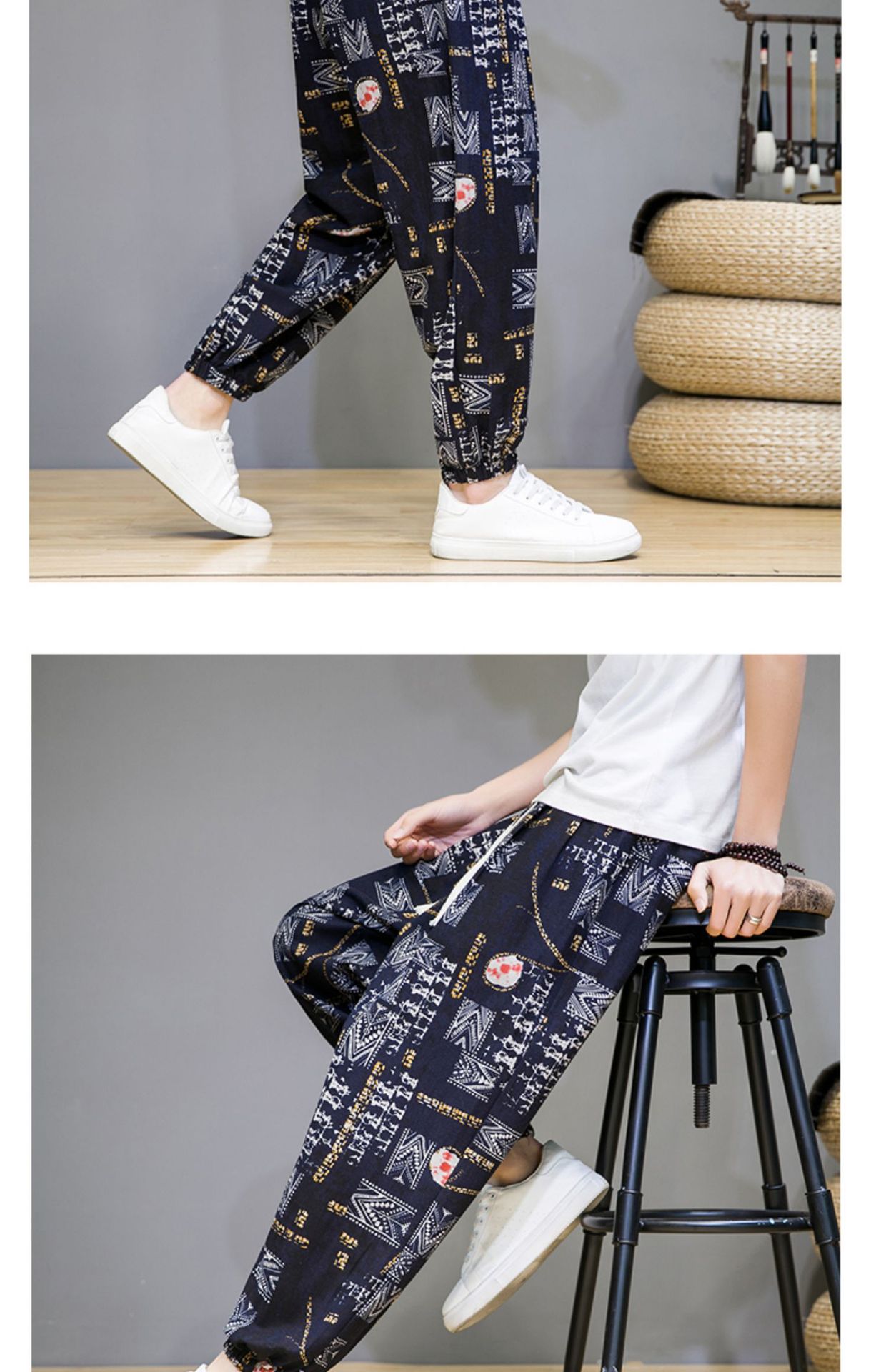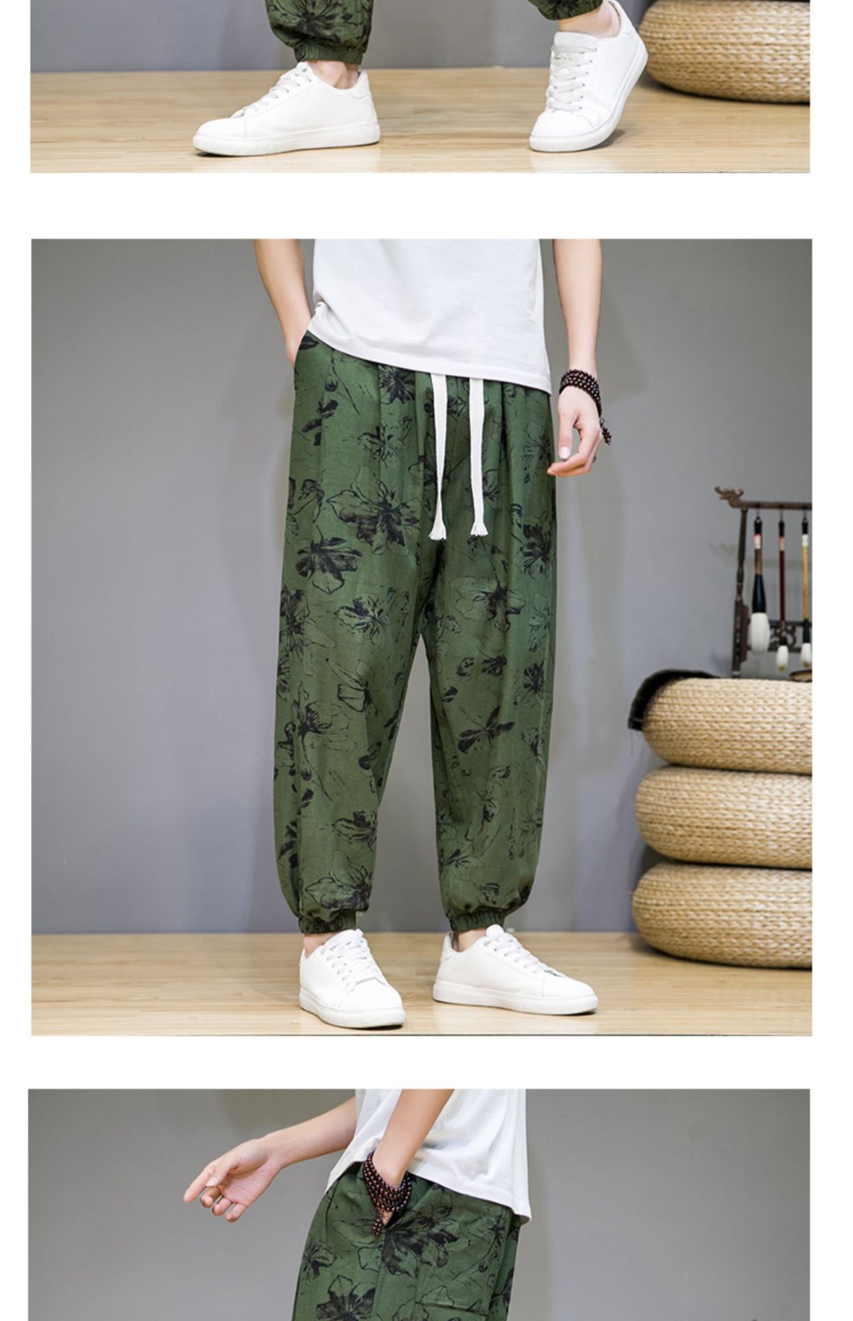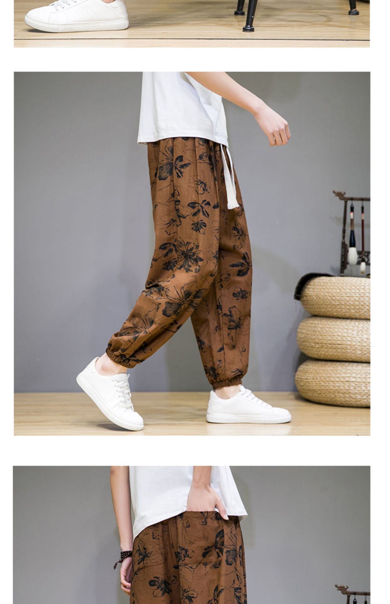 2025 модные китайские стильные новые тонкие дышащие брюки-шаровары из искусственного льна, повседневные, с широким шаговым швом, большие размеры, дропшиппинг