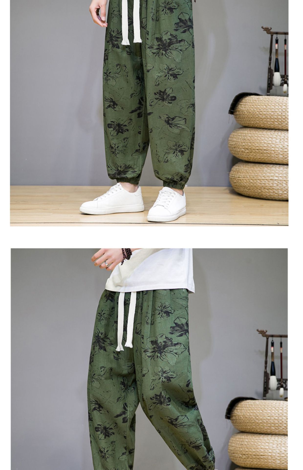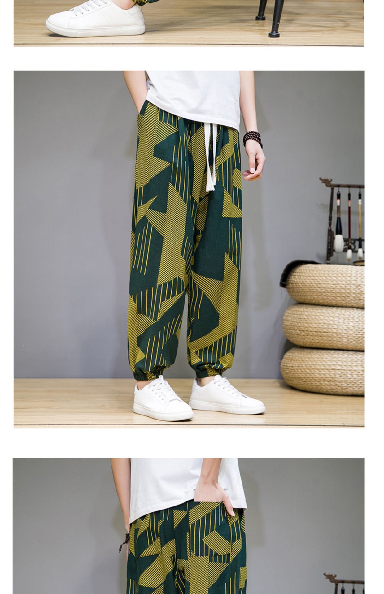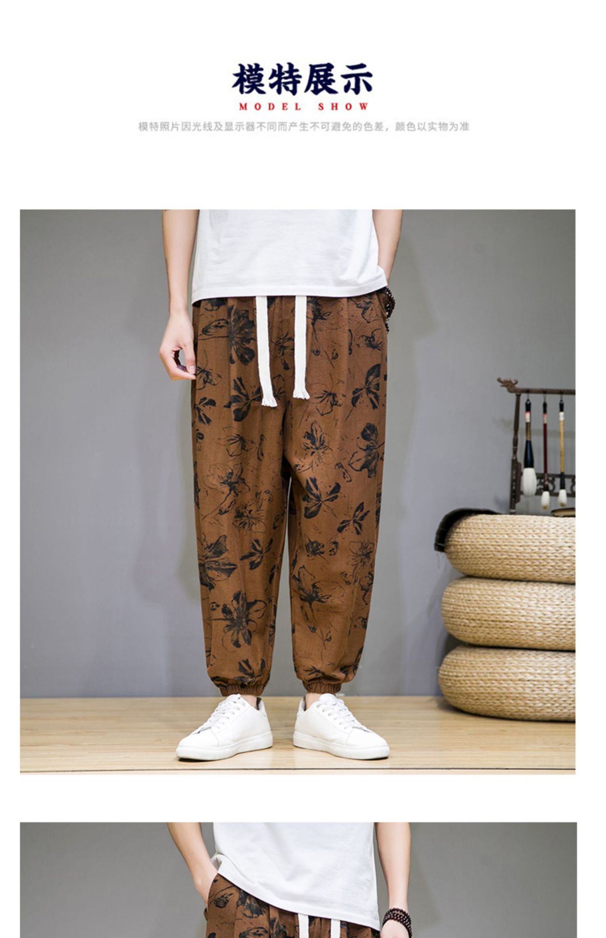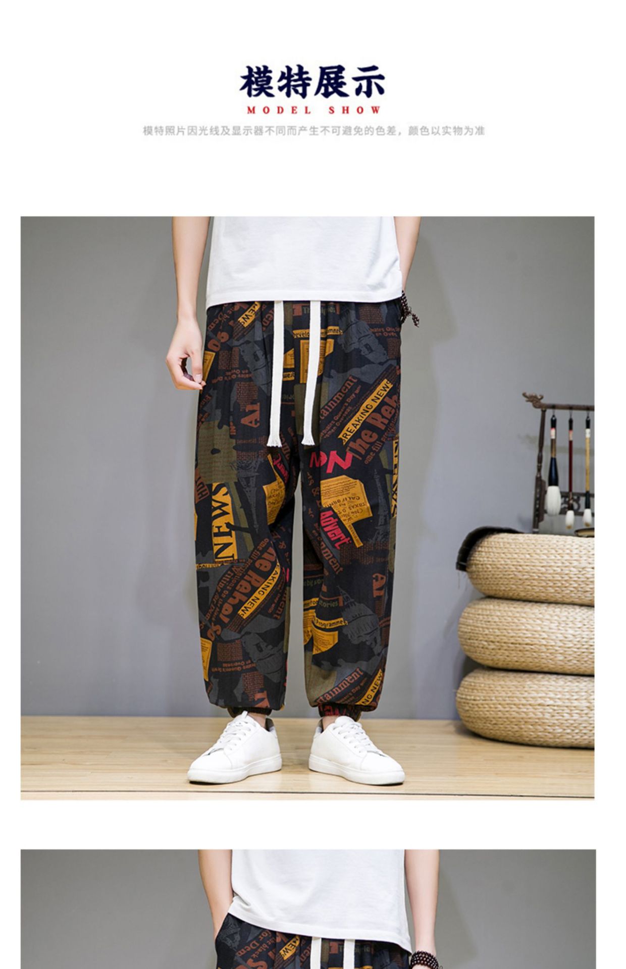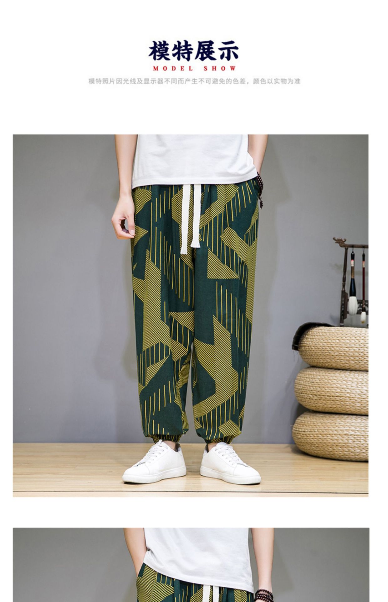2025 модные китайские стильные новые тонкие дышащие брюки-шаровары из искусственного льна, повседневные, с широким шаговым швом, большие размеры, дропшиппинг