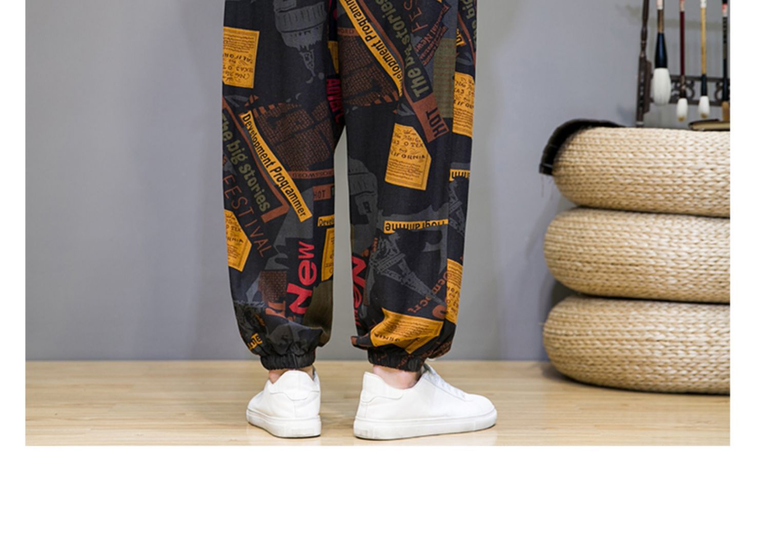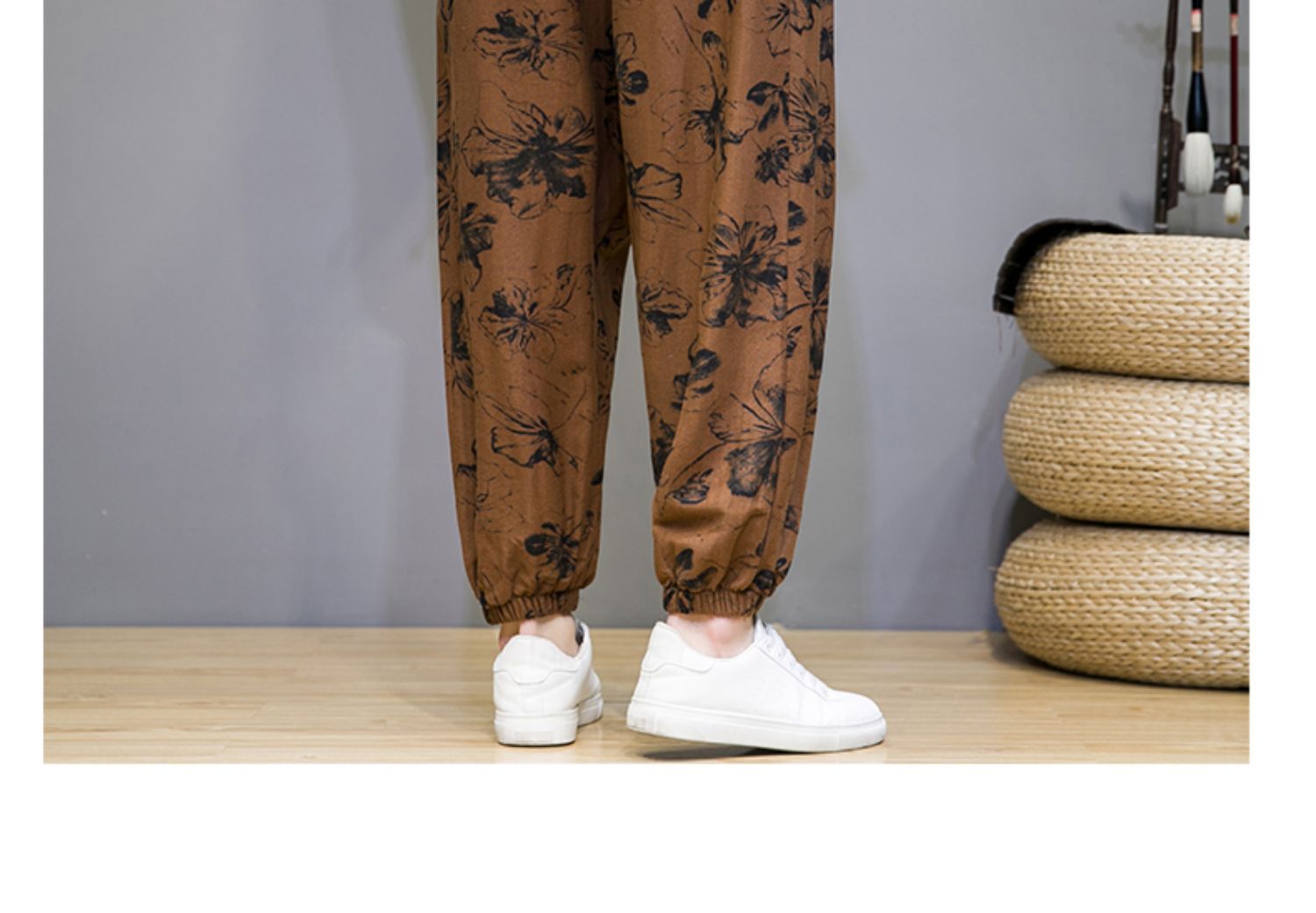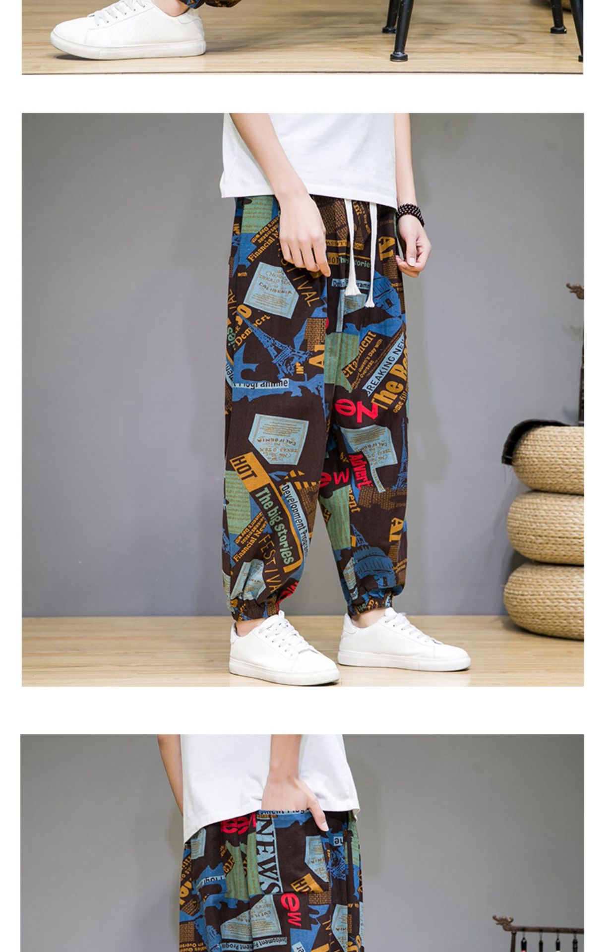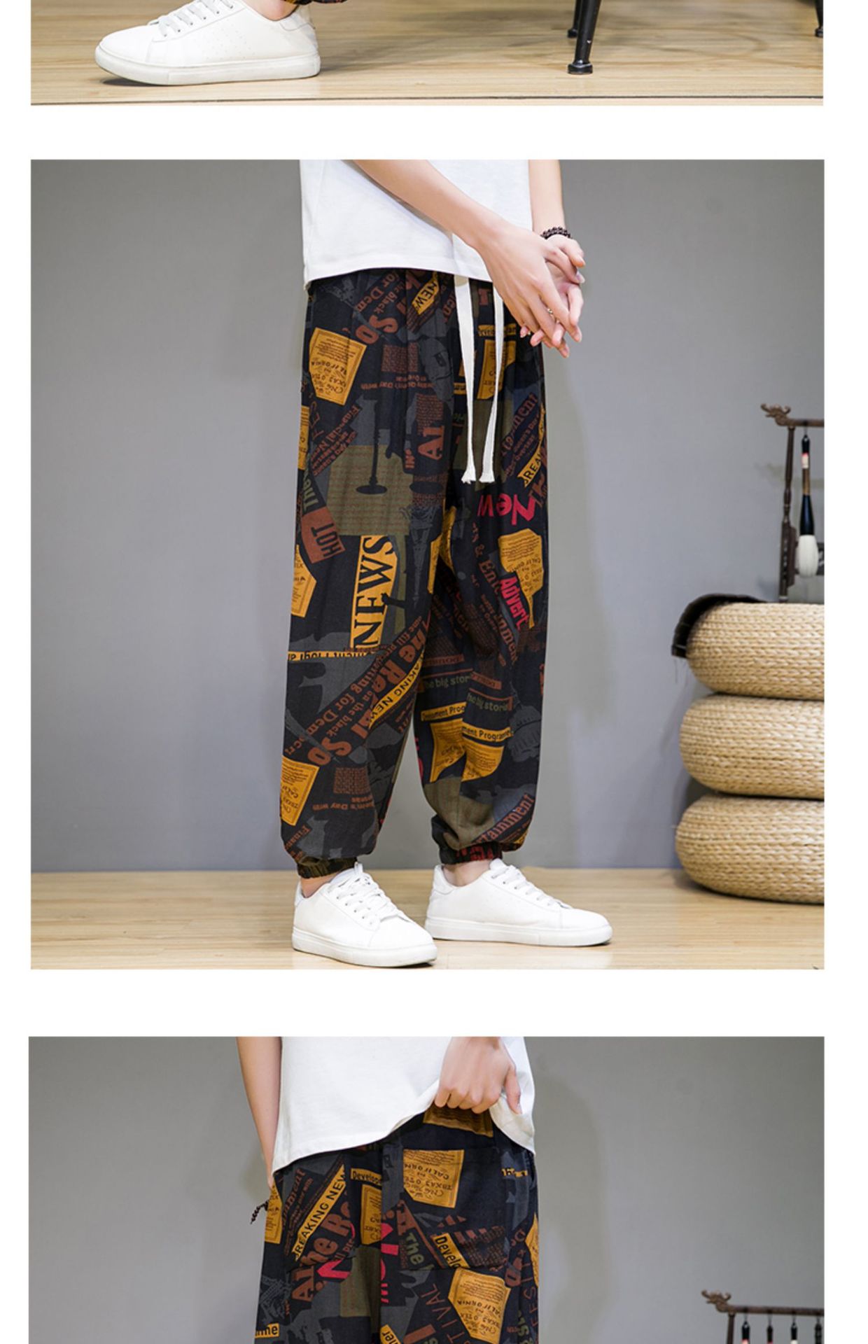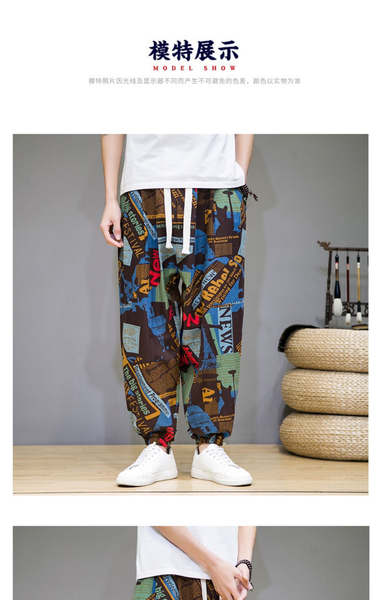 2025 модные китайские стильные новые тонкие дышащие брюки-шаровары из искусственного льна, повседневные, с широким шаговым швом, большие размеры, дропшиппинг