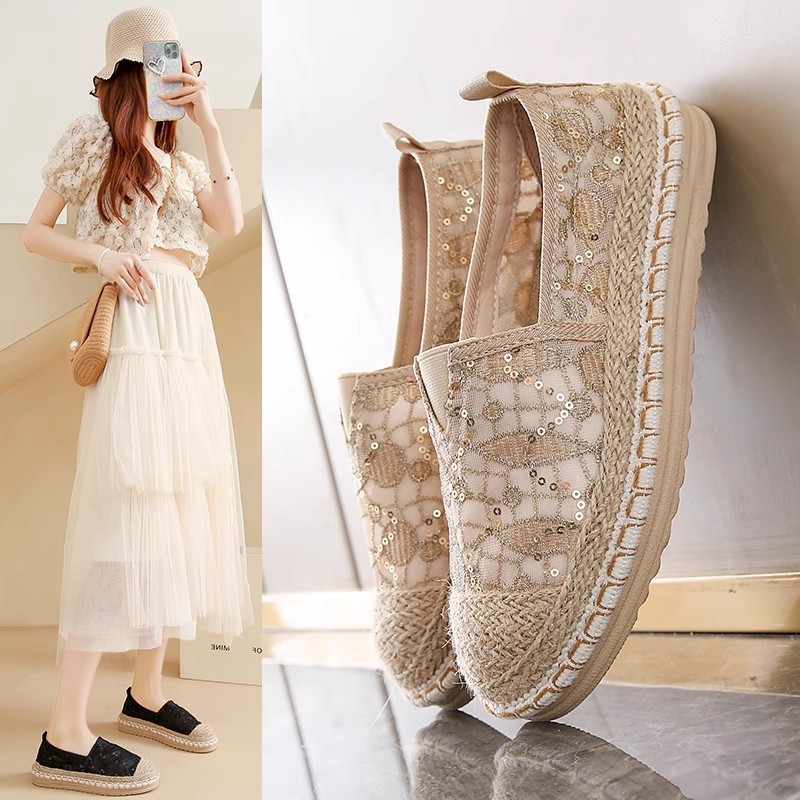 Xiaixiangfeng Рыбацкая обувь женская летняя 2025 новая педаль мягкая подошва старая пекинская тканевая обувь сетка дышащая плоская обувь