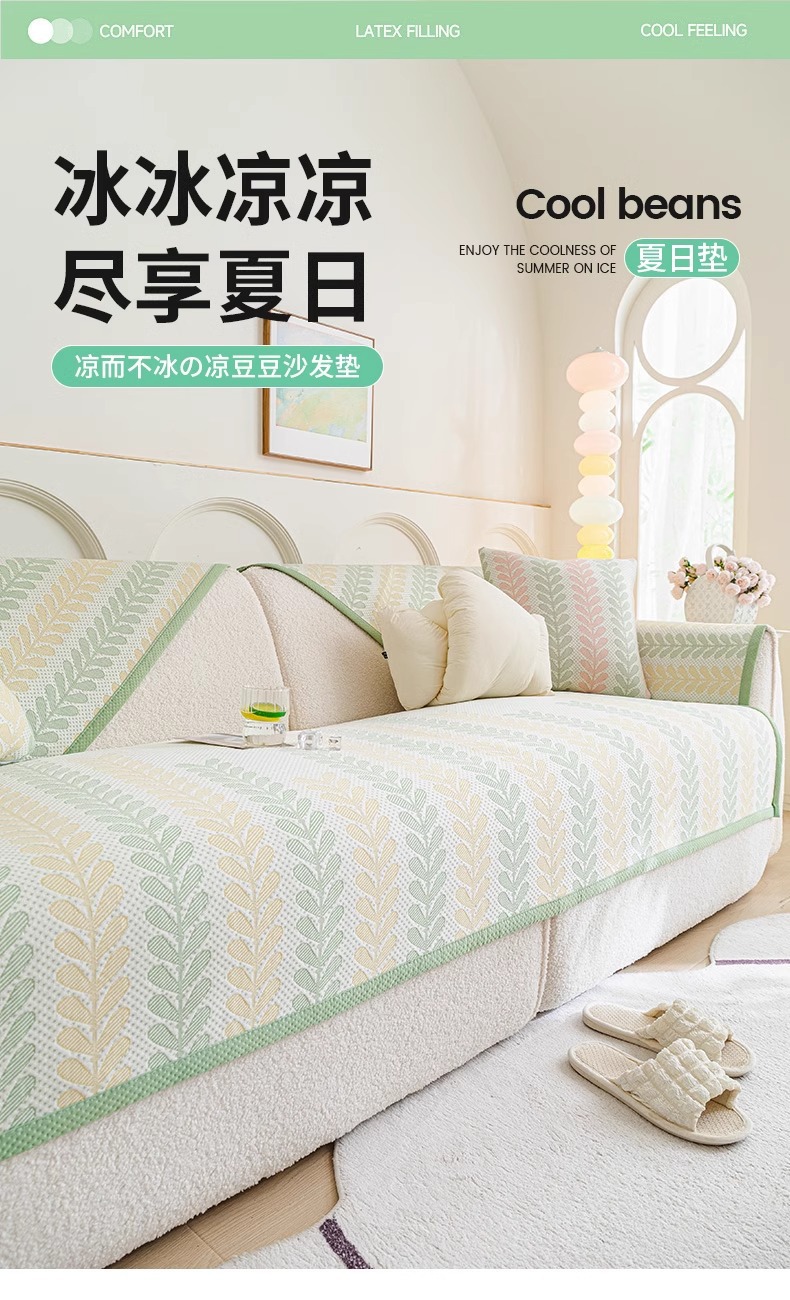 Охлаждающая подушка для дивана из ледяного шелка Cool Doudou, новинка лета 2025 года, с фиксированным противоскользящим покрытием, защитой от кошачьих царапин и прямым краем.