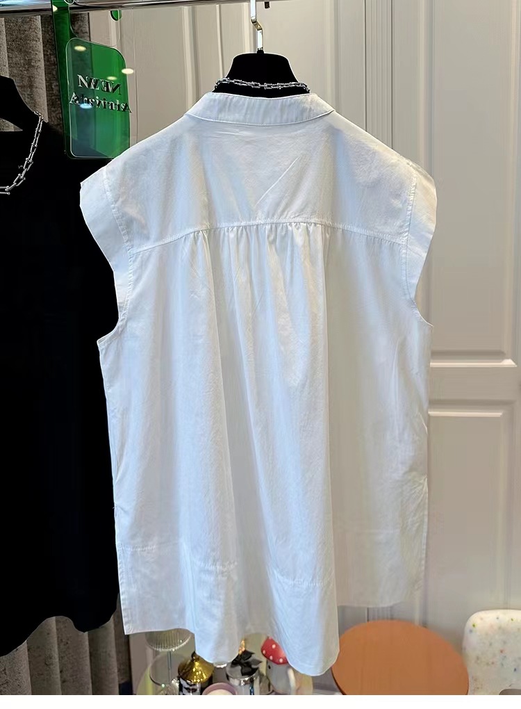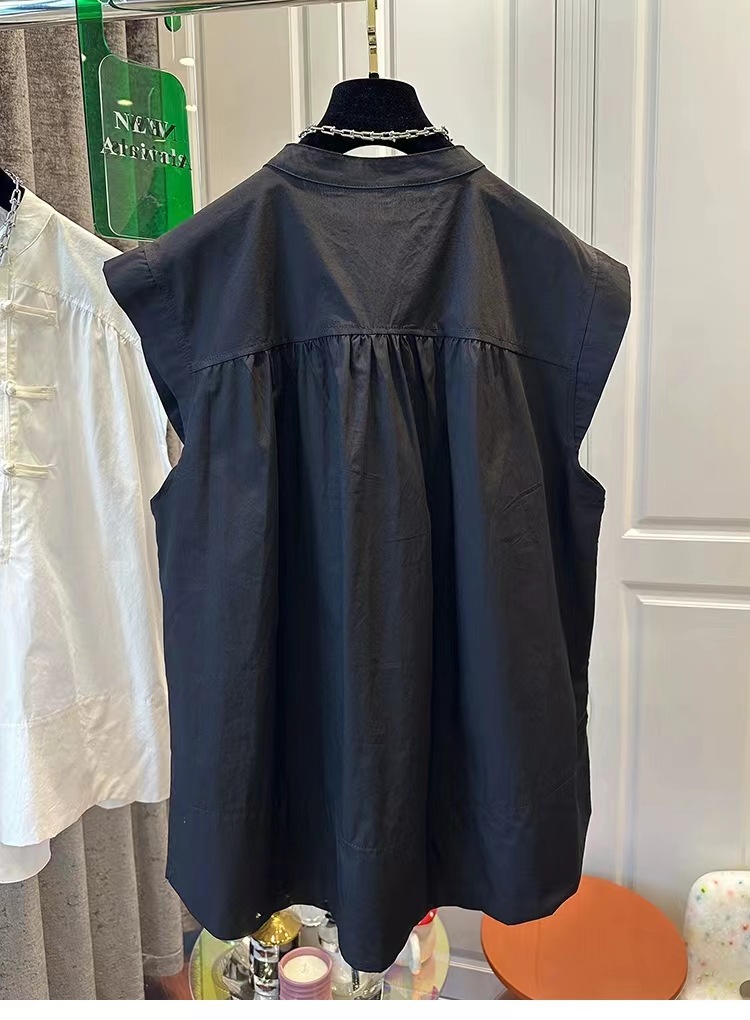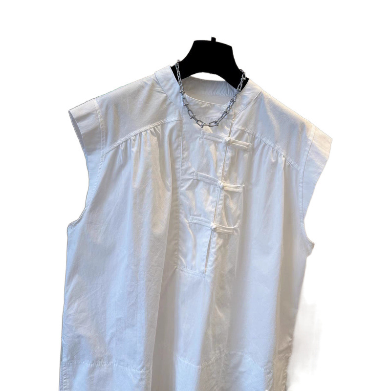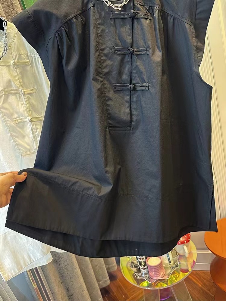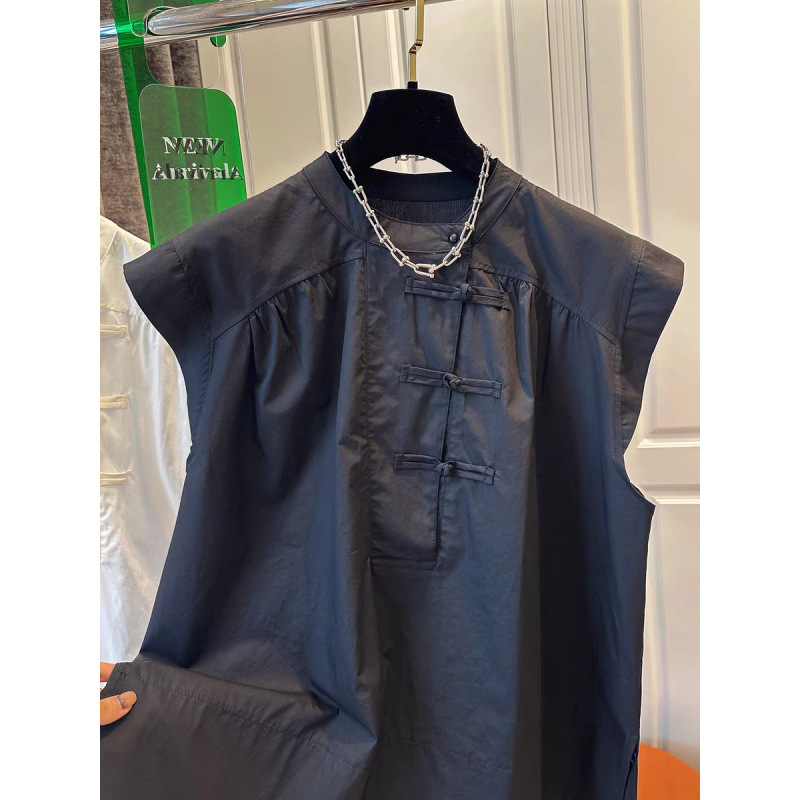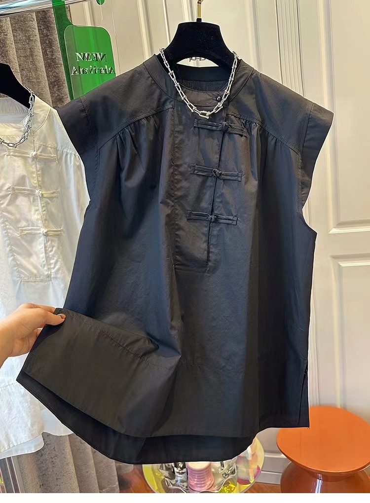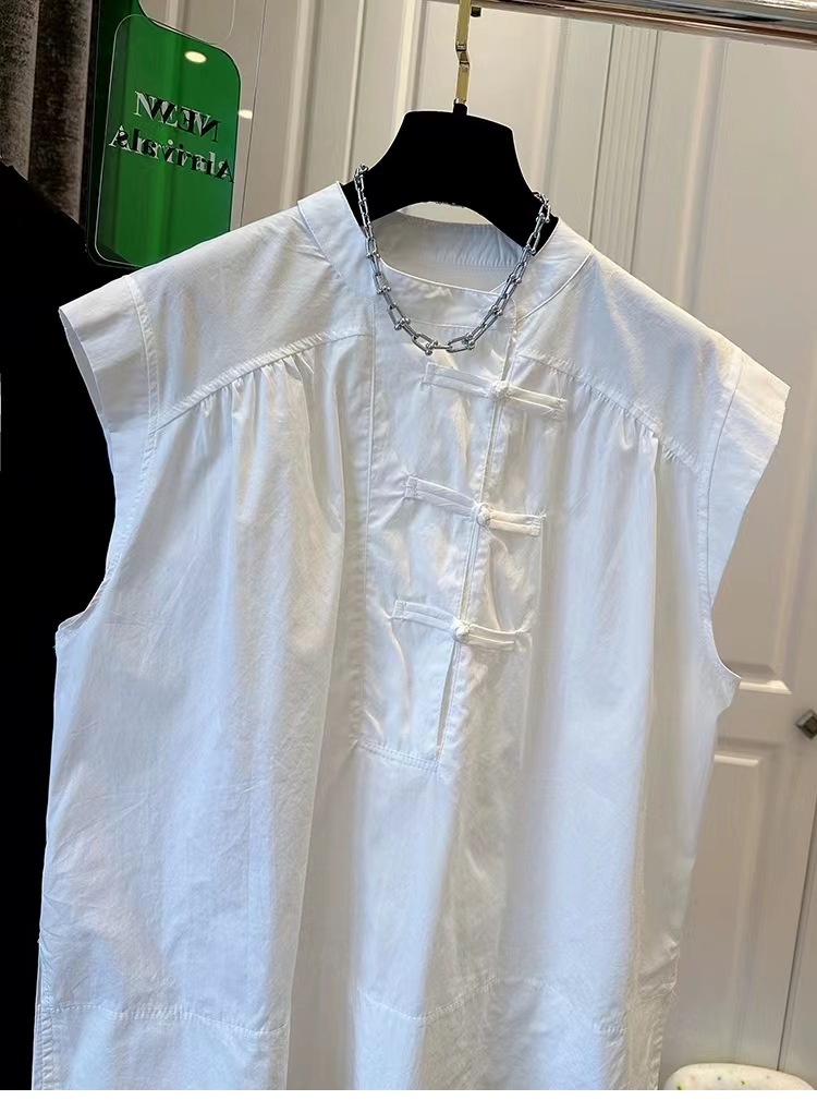 Новый китайский стиль национальный ветер пуговицы белый маленький летающий рукав рубашка женская рубашка свободная без рукавов ретро круглый воротник 2025 летний новый стиль