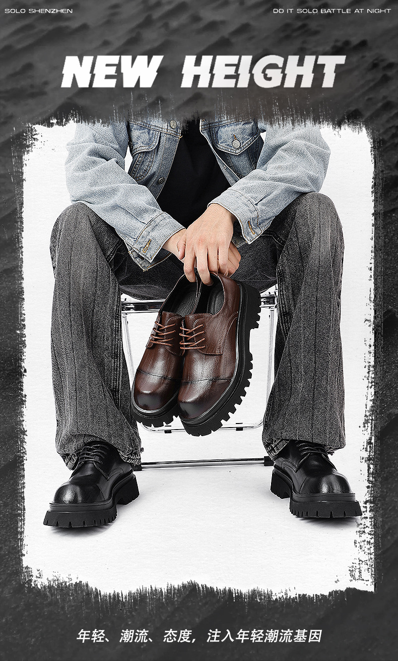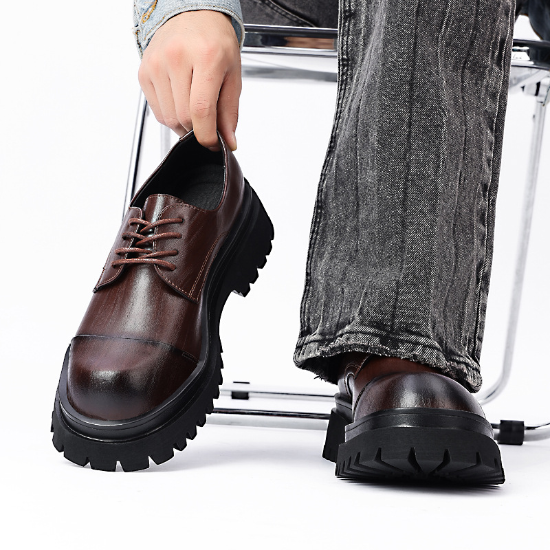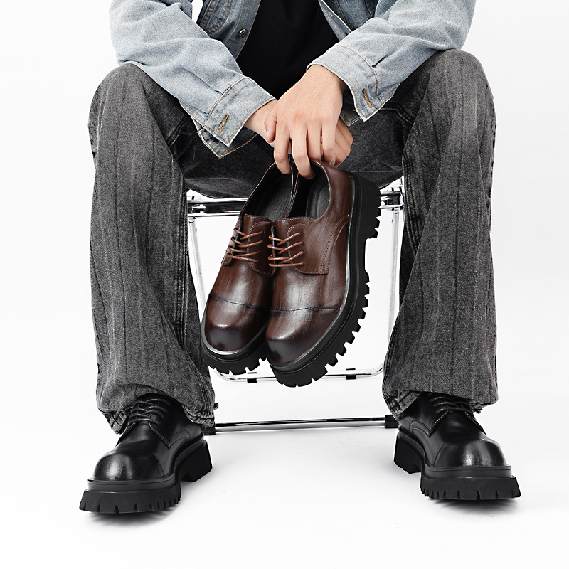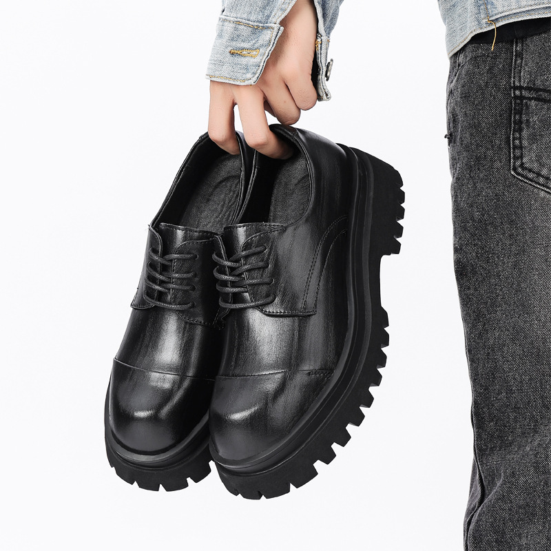 Мужские повседневные туфли дерби на толстой подошве, черные формальные свадебные туфли для жениха в британском стиле, увеличивающие рост, 8021.