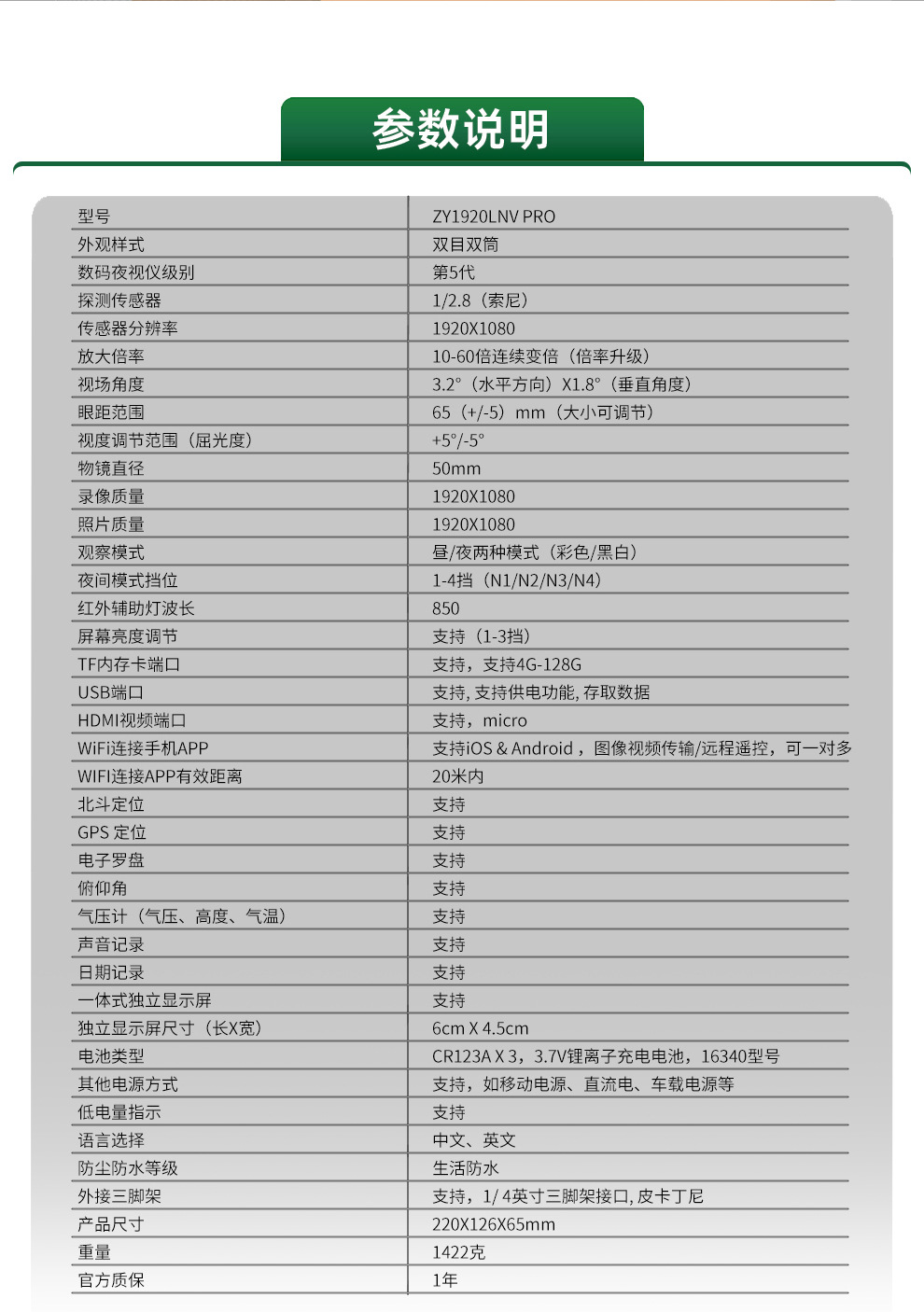 Zhongyang 60x бинокулярный HD цифровой инфракрасный дальномер с поддержкой WIFI фото-видео устройство ночного видения