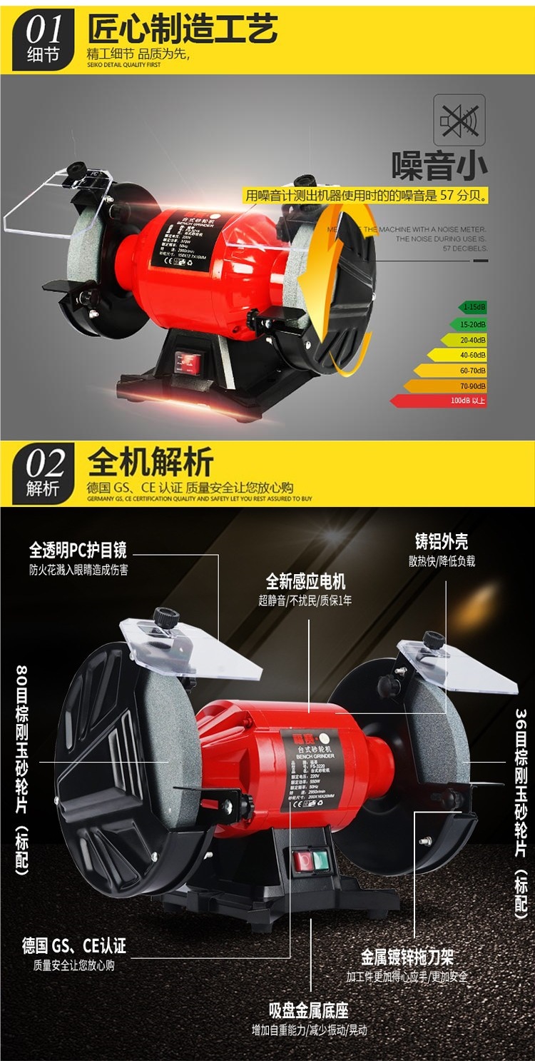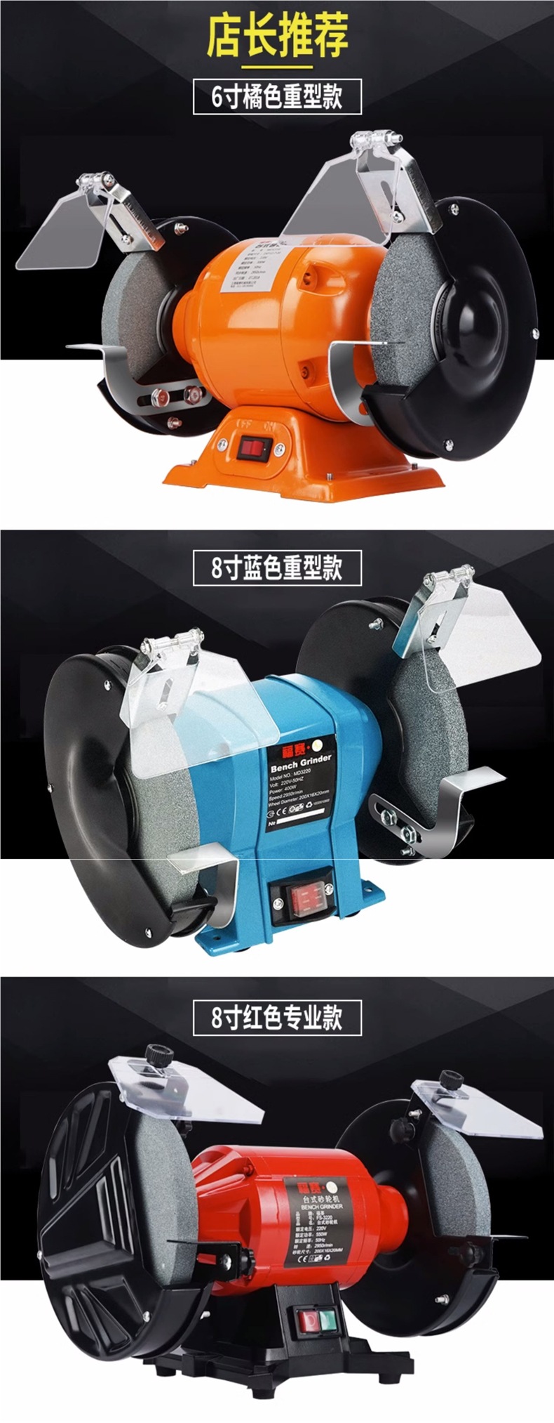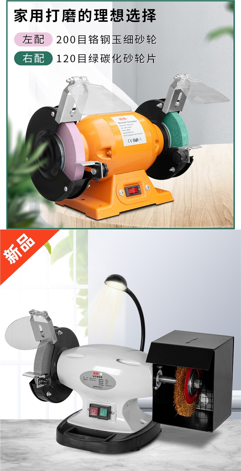 6 дюймов 150 мм (220 В 200 Вт); 6 дюймов 150 мм (мелкий шлифовальный круг из белого стального нефрита с сеткой 200); 5inch Сверхмощный (220 В, 200 Вт); 6inch Сверхмощный (220 В, 300 Вт); Профессиональная модель 5inch (тонкий шлифовальный круг из белого стального нефрита с сеткой 200); Профессиональная модель 6inch (диск из хромированной стали с измельчением нефрита 200 меш); 5inch синяя модель 125мм (220В170Вт); 6inch Портативная модель (220В250Вт); 6inch со светодиодной подсветкой (220В350Вт); 6inch со светодиодной подсветкой и гибким валом; 6inch со световым гибким стержнем и набором шлифовальных головок из 100 предметов.; 6inch со световым гибким стержнем и двумя шлифовальными головками.; 6inch Портативная модель (тонкий шлифовальный круг из белого стального нефрита с сеткой 200); 5inch сверхмощное оборудование (шлифовальный круг 200 меш, 120 меш); 8inch синяя кофемолка (400 Вт); 8inch красная профессиональная кофемолка (550 Вт); 6inch Экспортная мясорубка Big Sale (350 Вт), чугунный корпус; 6inch Экспортная шлифовальная машина Big Sale (мелкий шлифовальный круг из белого стального нефрита 200 меш); Многофункциональный шлифовальный станок с кругом и лентой (350 Вт); Многофункциональная шлифовальная машина (шлифовальный диск из белого стального нефрита с сеткой 200); Шлифовальный станок с ремнем и светодиодной подсветкой; Шлифовальный круг и ленточный станок со светодиодной подсветкой (шлифовальный диск из белого стального нефрита с сеткой 200); Профессиональный шлифовальный станок с лентой и раковиной со светодиодной подсветкой.; Профессиональный шлифовальный круг и ленточный станок с раковиной и светодиодной подсветкой (диск шлифовального круга из белого корунда 200 меш); Новое поступление шлифовальной машины с проволочным колесом и светодиодной подсветкой
