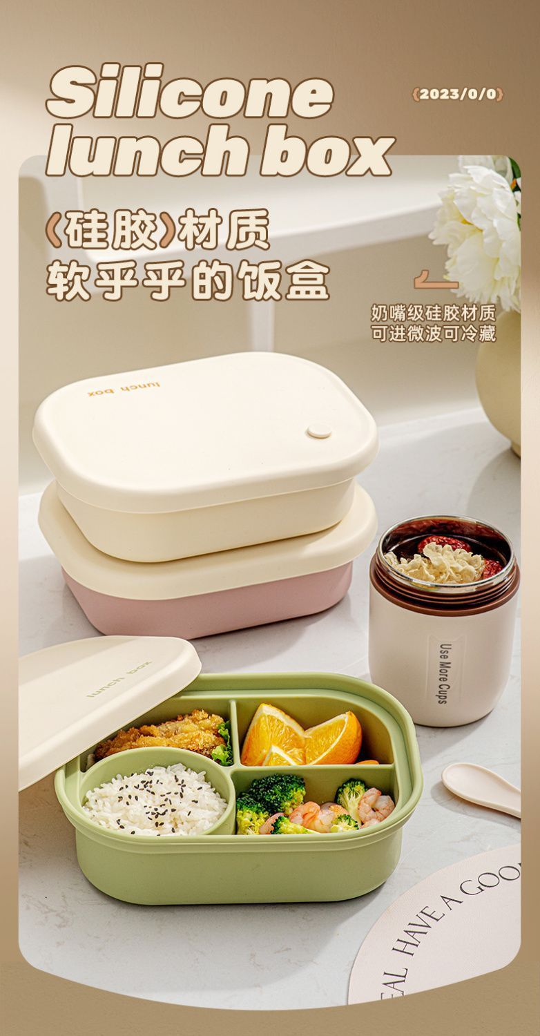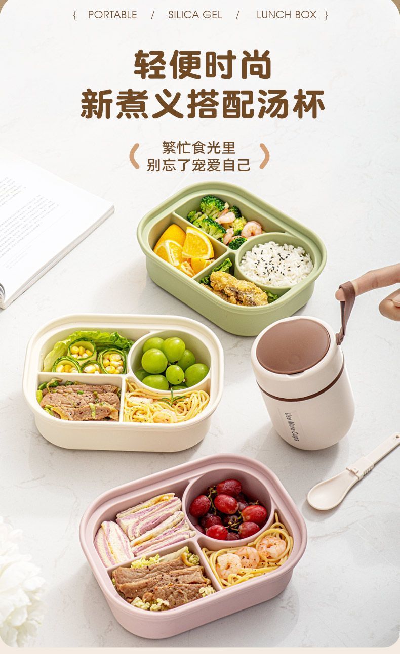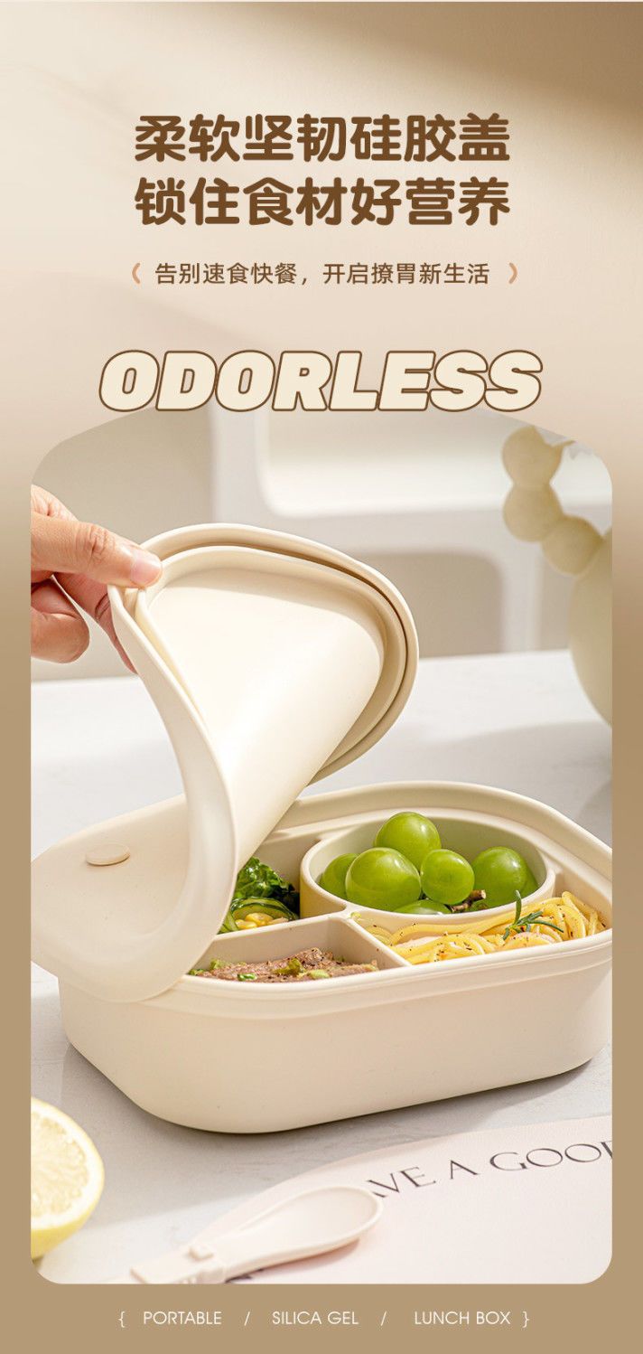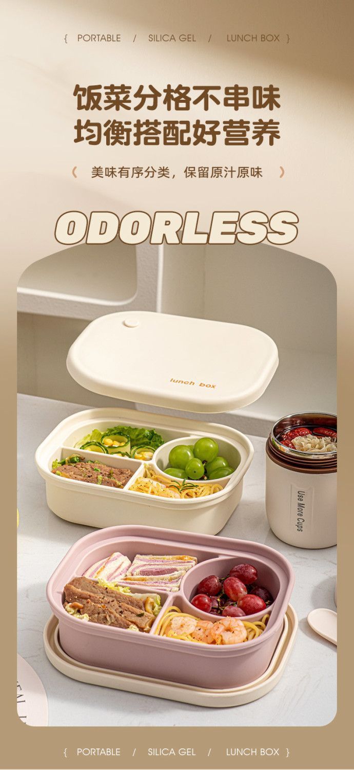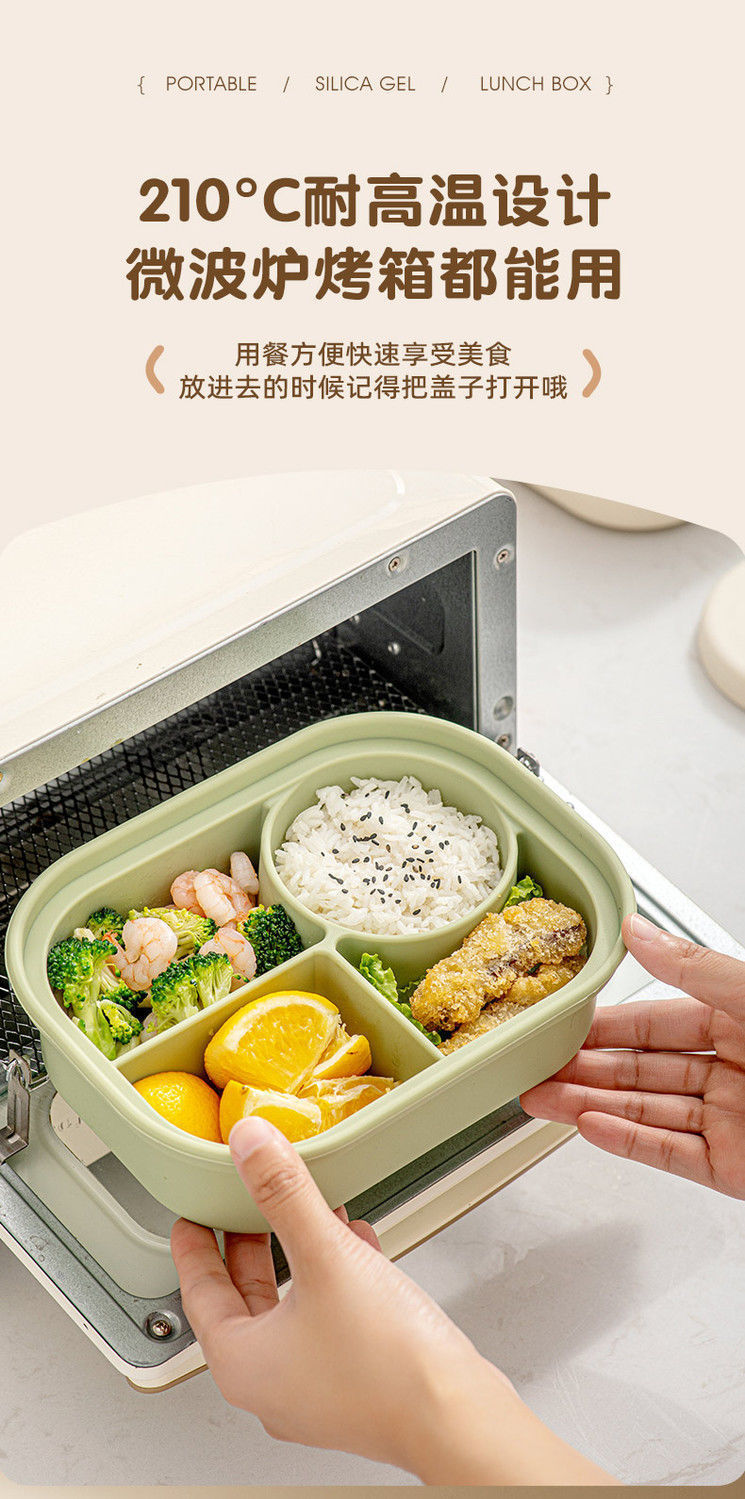 Силиконовый ланч-бокс, пищевой герметичный ланч-бокс с отделениями, легкий ланч-бокс, пригодный для использования в микроволновой печи, для офисных работников
