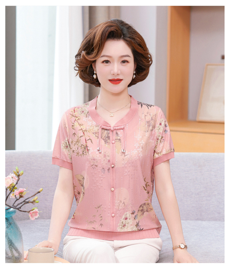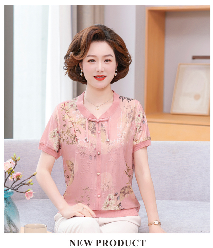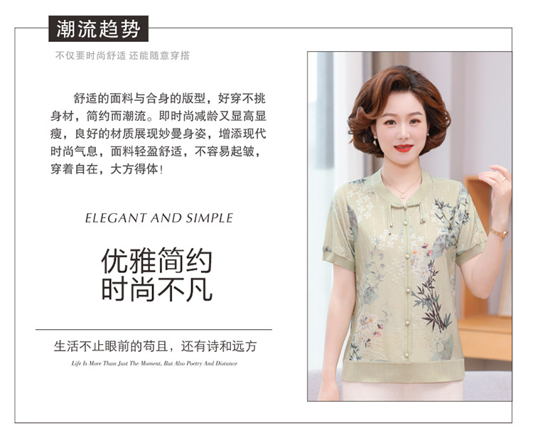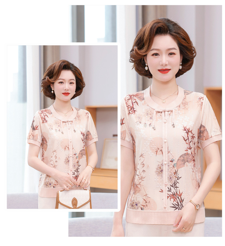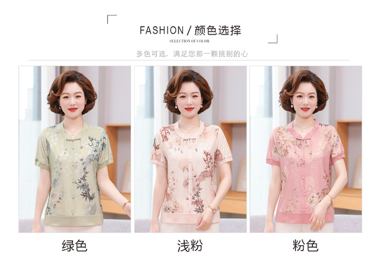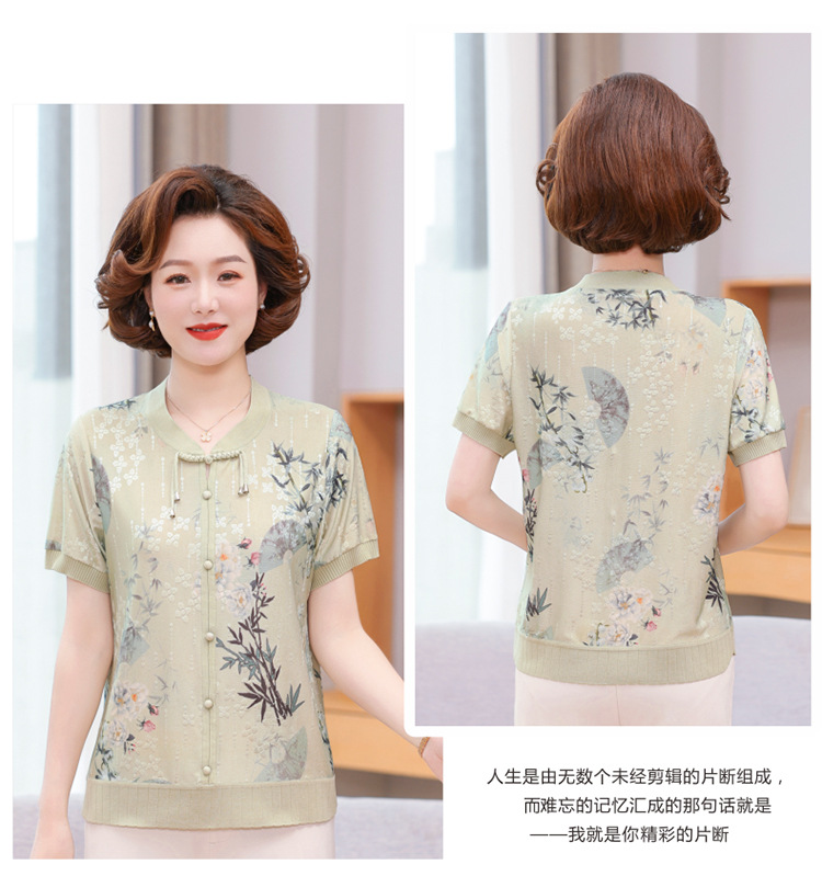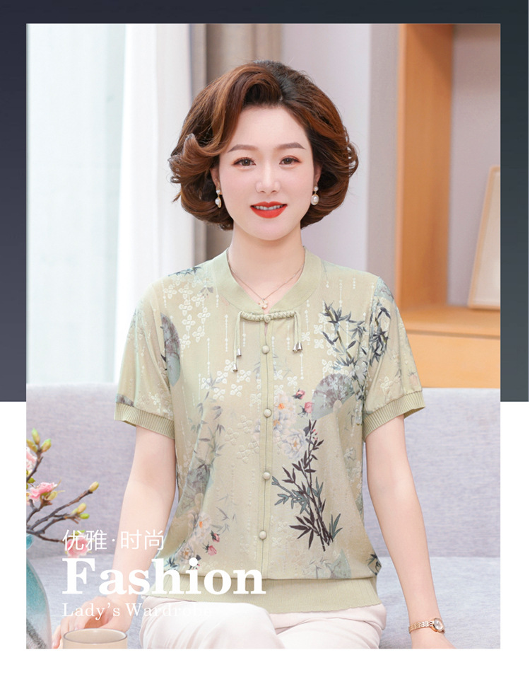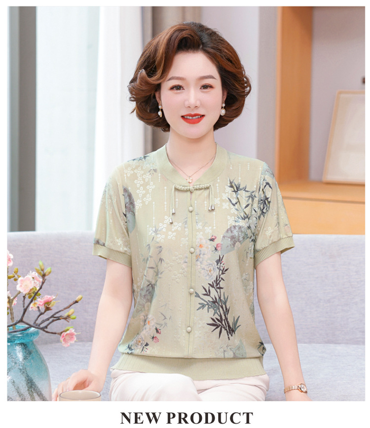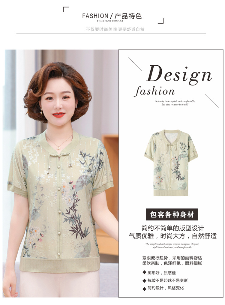 Иностранная мама летнее платье новый национальный стиль новый китайский стиль с короткими рукавами ледяной шелк футболка среднего и пожилого женского модного костюма