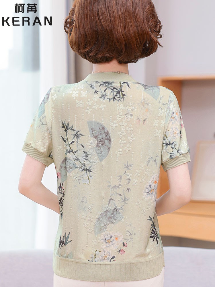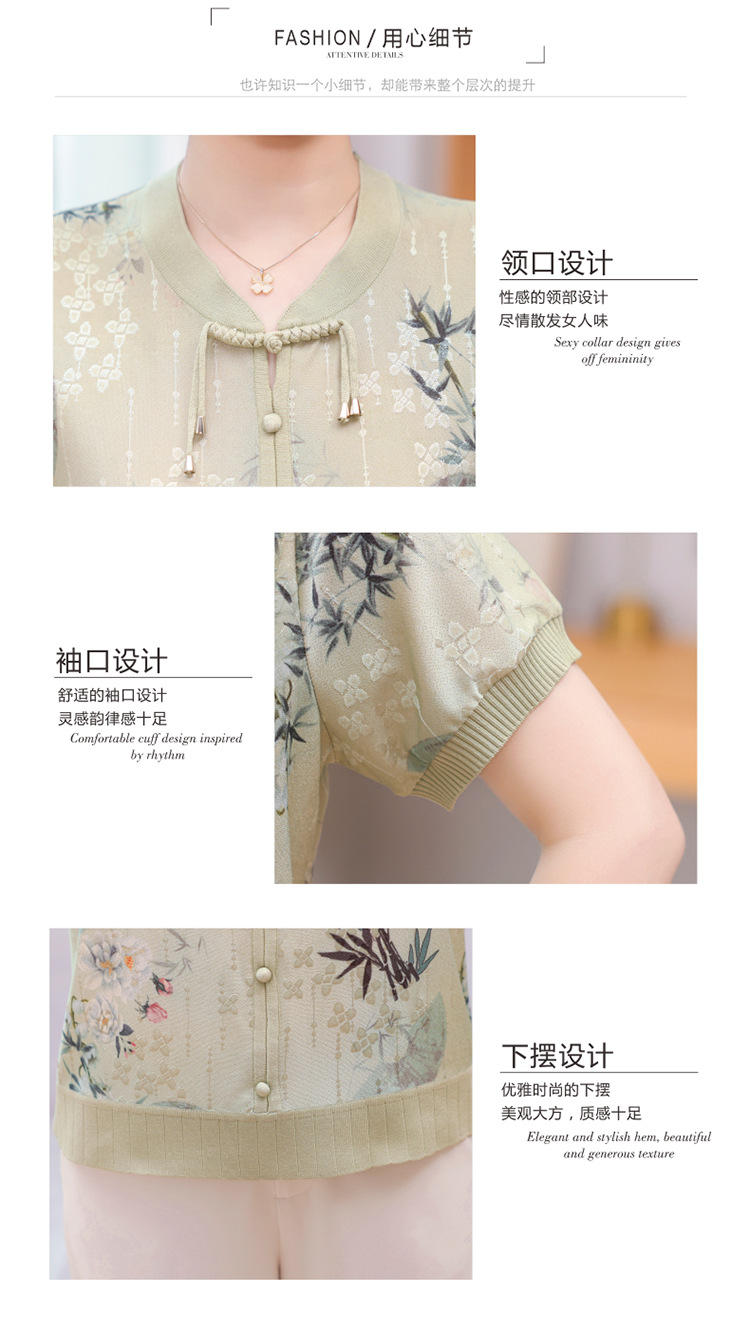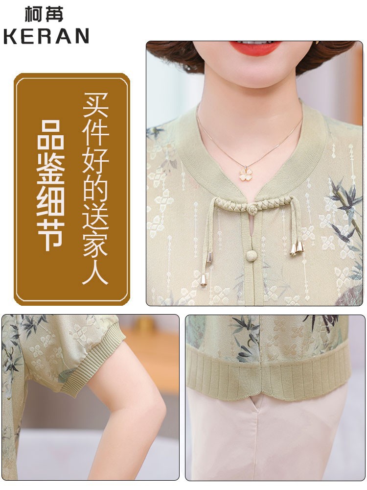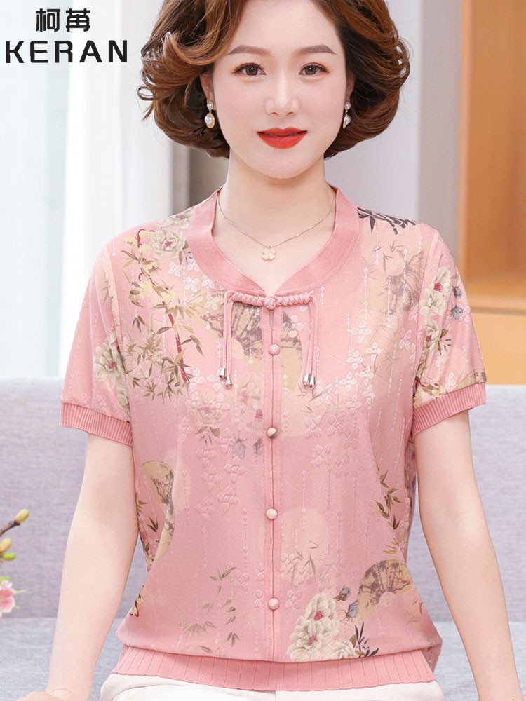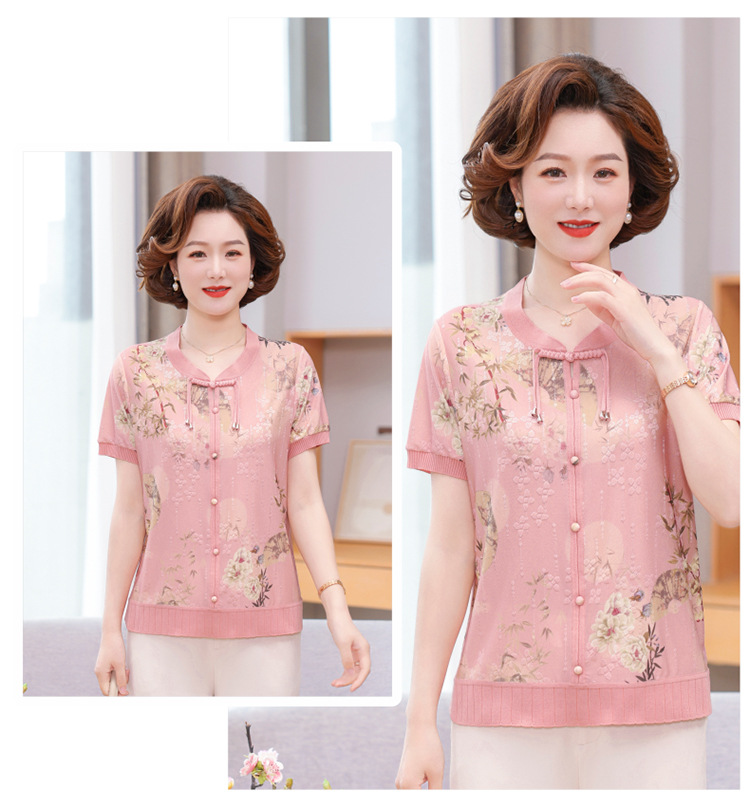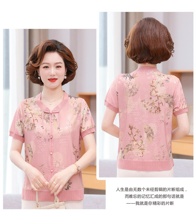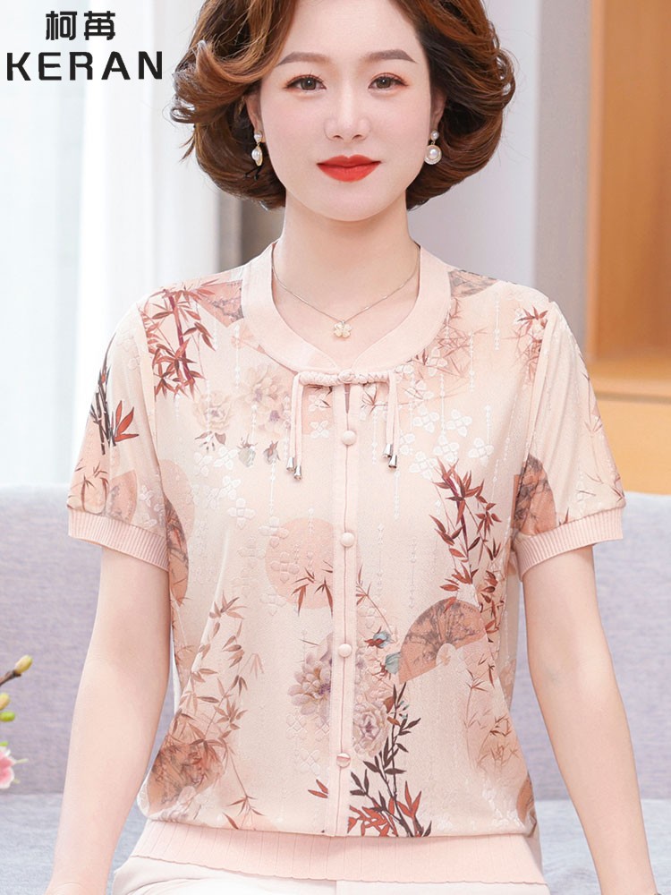 Иностранная мама летнее платье новый национальный стиль новый китайский стиль с короткими рукавами ледяной шелк футболка среднего и пожилого женского модного костюма