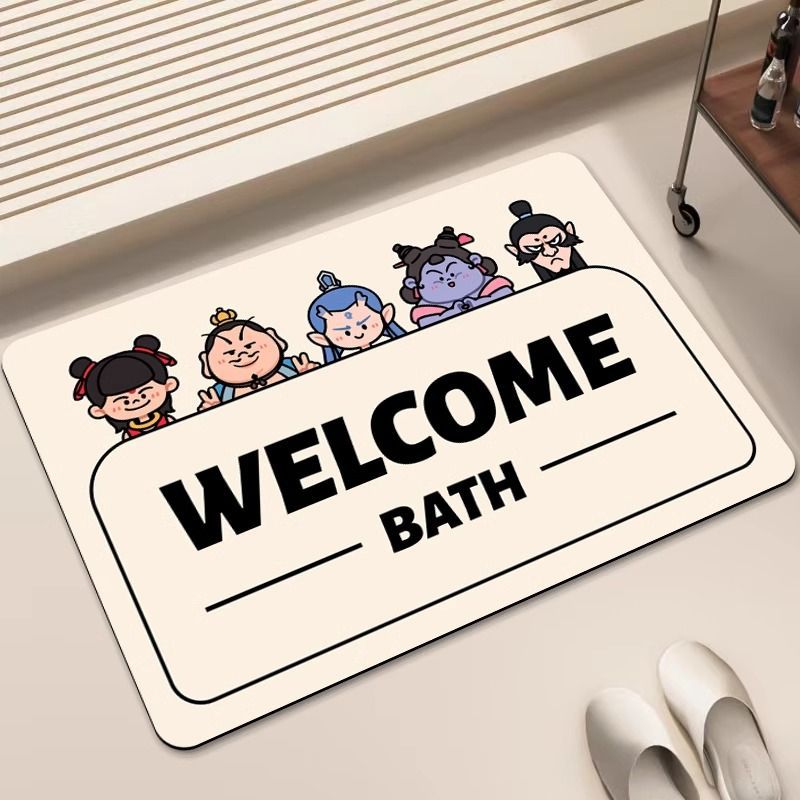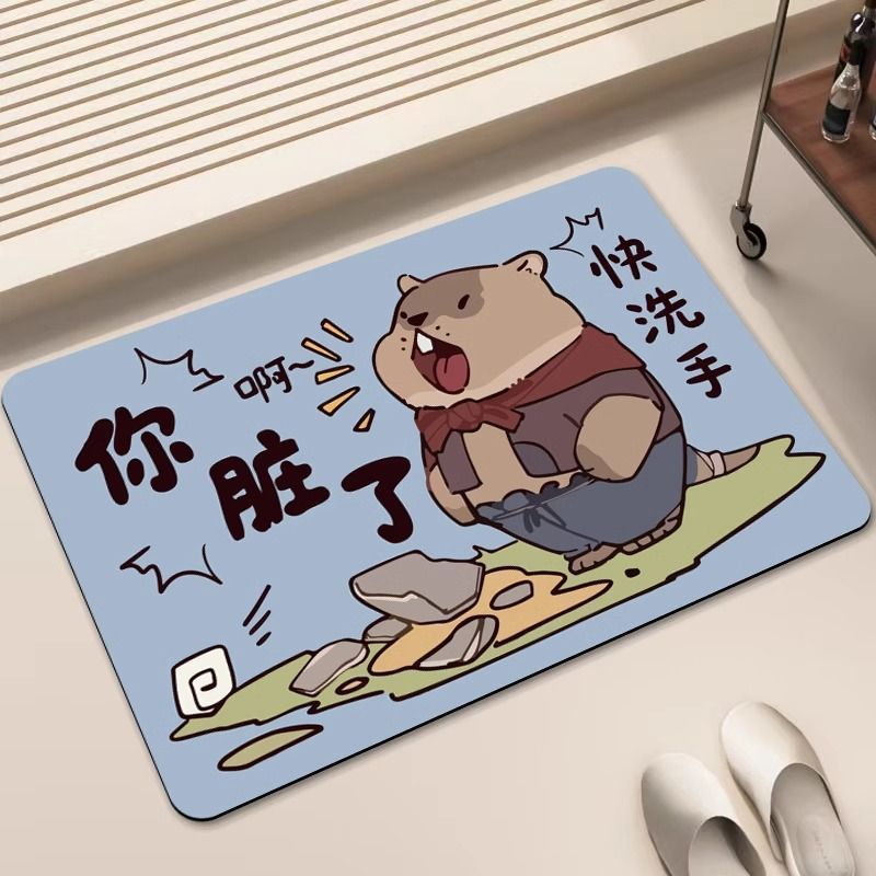Милый мультяшный коврик для ванной комнаты из диатомовой грязи, нескользящий коврик для ванной комнаты, туалета, двери, впитывающий быстросохнущий коврик для ног, домашний ковер