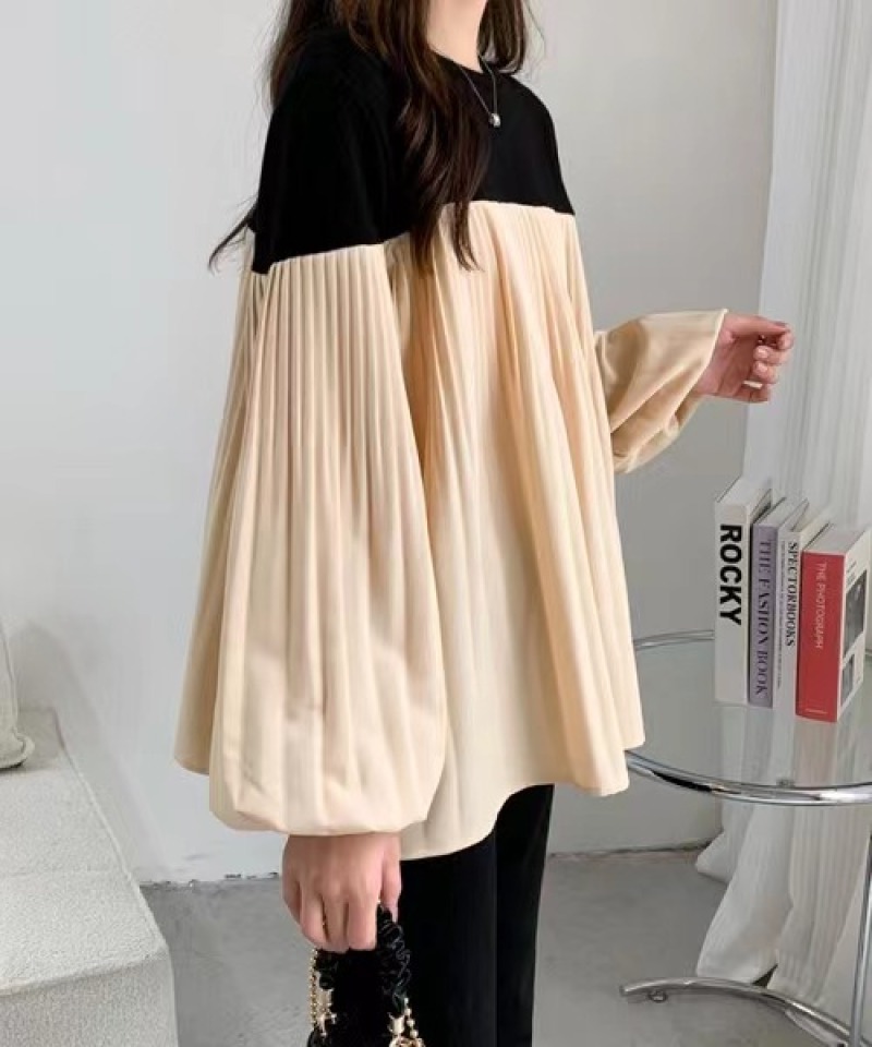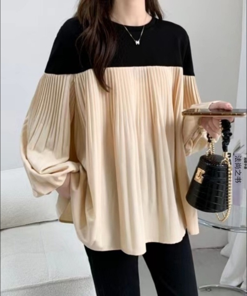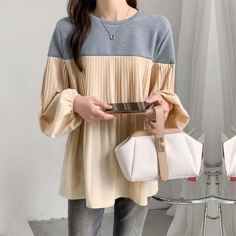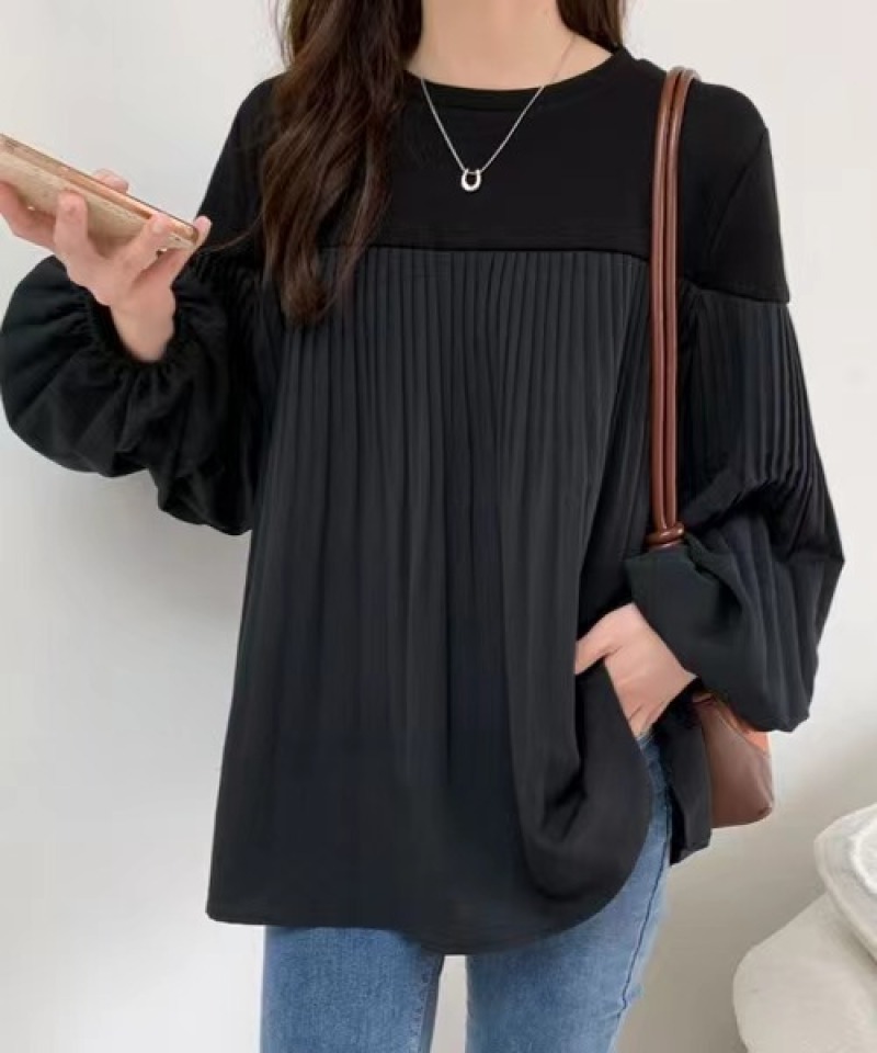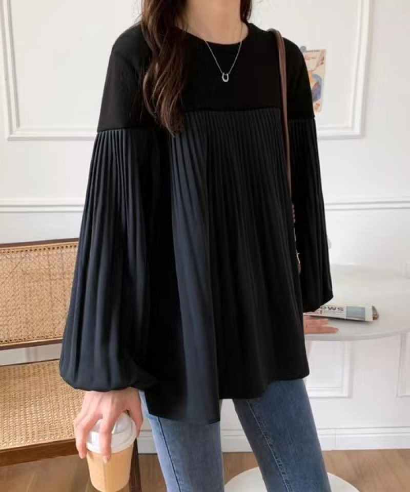 Женская одежда для внешней торговли в европейском и американском стиле, весна-лето 2025, плиссированные эластичные рукава-фонарики, цветные длинные футболки с длинными рукавами для женщин