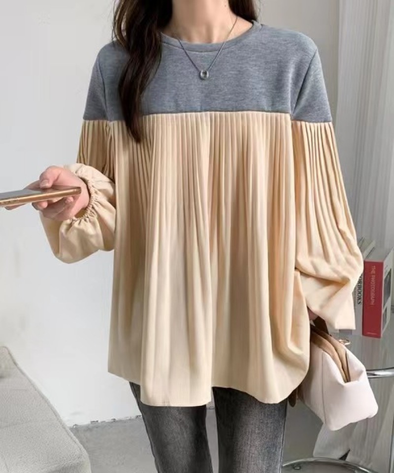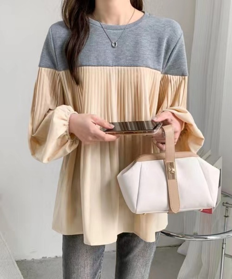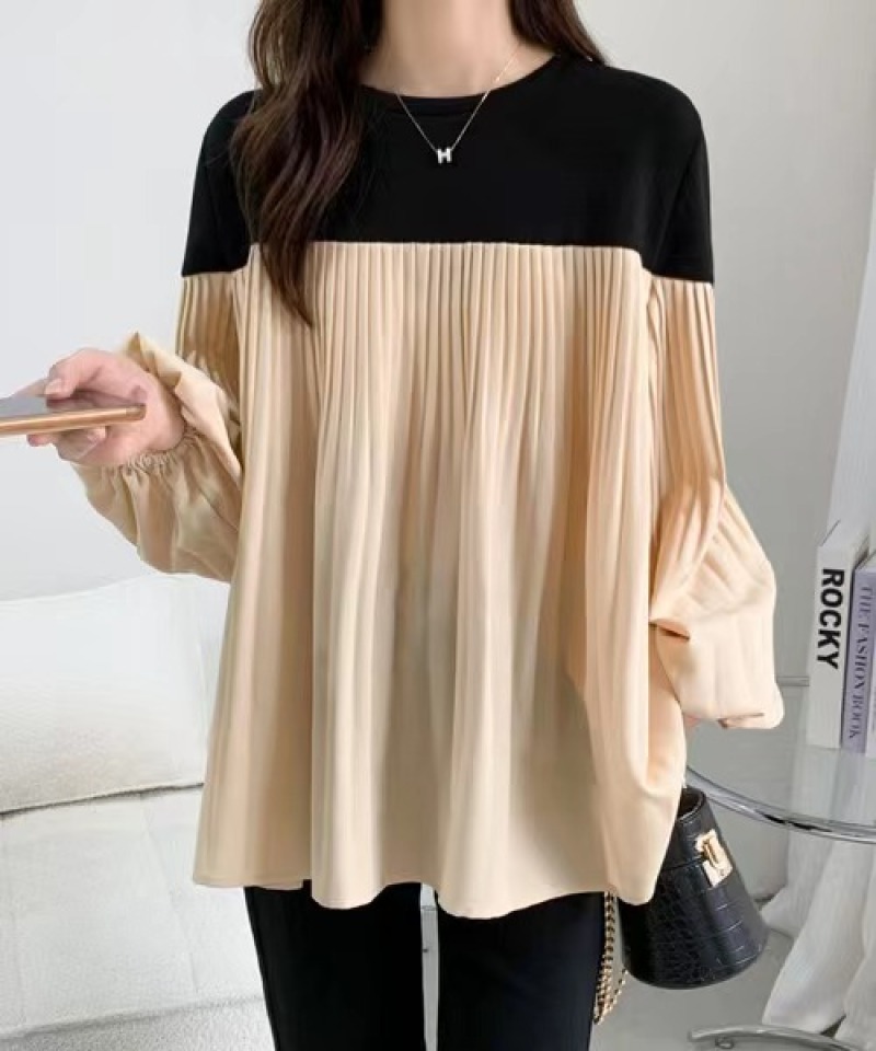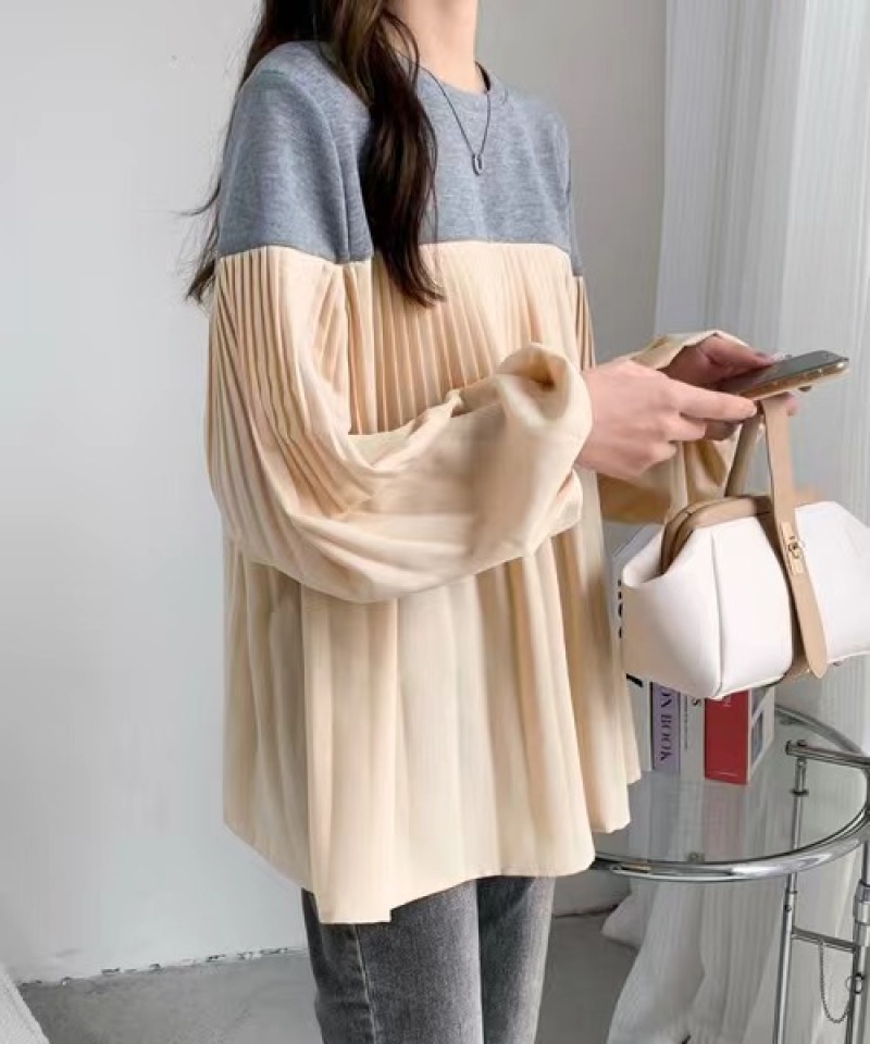 Женская одежда для внешней торговли в европейском и американском стиле, весна-лето 2025, плиссированные эластичные рукава-фонарики, цветные длинные футболки с длинными рукавами для женщин