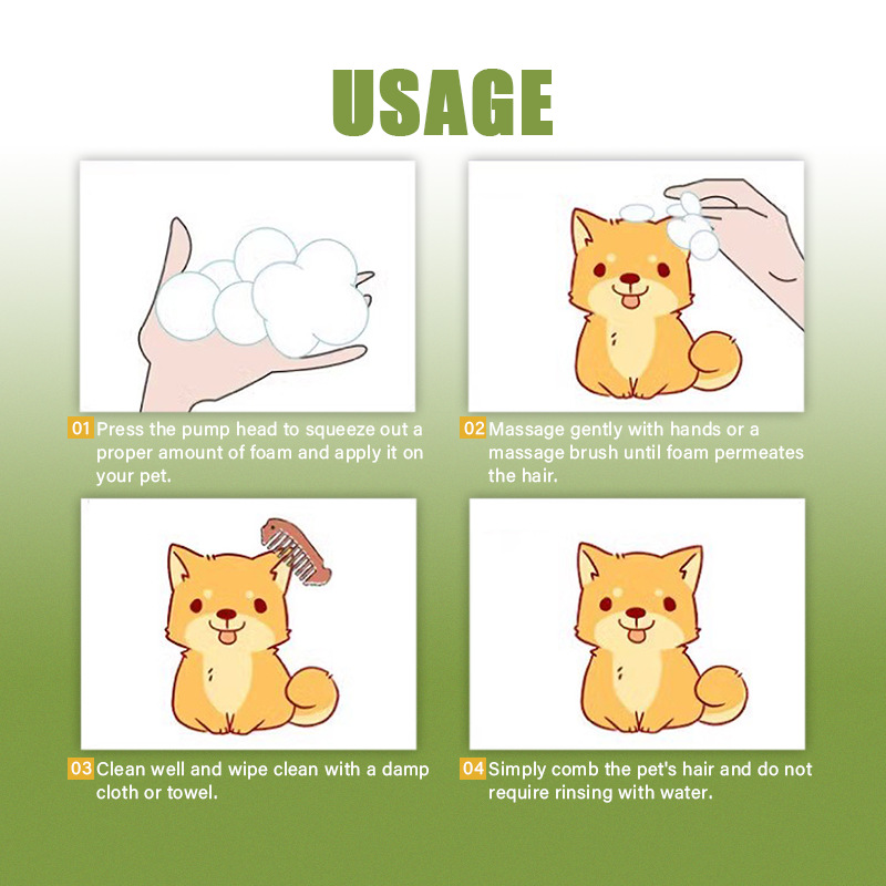 Пенка для чистки животных, без смывания, с дезодорирующим эффектом, для удаления загрязнений, для собак и кошек.