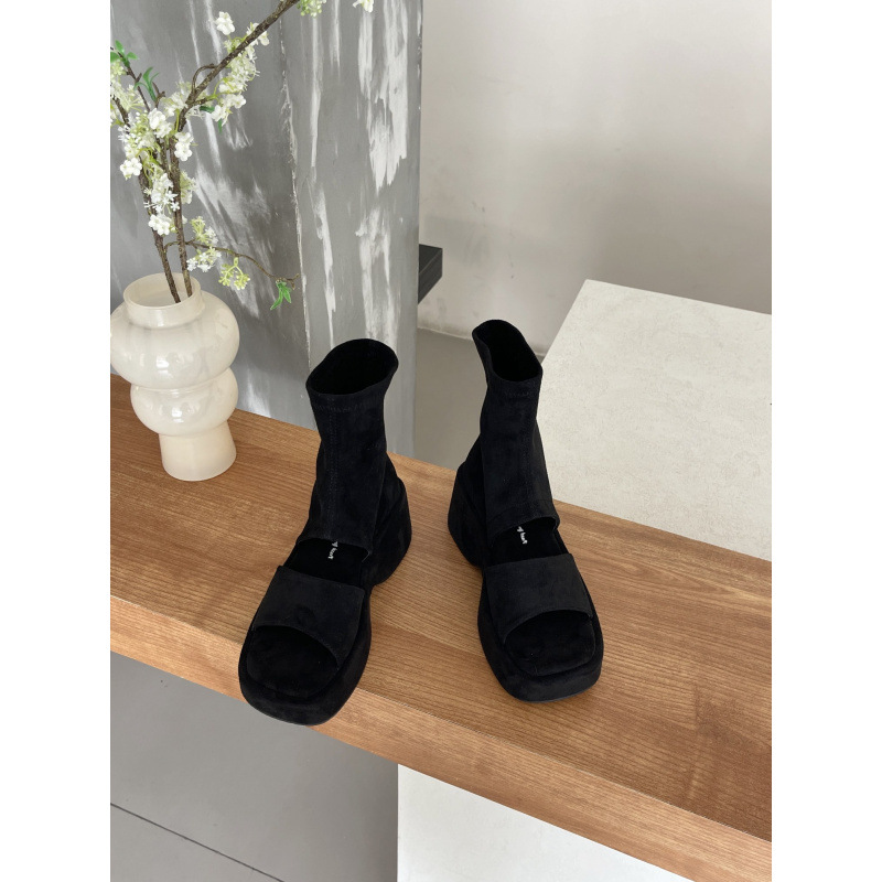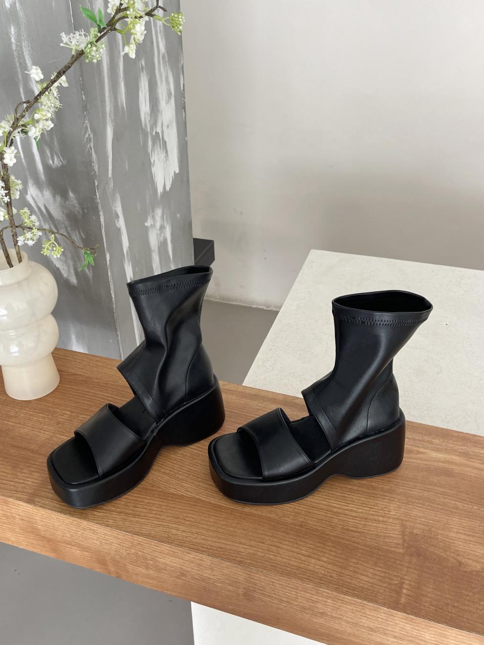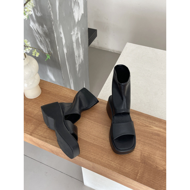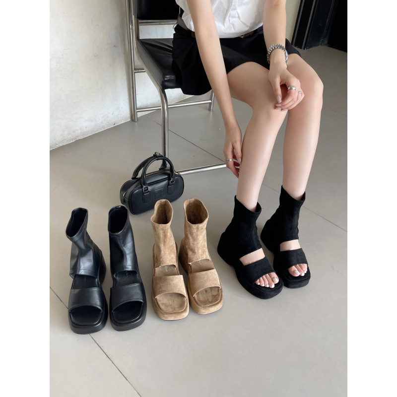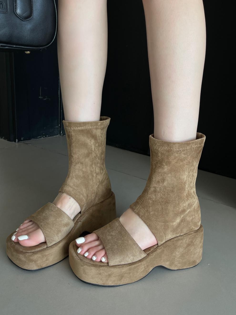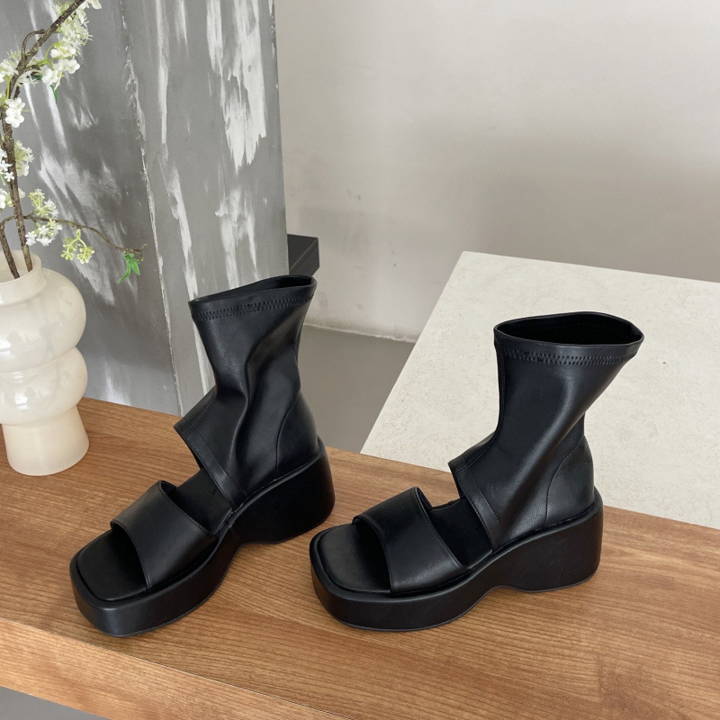 Корейские летние ботинки и сандалии на толстой подошве с открытым носком и клиновидной подошвой