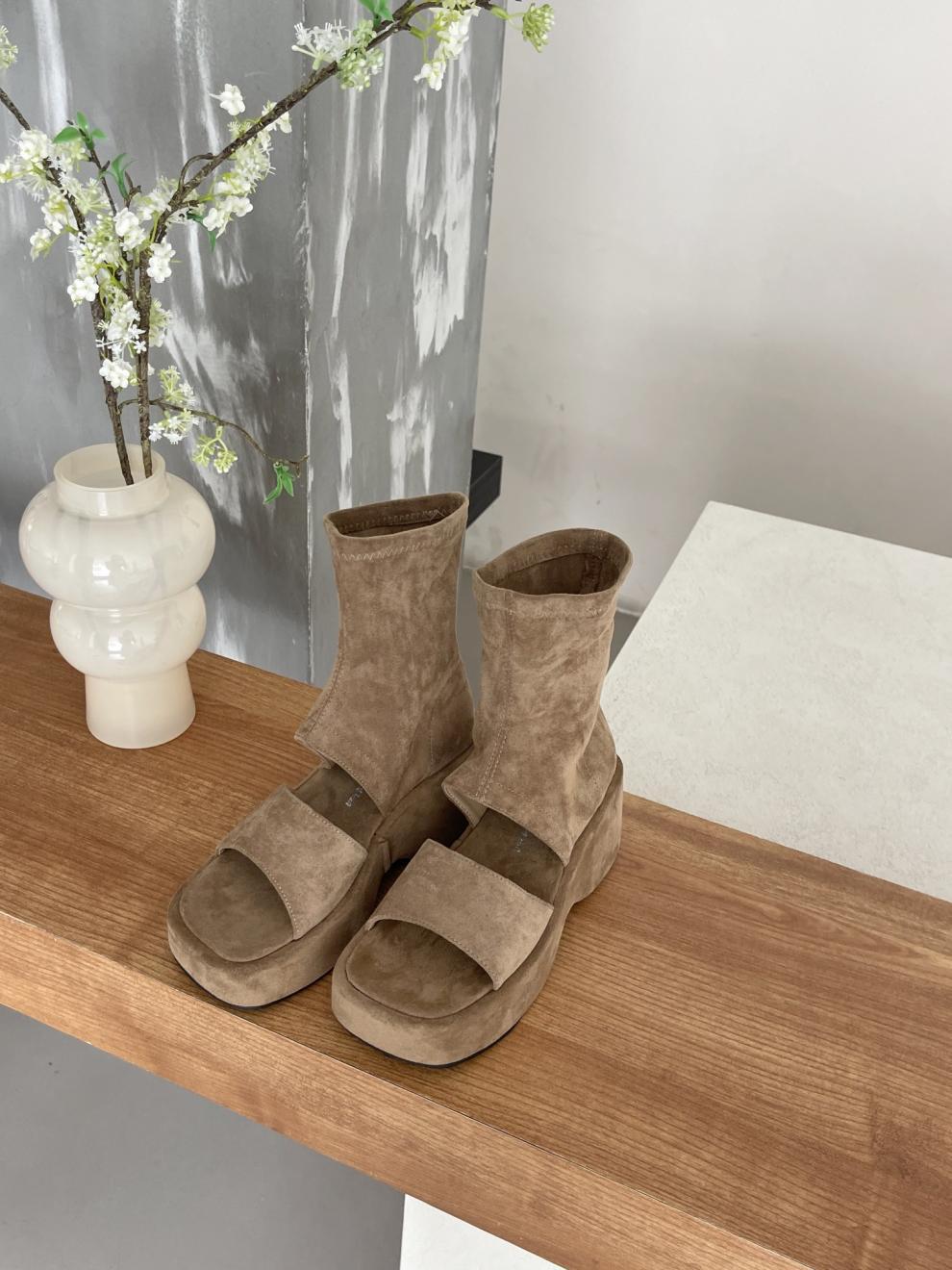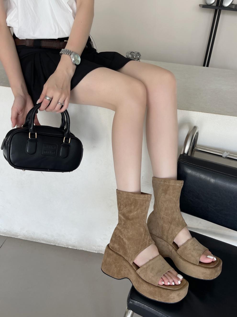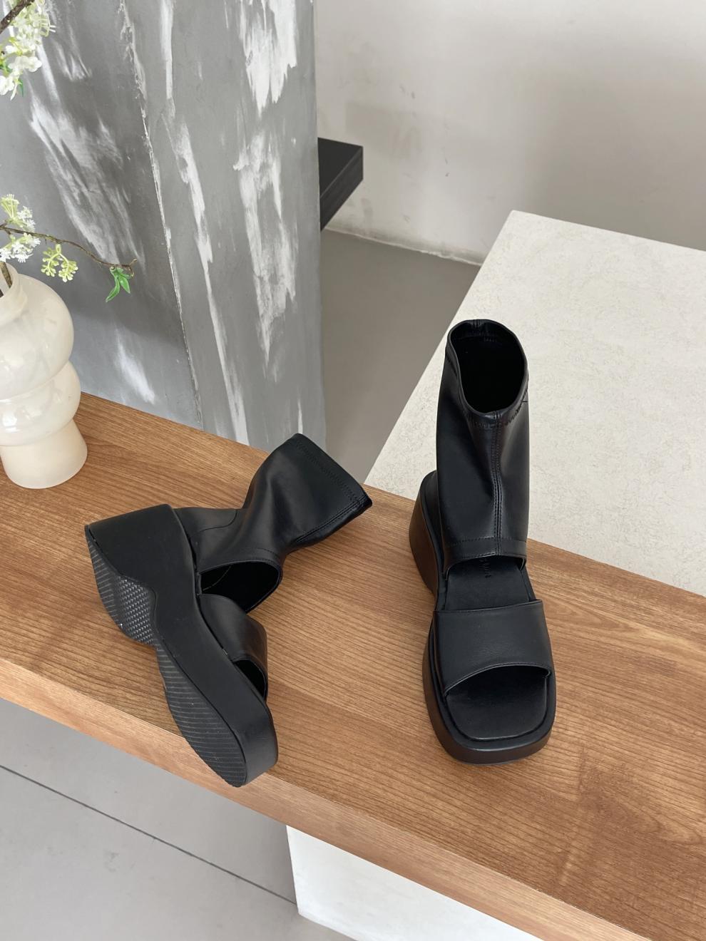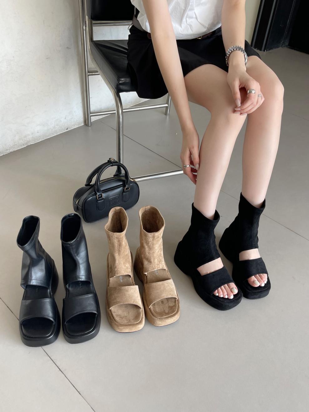 Корейские летние ботинки и сандалии на толстой подошве с открытым носком и клиновидной подошвой