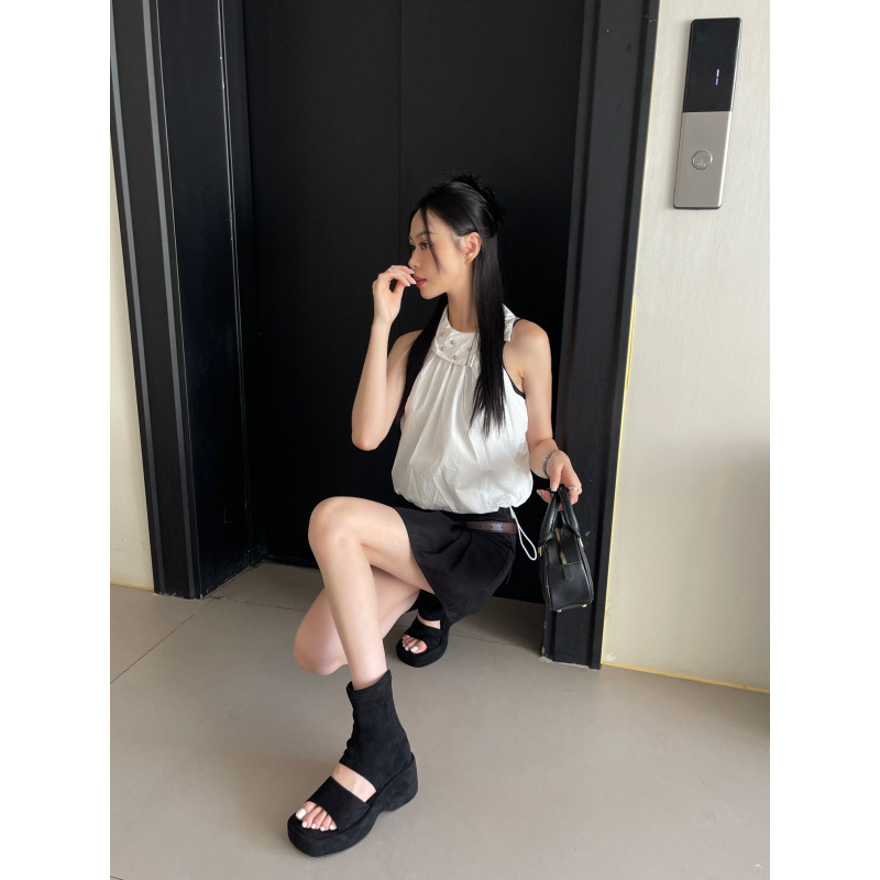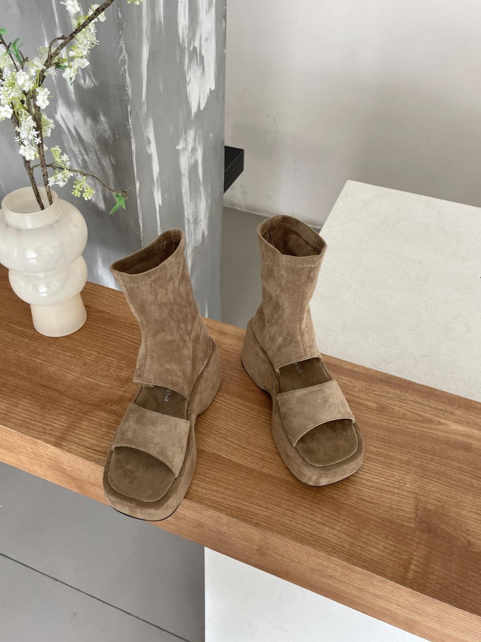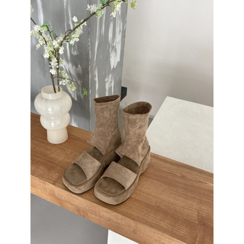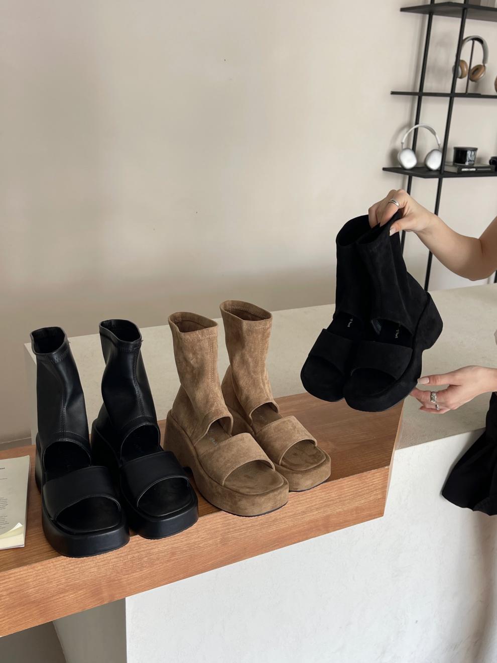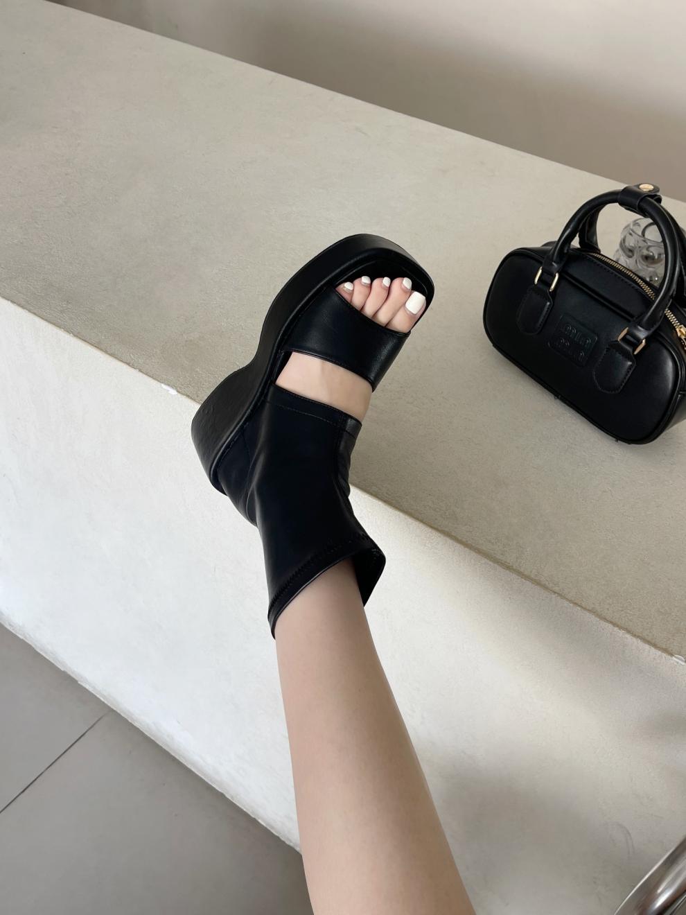 Корейские летние ботинки и сандалии на толстой подошве с открытым носком и клиновидной подошвой