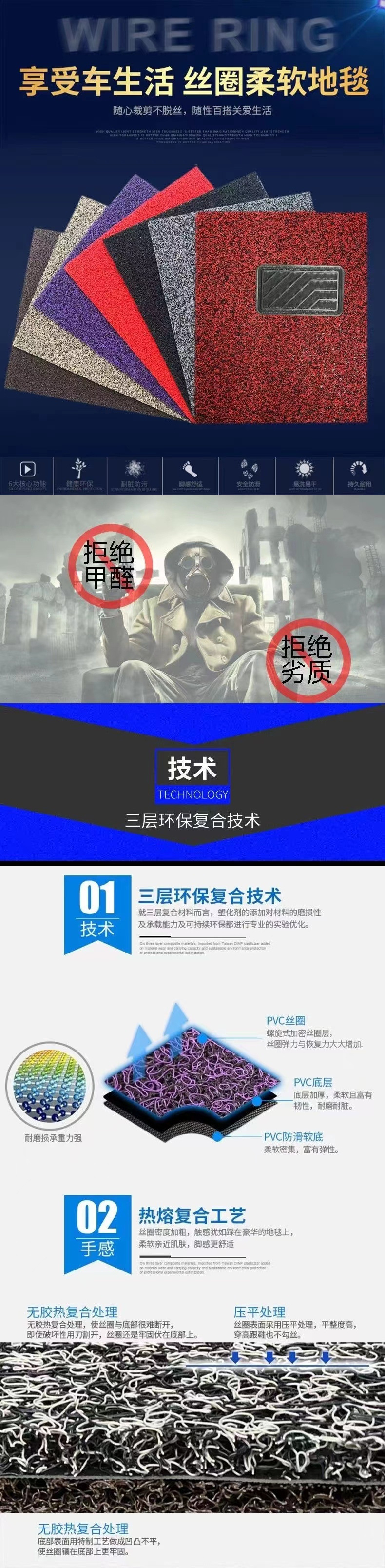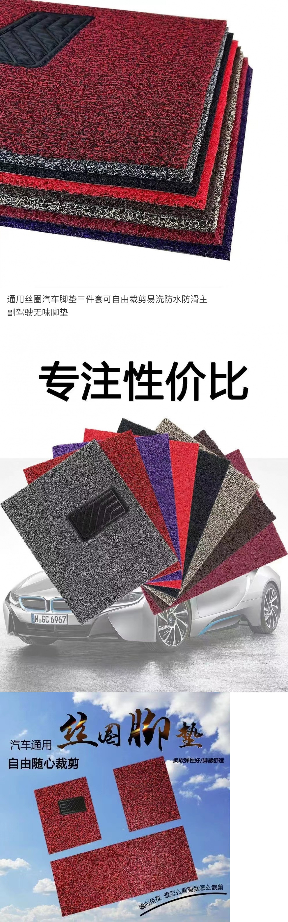 Универсальные автомобильные коврики с проволочным кольцом, набор из трех предметов, свободно режутся, легко моются, водонепроницаемые, нескользящие, без запаха, коврики для водителя и пассажира