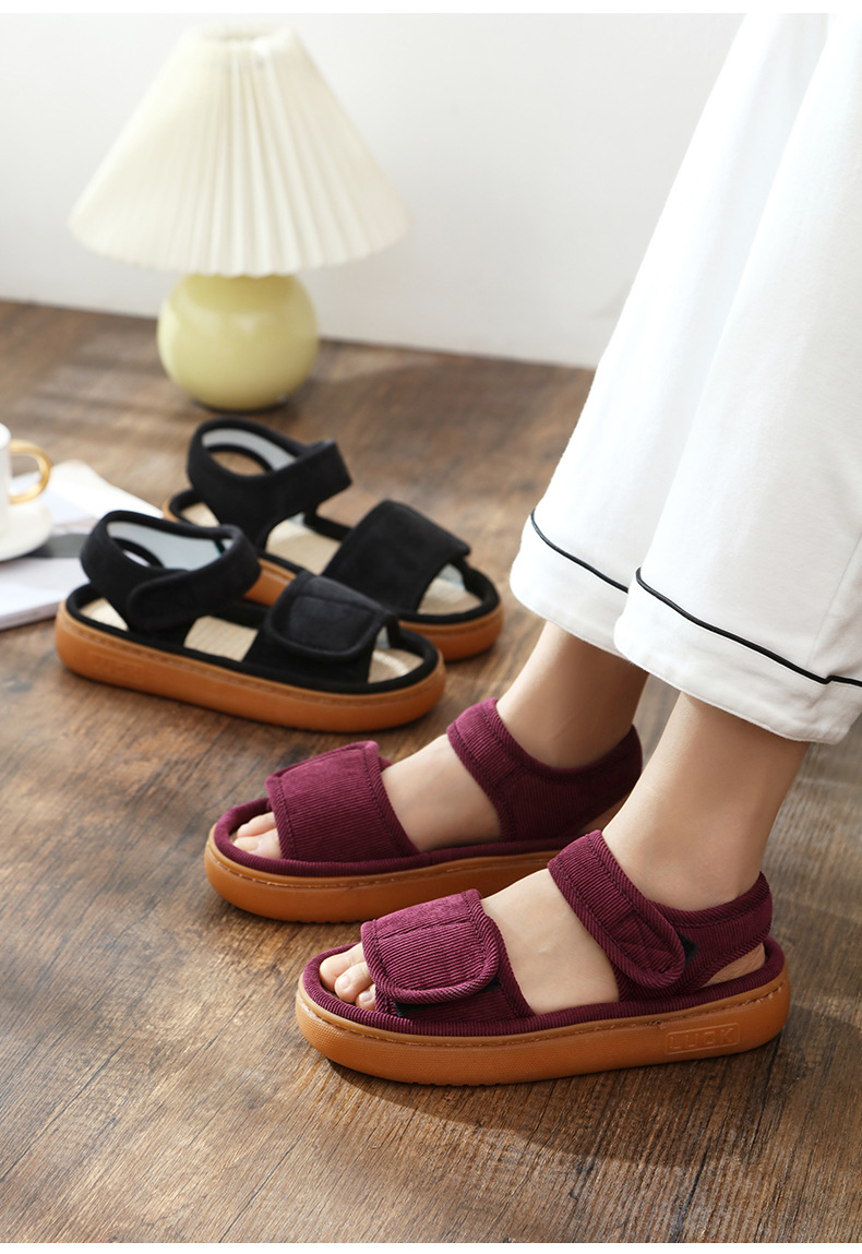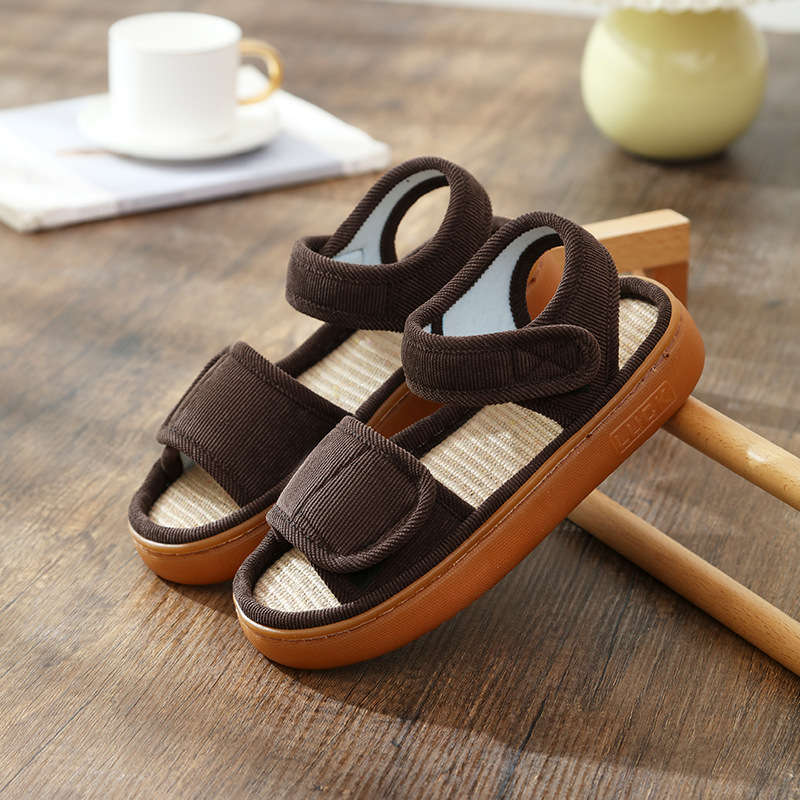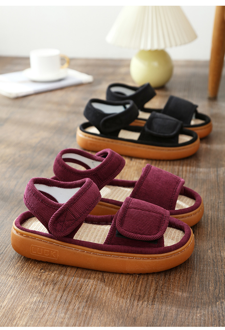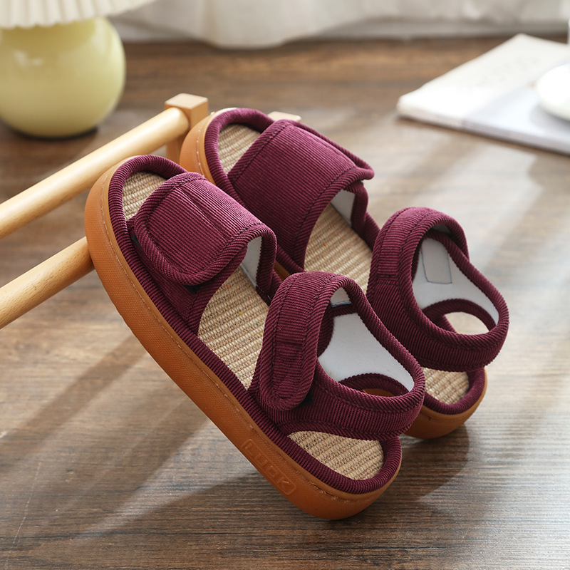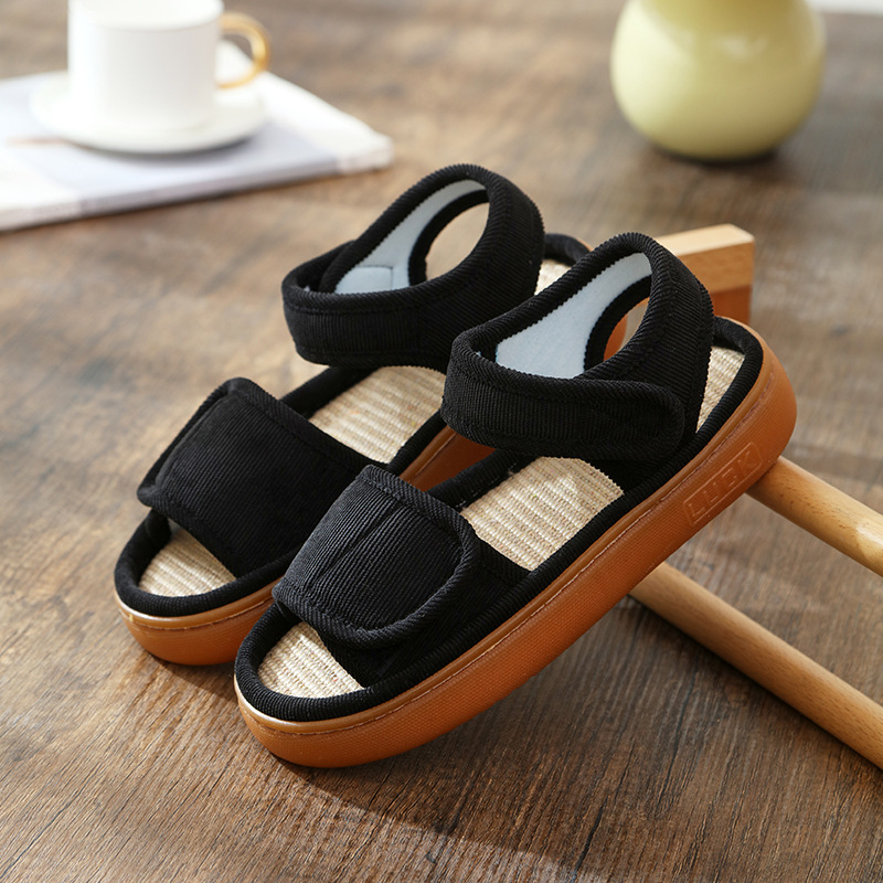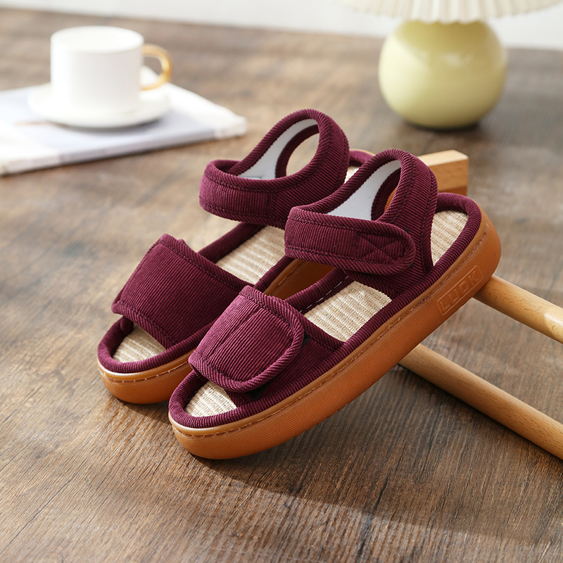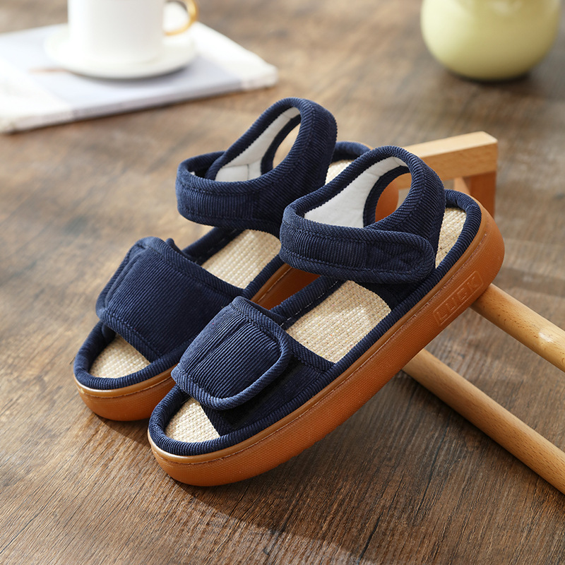 Льняные тапочки женские летом поглотить пот и нескользкий мягкий подошв дома, опухшие ноги, специальные ботинки, высокие отверстия, сандалии, мужские