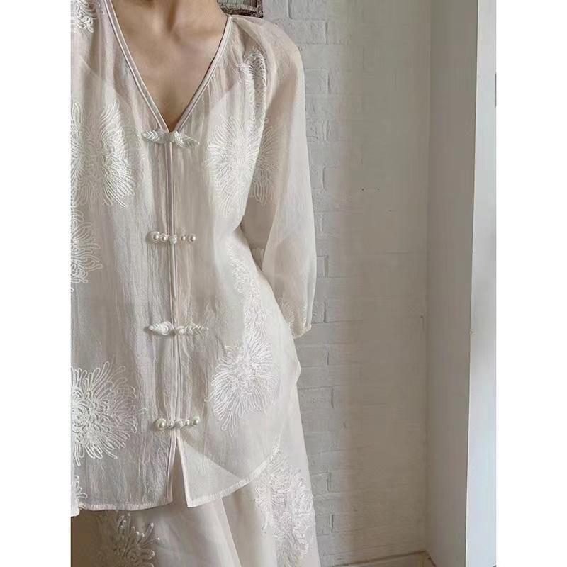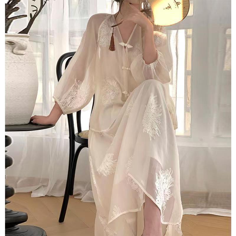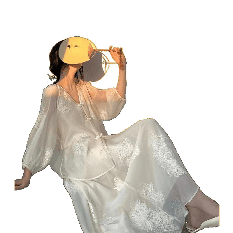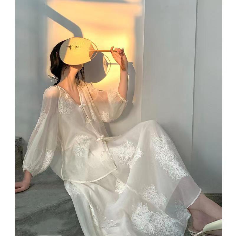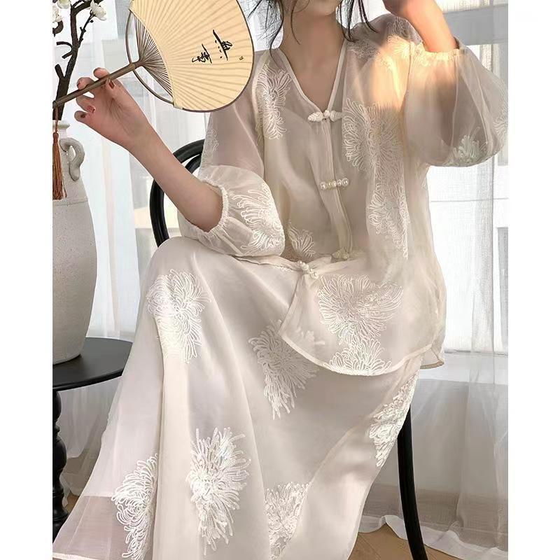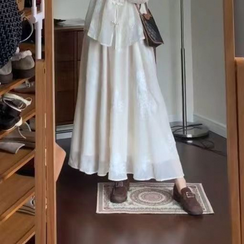 Плюс размер, слегка полный, новый костюм в китайском стиле, юбка с вышивкой на пуговицах, супер короткая