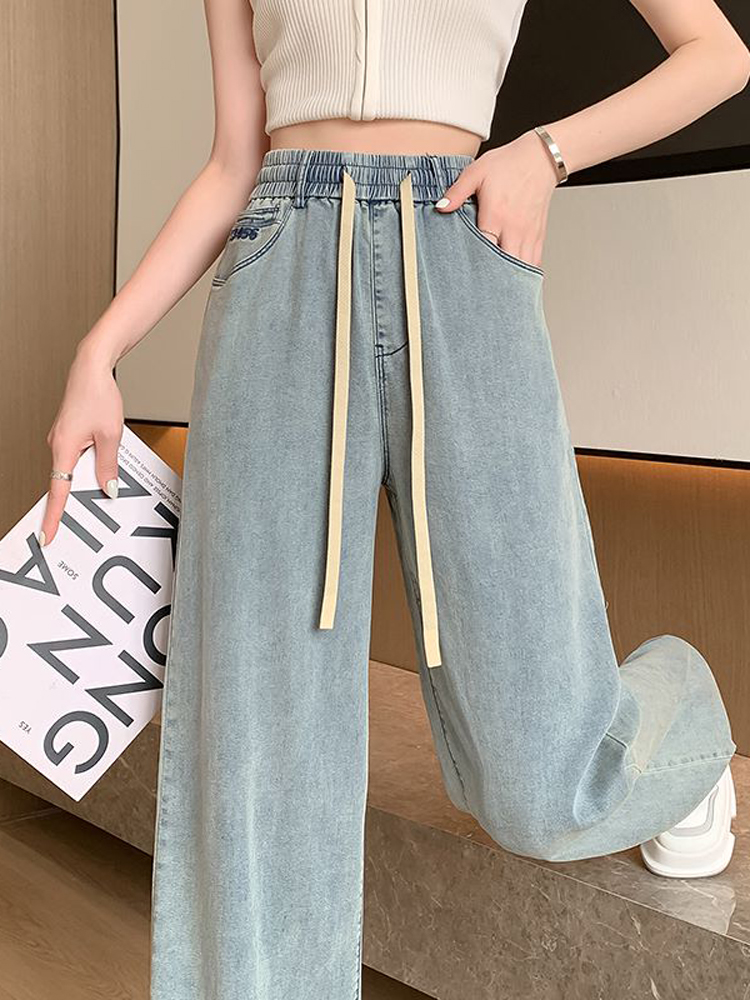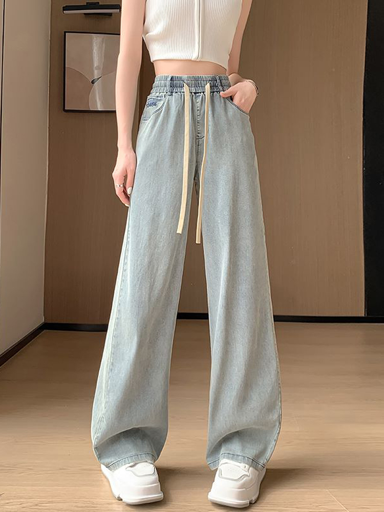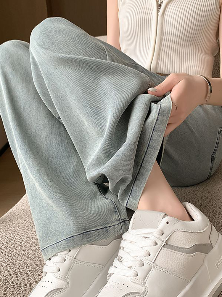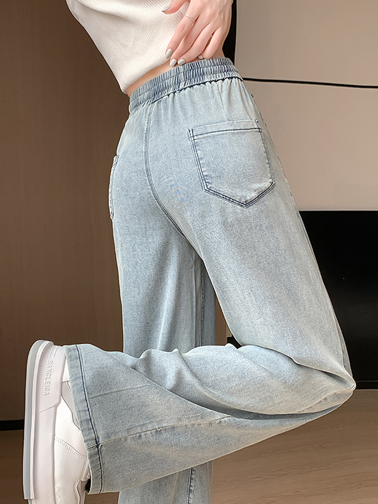Винтажные джинсы Тинси женские летние тонкие маленькие, эластичный, с высокой талией, тонкая прямая свободная ледяная шелка широкие брюки