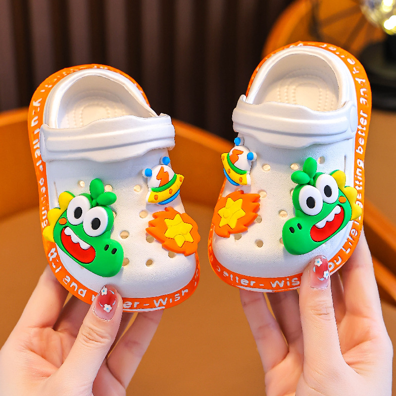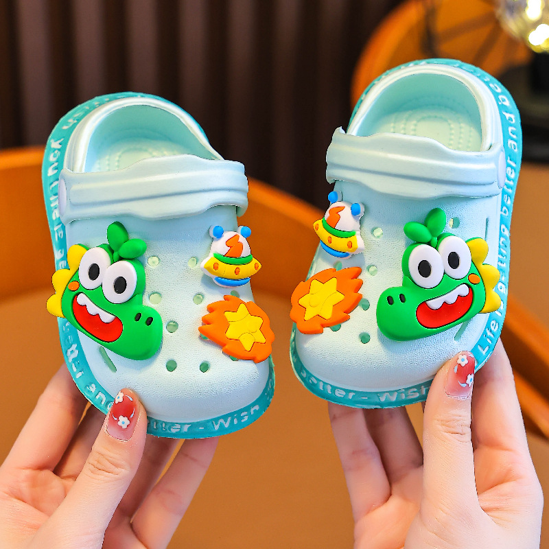 Детские летние мягкие нескользящие сандалии с рисунком динозавра для младенцев и малышей, детские сабо для девочек на носке для мужчин